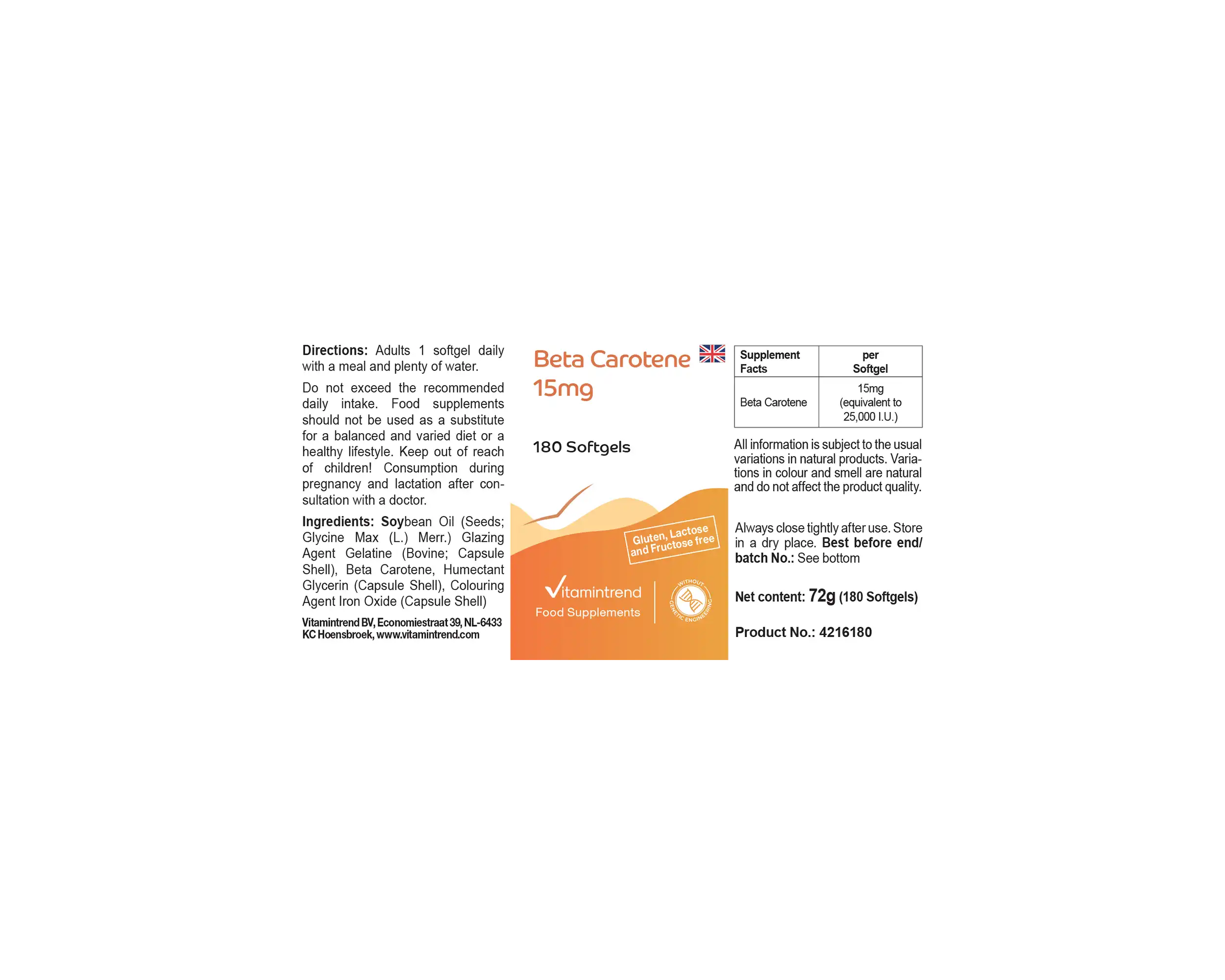 Beta Carotene 15mg - 180 Softgels | Vitamintrend