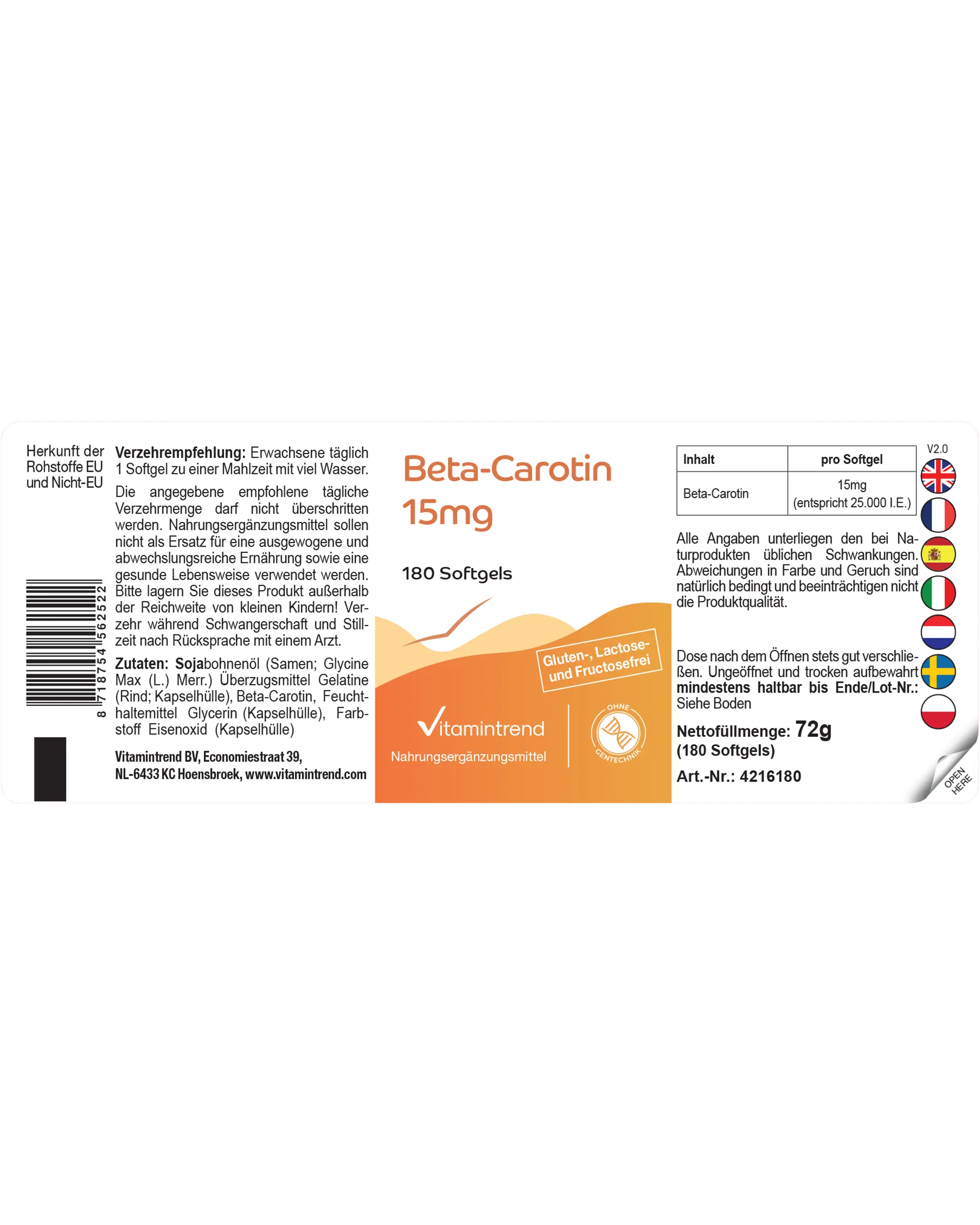 | Beta-Carotin / Beta-carotene / Bêta-carotène / Beta-caroteno / Beta-carotene / Bètacaroteen |