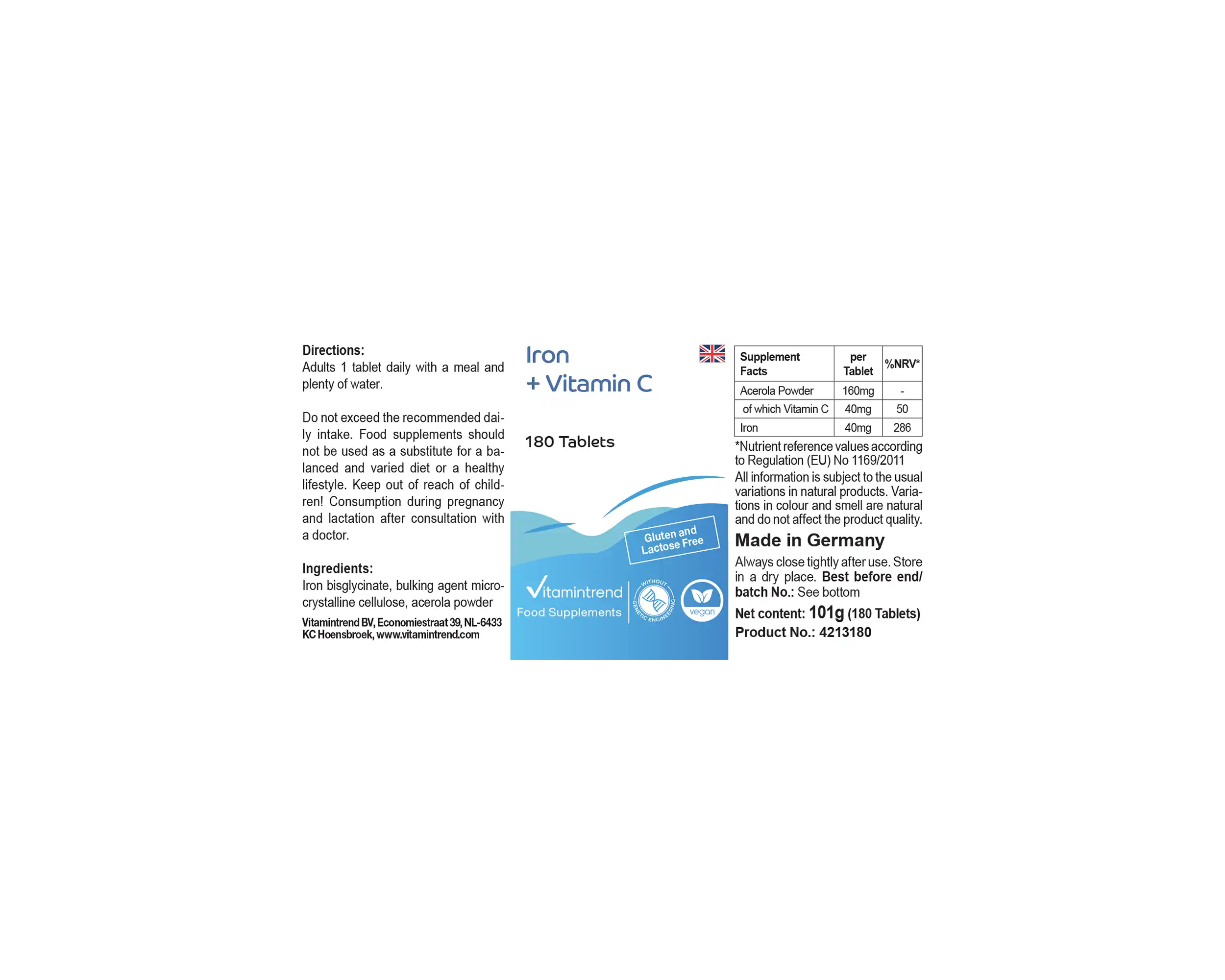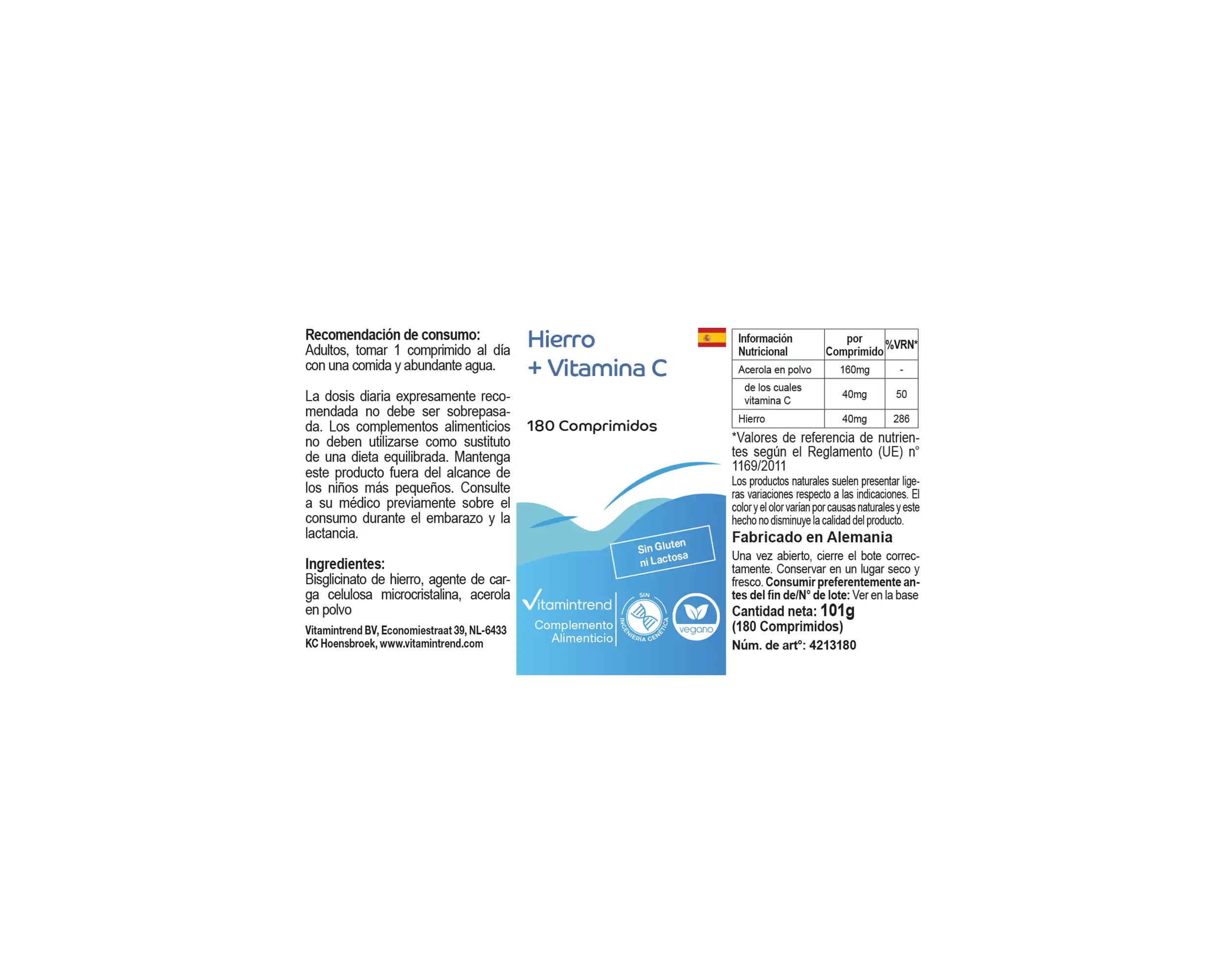 Información sobre el producto "Hierro + Vitamina C - 180 Comprimidos | Vitamintrend"