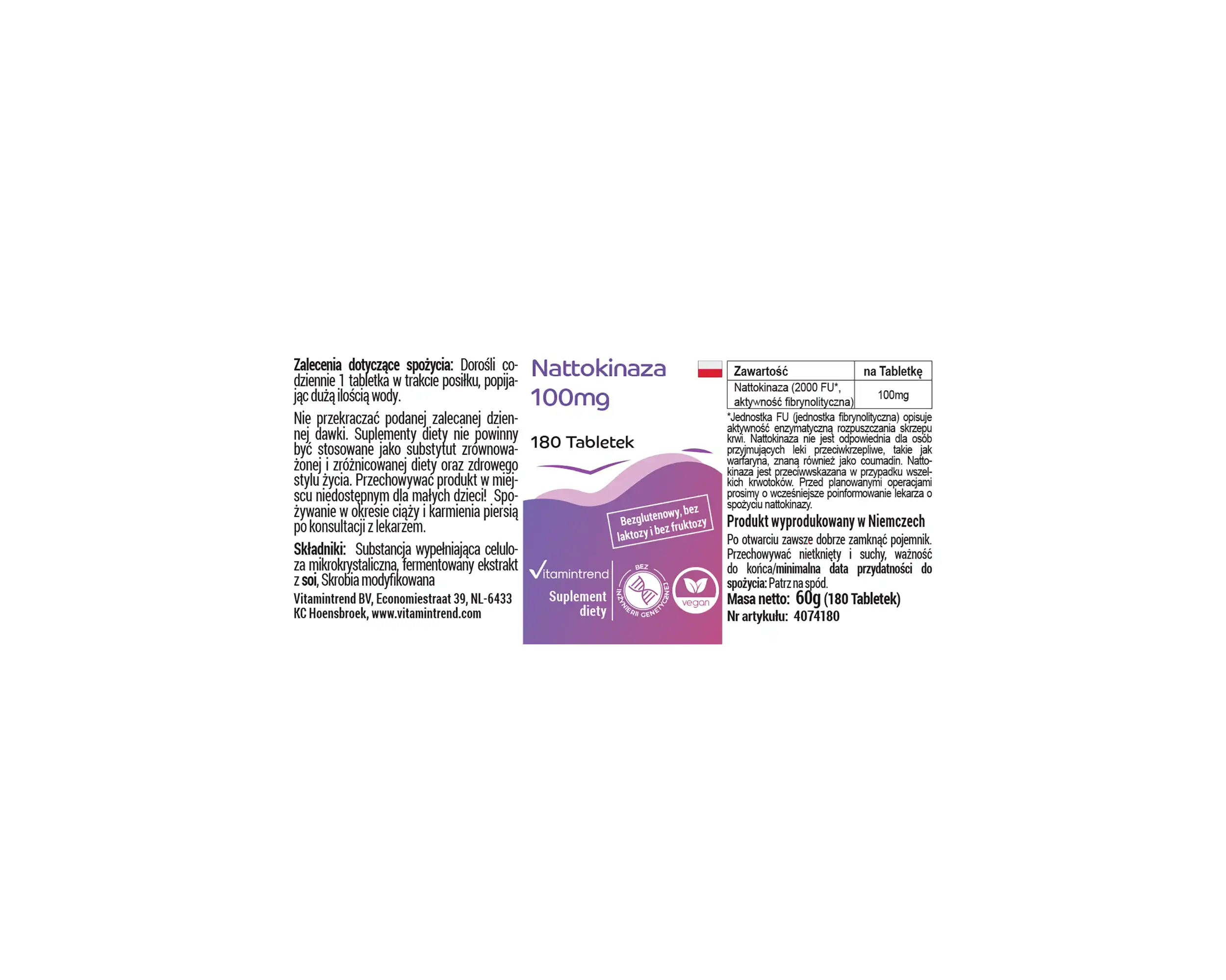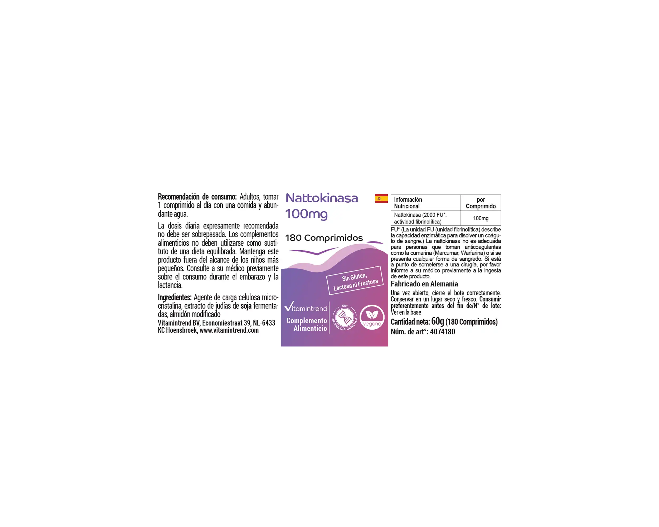 Información sobre el producto "Nattokinasa 100mg - 180 Comprimidos | Vitamintrend"