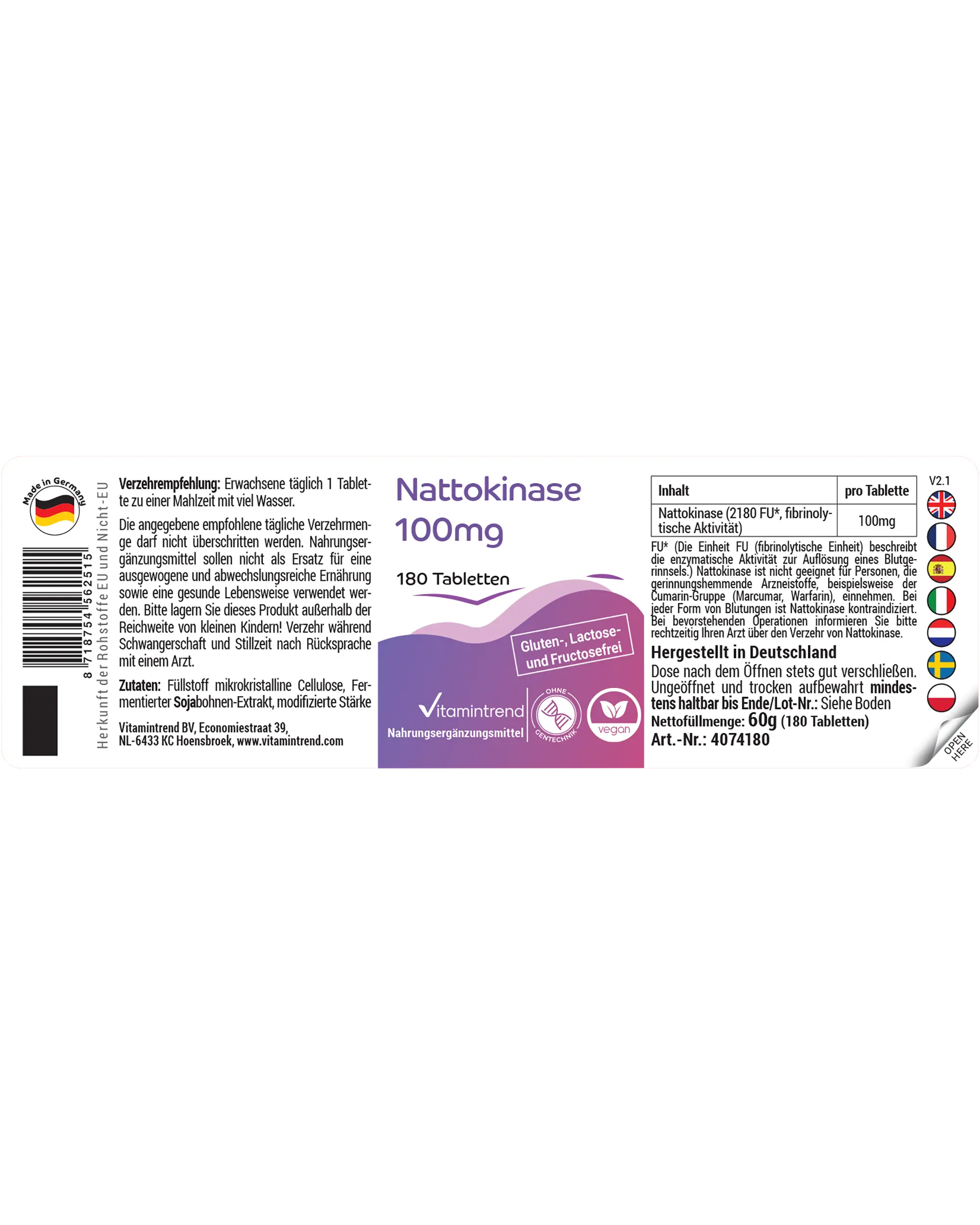 Nattokinasa 100 mg de Vitamintrend sin aditivos innecesarios – Fabricado en Alemania