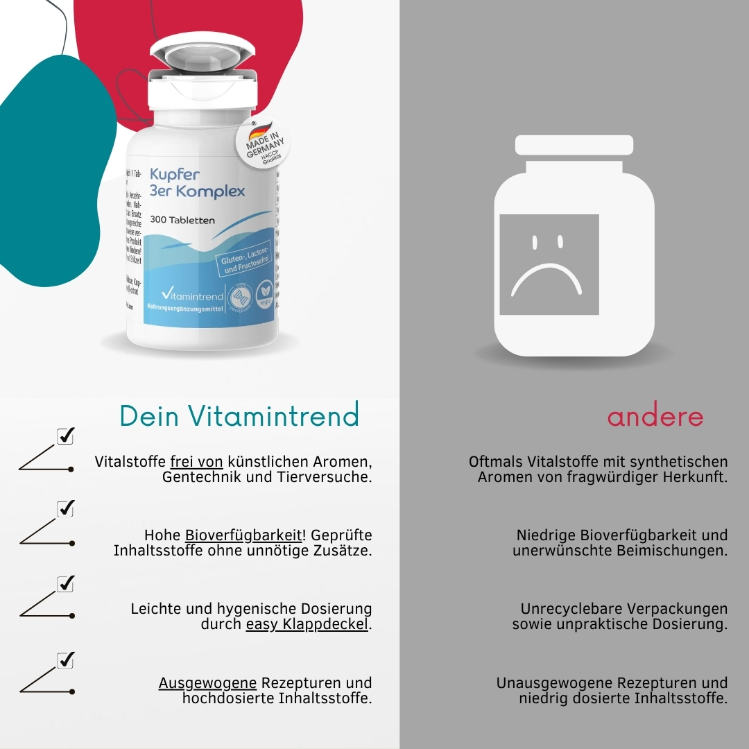 Complesso di Rame 3 di Vitamintrend – Senza additivi inutili – Made in Germany