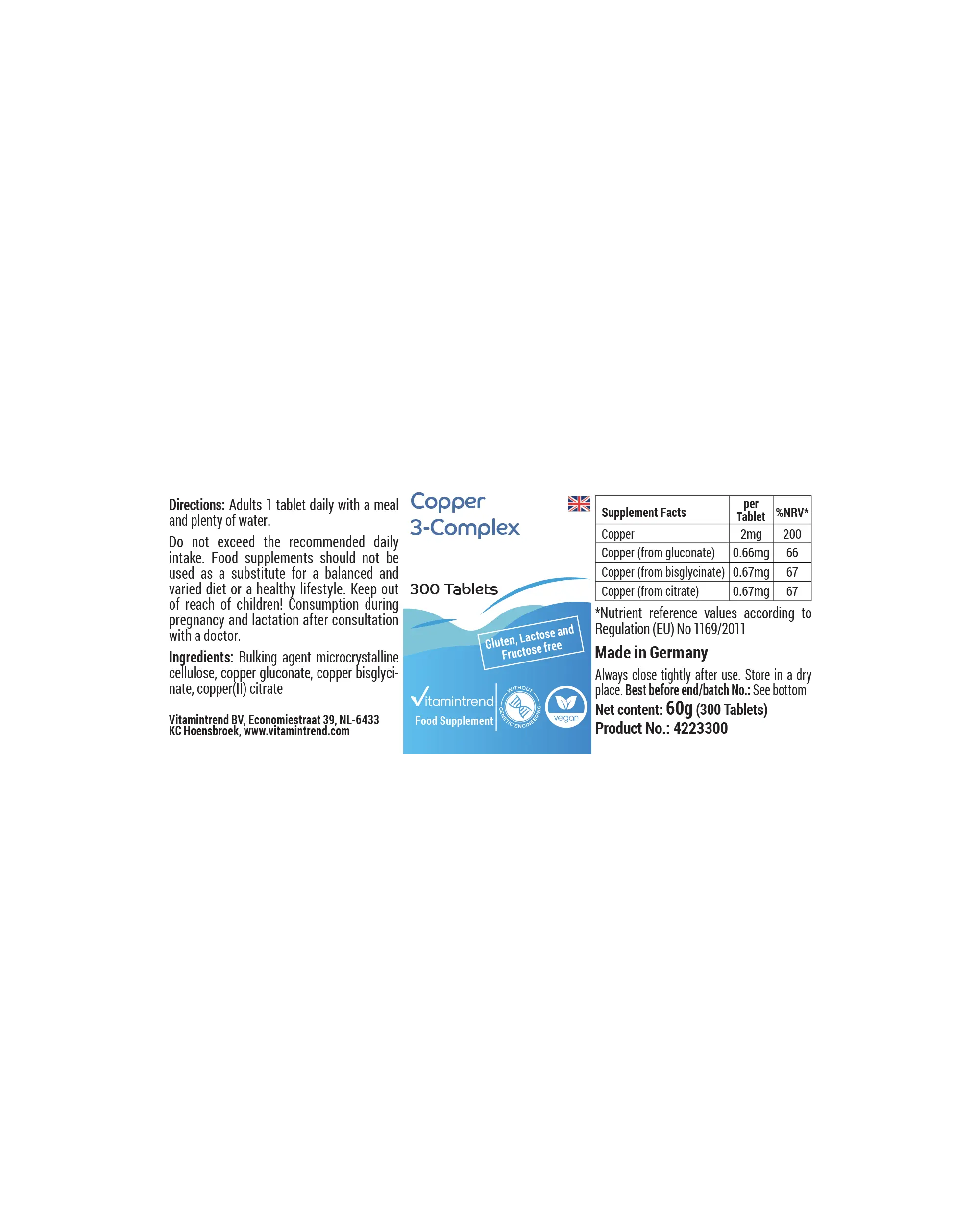 Informazioni sul prodotto "Rame 3-Complesso - 300 Compresse | Vitamintrend"