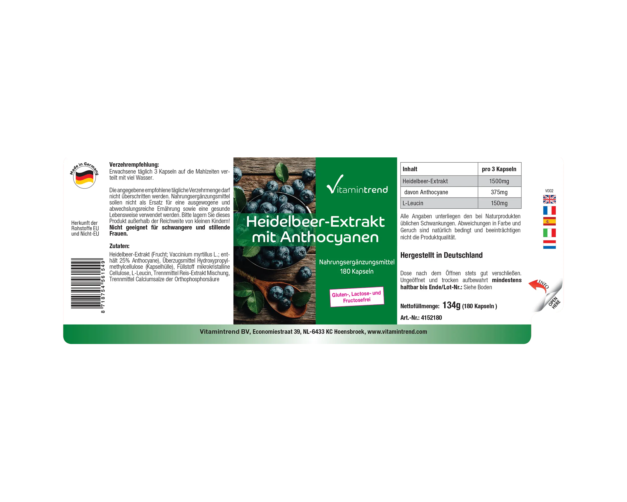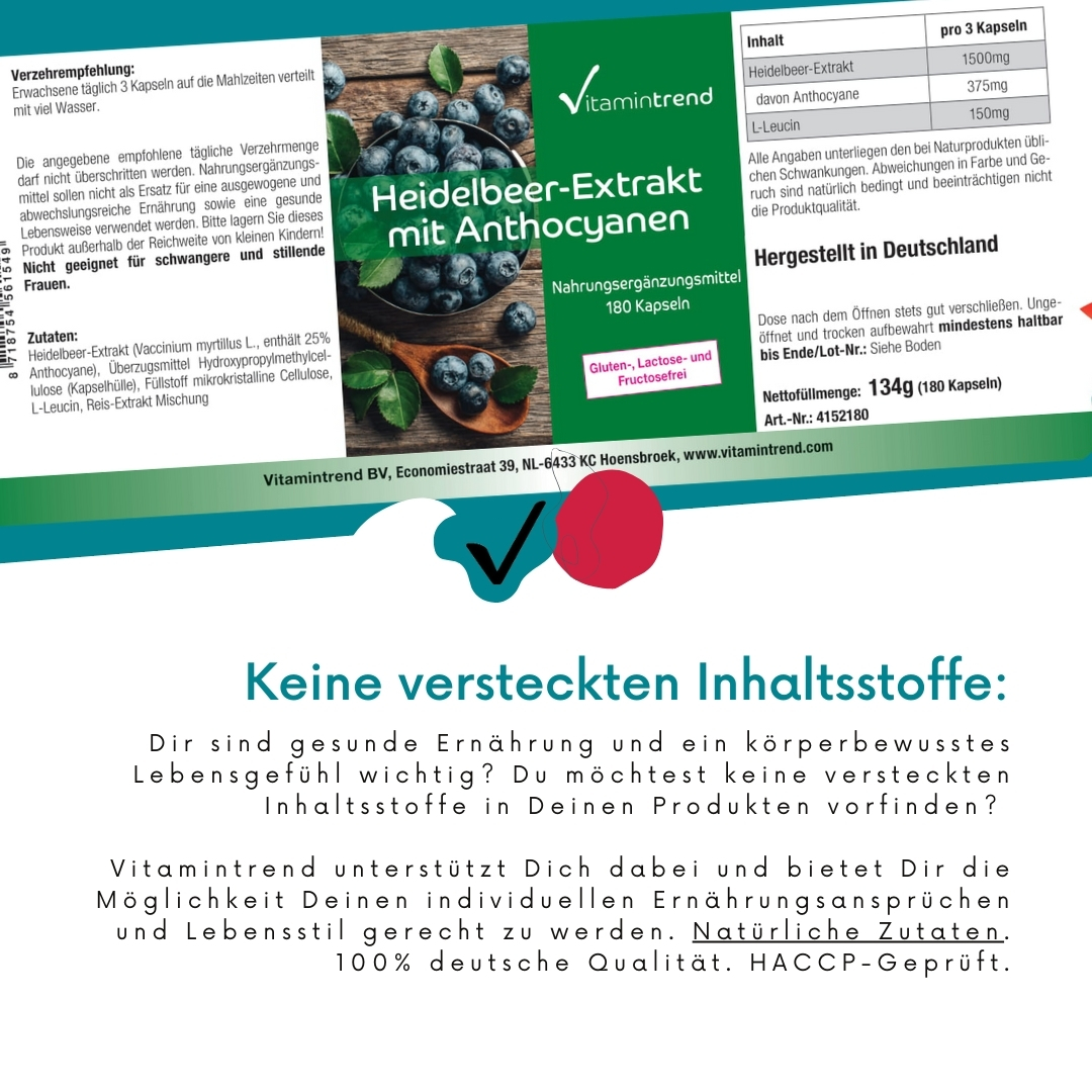 | Heidelbeer-Extrakt / Bosbessenextract / Extrait de Myrtille / Extracto de Arándano / Estratto di Mirtillo Nero / Blauwe Bosbes Extract | 1500mg |