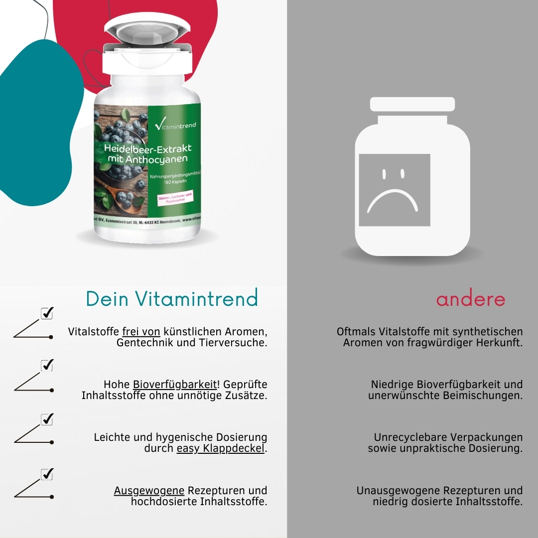 Diese kraftvolle Kombination unterstützt die Hautgesundheit, indem sie die Elastizität fördert, vor freien Radikalen schützt und das allgemeine Hautbild verbessert. Grüner Tee unterstützt den Zellschutz und trägt zu einem natürlichen Energiehaushalt bei., Beta-Carotin bietet antioxidativen Schutz und Heidelbeer-Extrakt steigert die Vitalität der Haut mit seinem reichhaltigen Nährstoffprofil. Ideal für alle, die ihre Haut von innen heraus pflegen möchten.