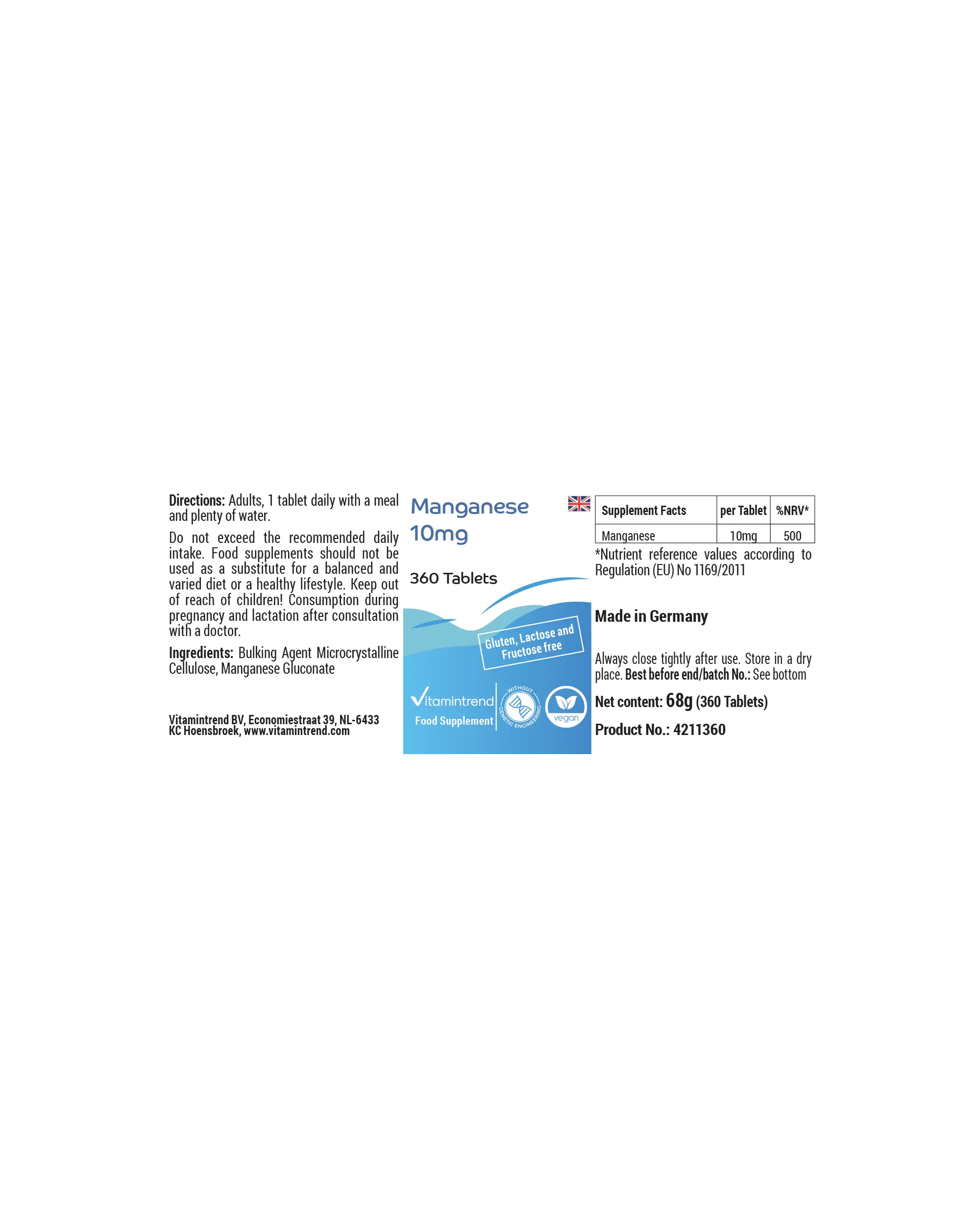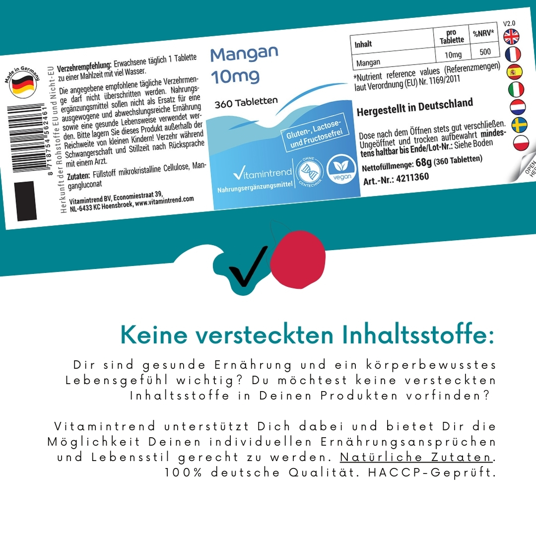 Mangaan 10 mg van Vitamintrend – Made in Germany