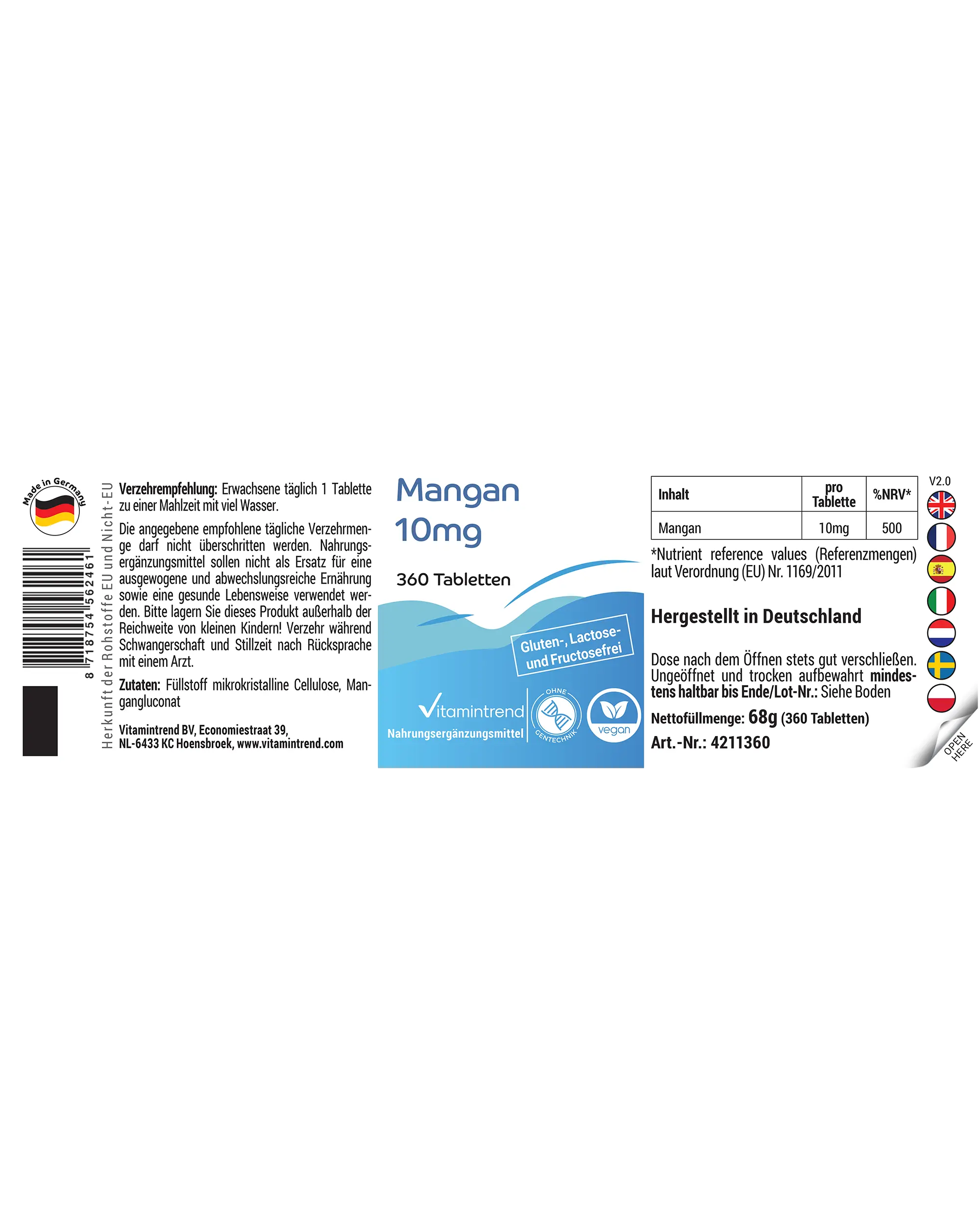 Productinformatie "Mangaan 10 mg - 360 tabletten - grootverpakking | Vitamintrend"