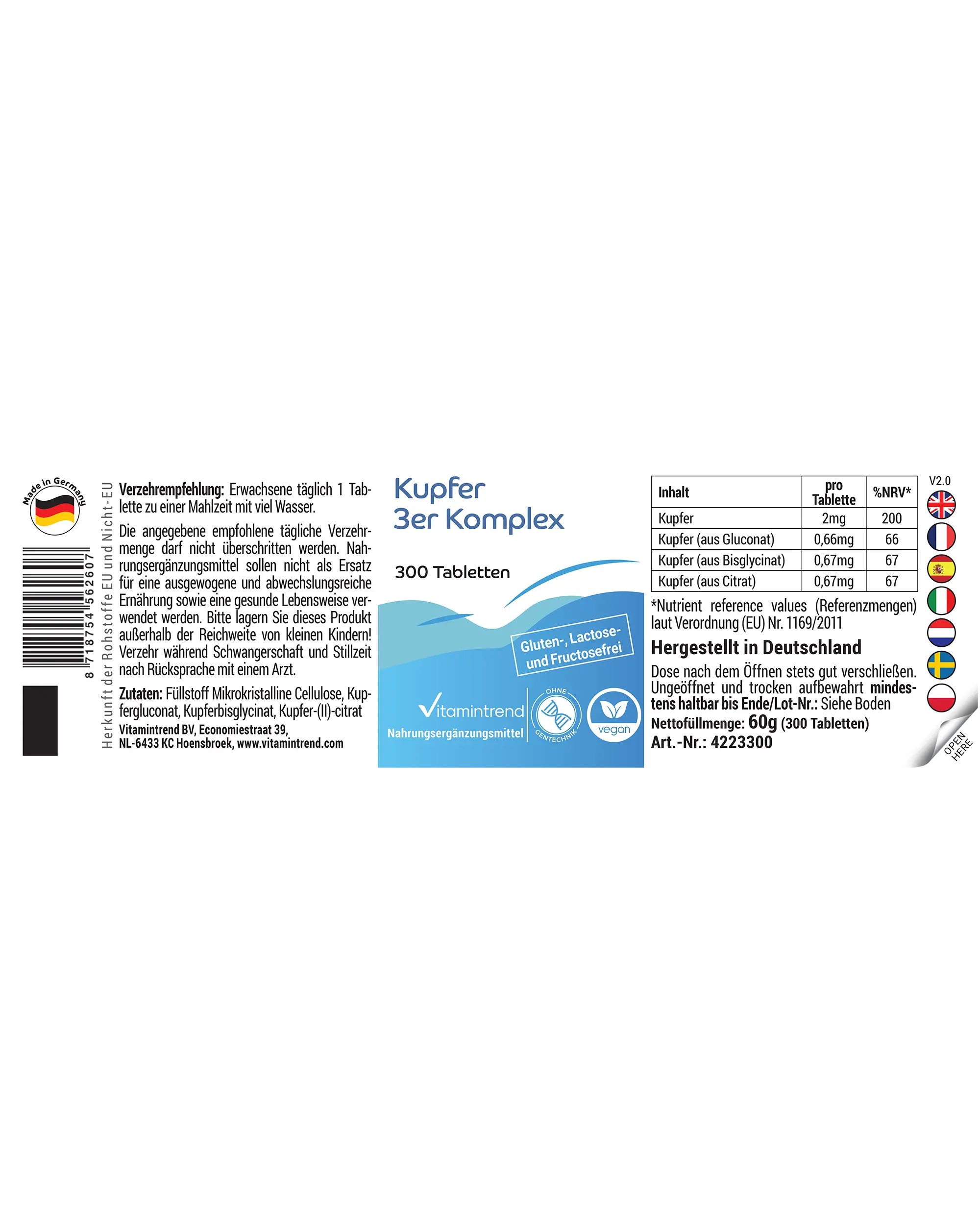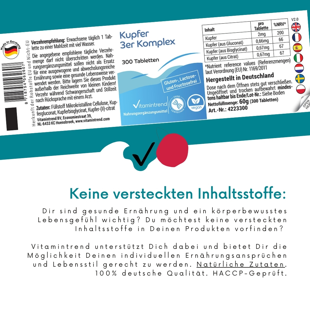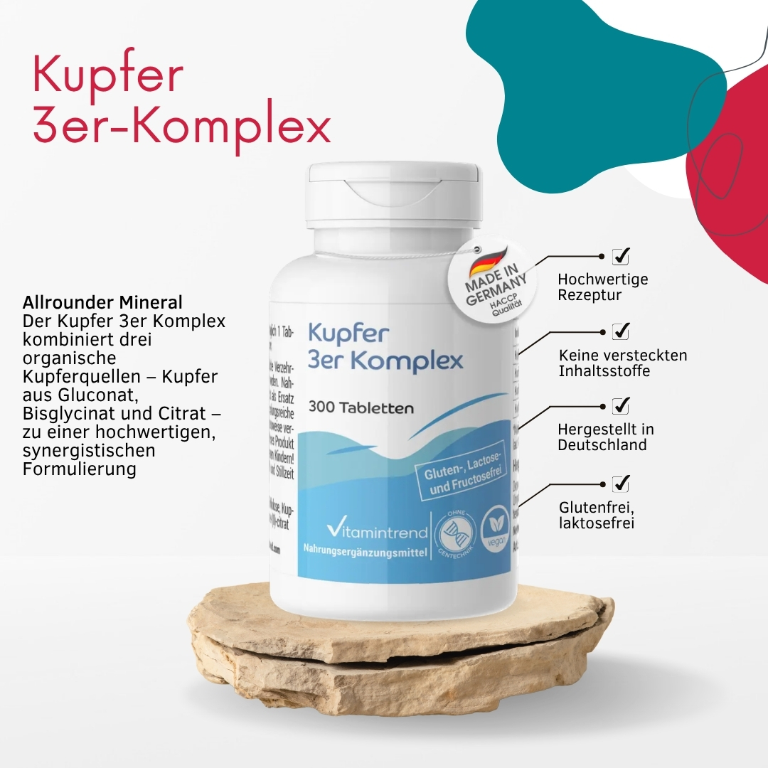 Copper 3-Complex by Vitamintrend – No unnecessary additives – Made in Germany