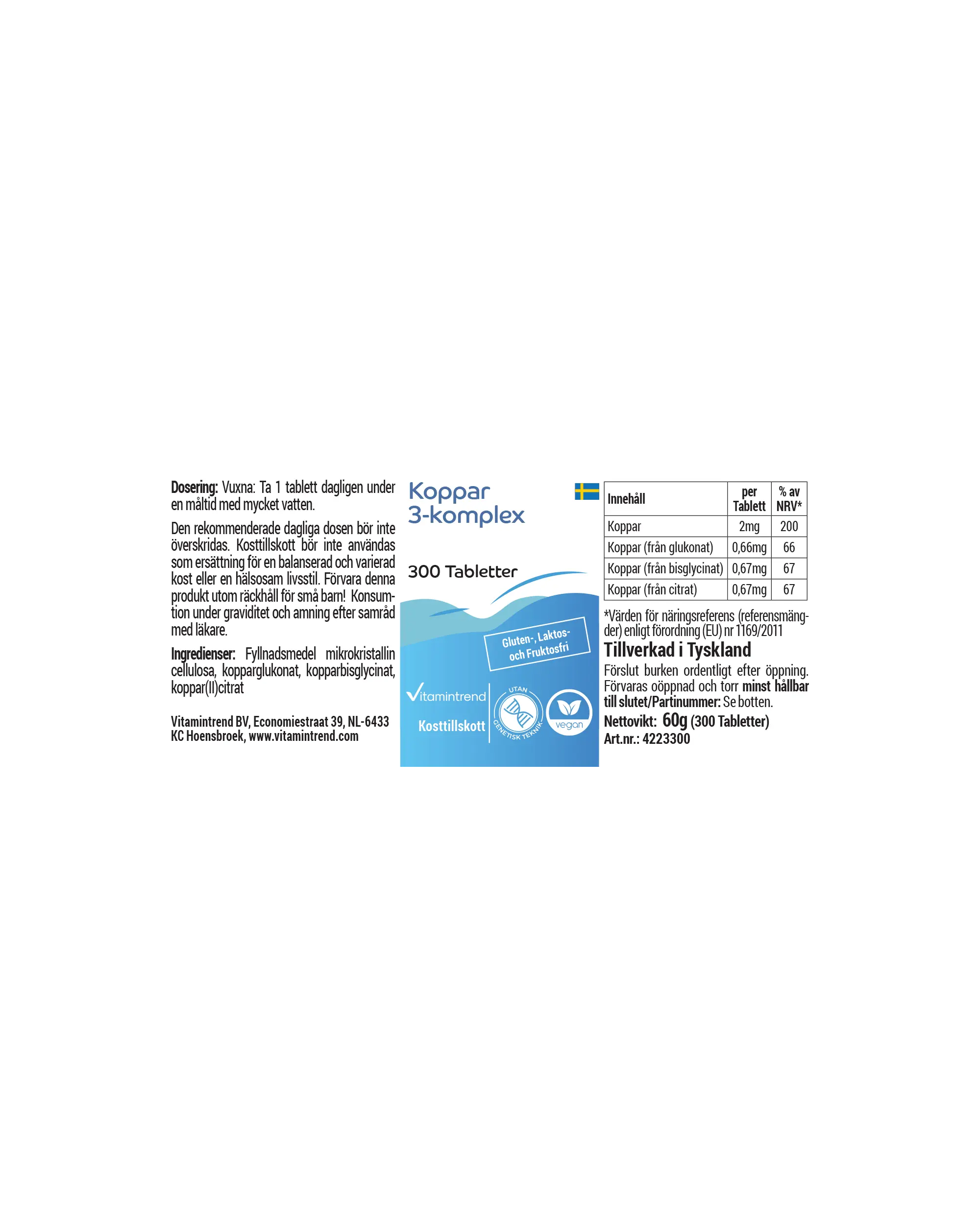 Product information "Copper 3-Complex - 300 Tablets | Vitamintrend"