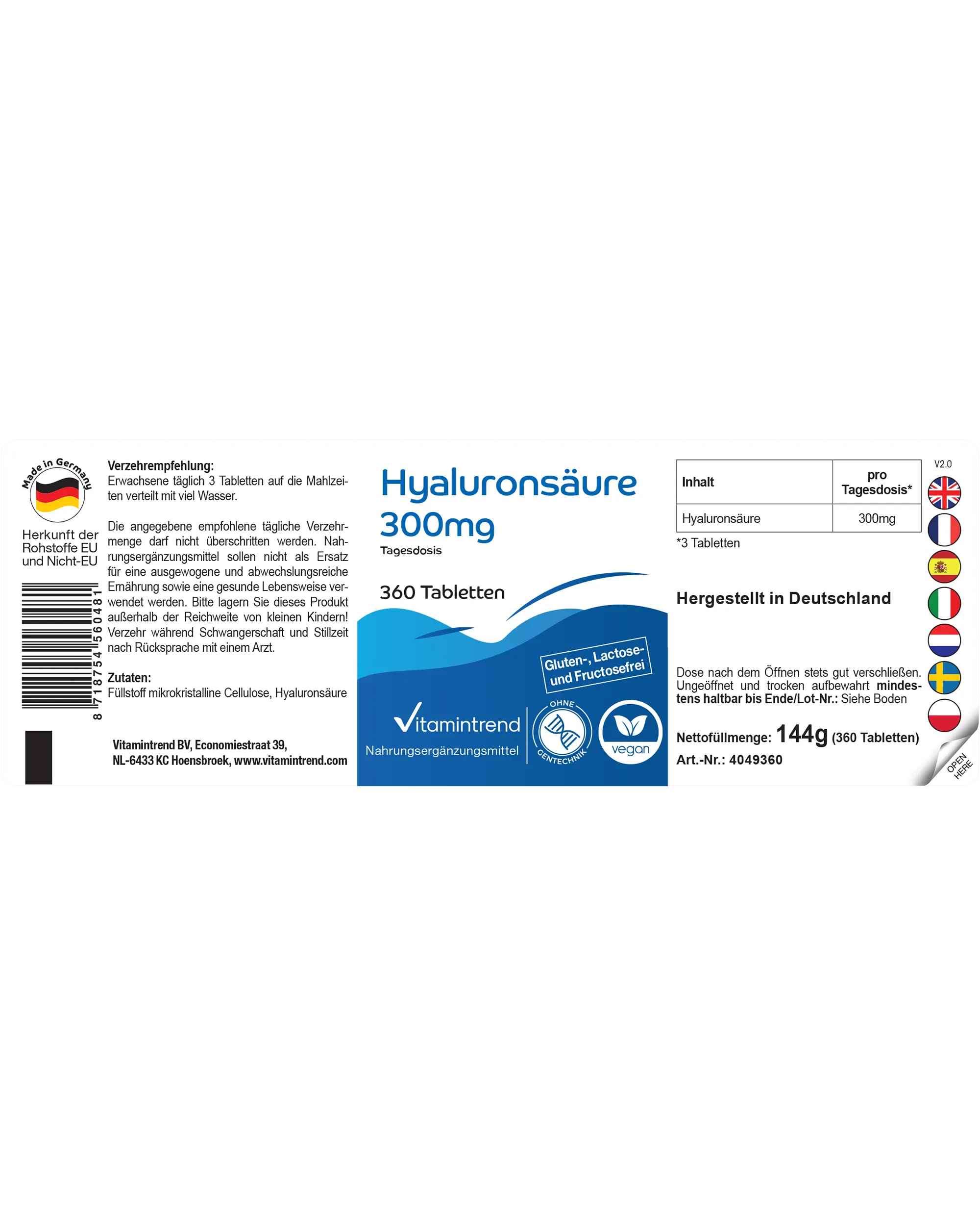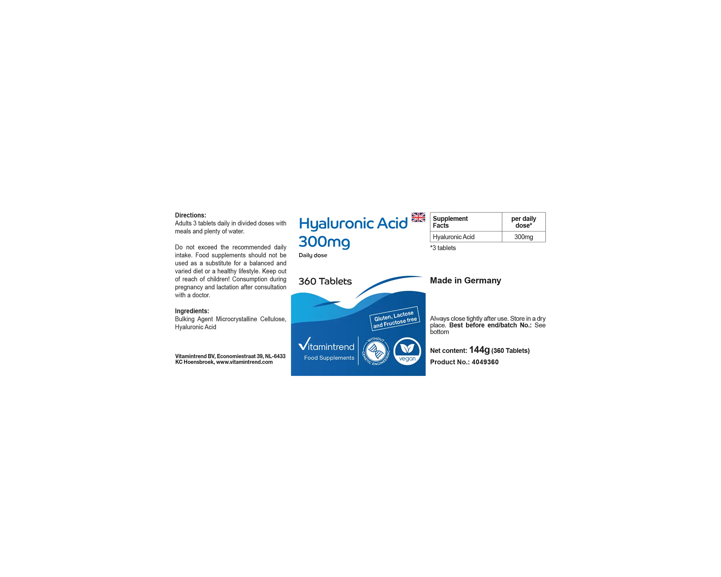 Product information "Hyaluronic acid 100mg 360 tablets bulk pack, vegan"