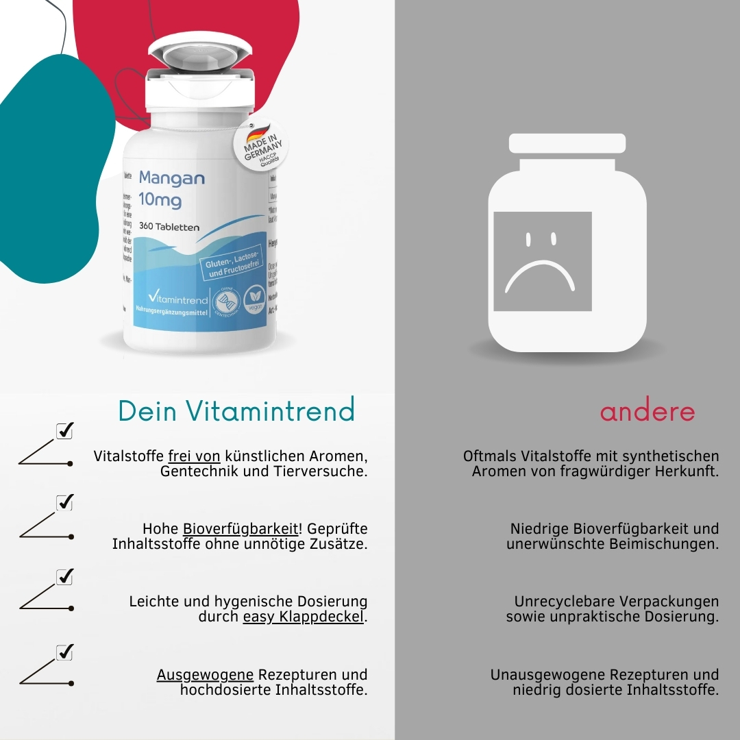 Mangaan 10 mg van Vitamintrend – Made in Germany