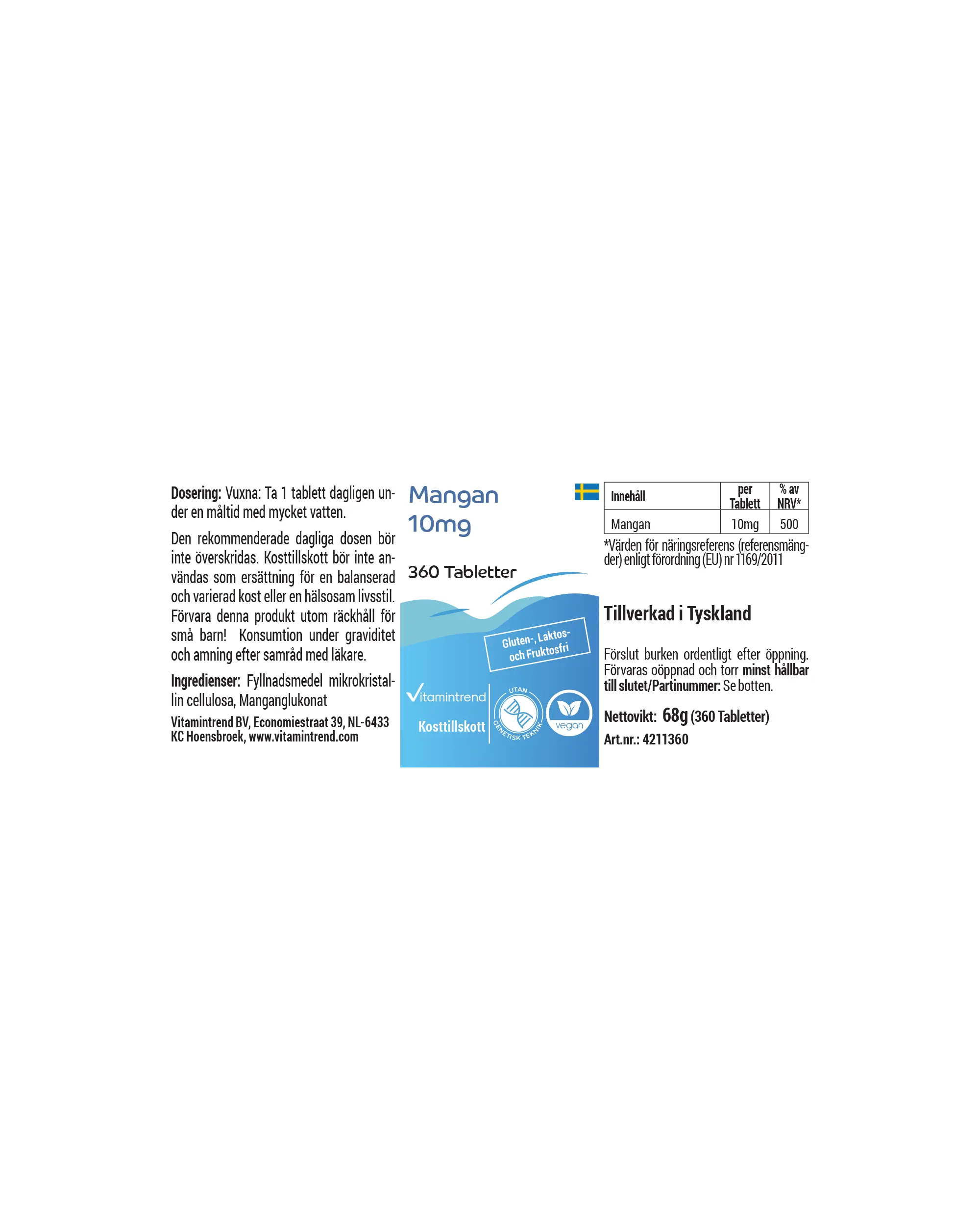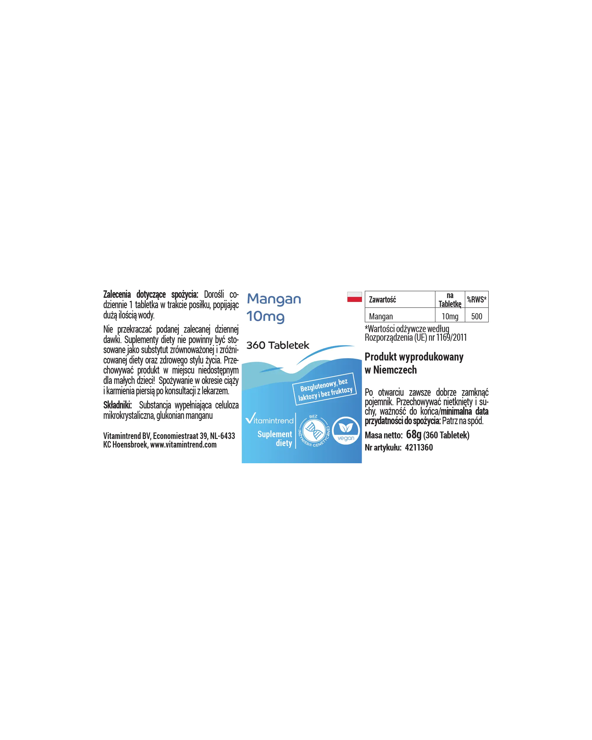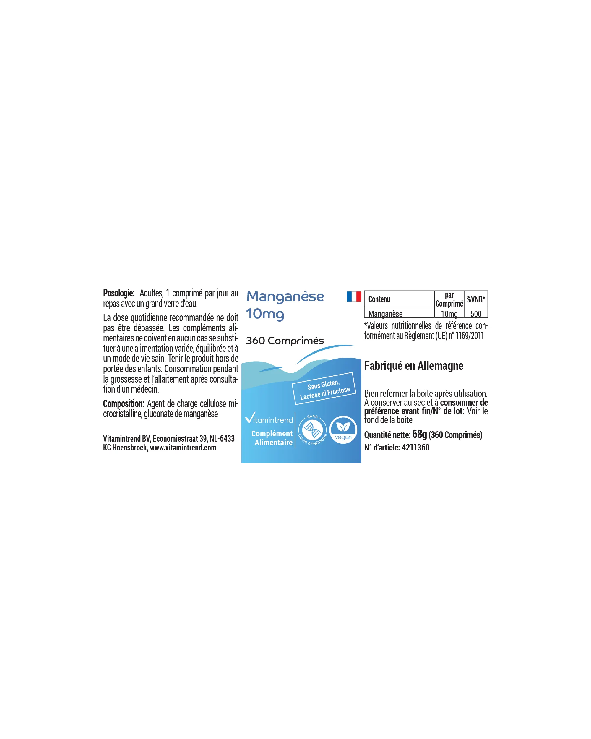 Productinformatie "Mangaan 10 mg - 360 tabletten - grootverpakking | Vitamintrend"