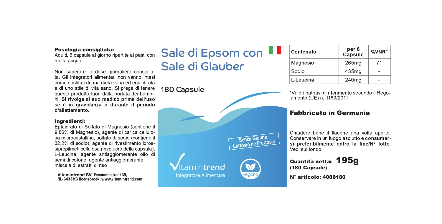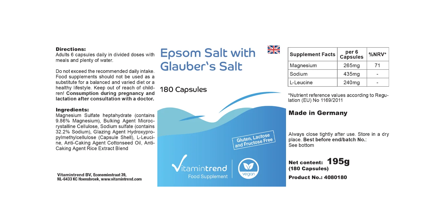 Bittersalz mit Glaubersalz - mit Magnesiumsulfat und Natriumsulfat - 180 Kapseln - vegan | Vitamintrend