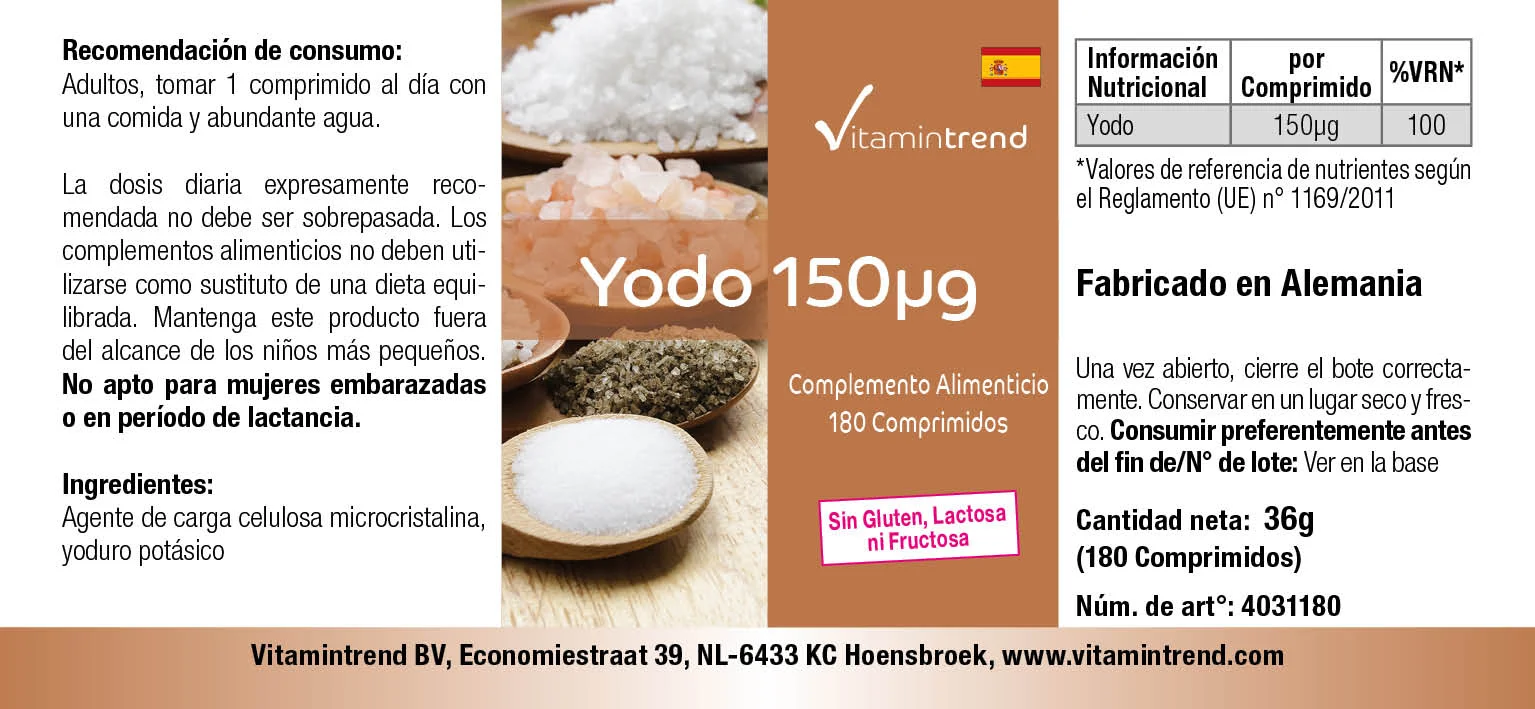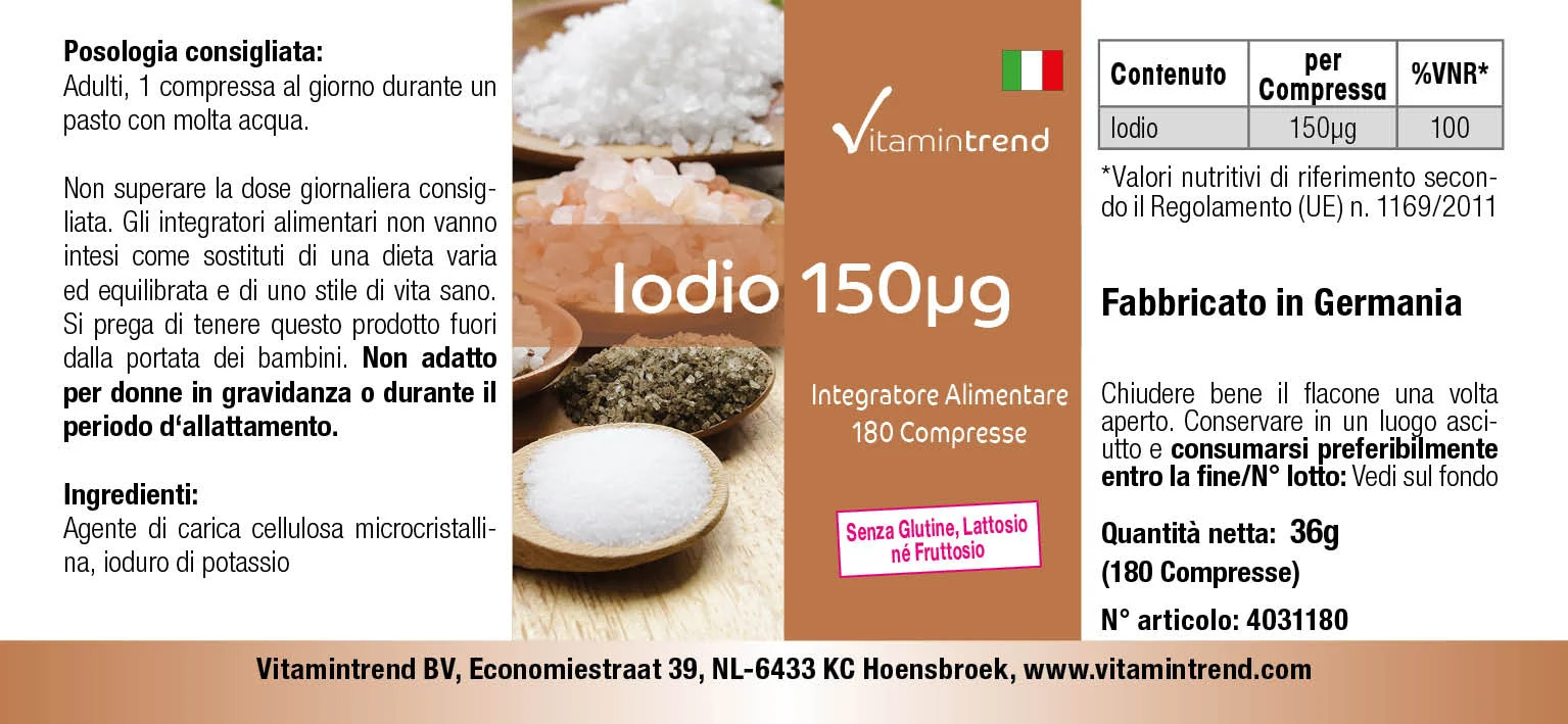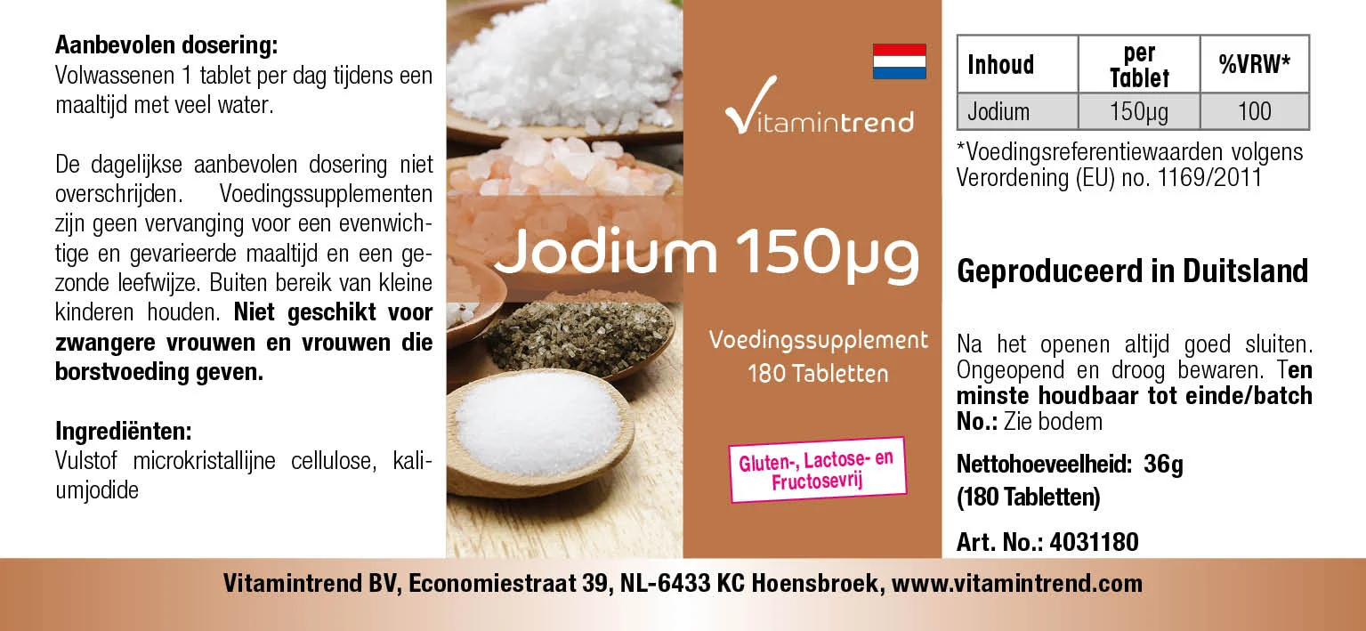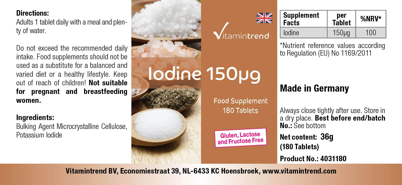 Produktinformationen "Jod 150µg - aus Kaliumjodid Iodine - 180 Tabletten - vegan | Vitamintrend"
