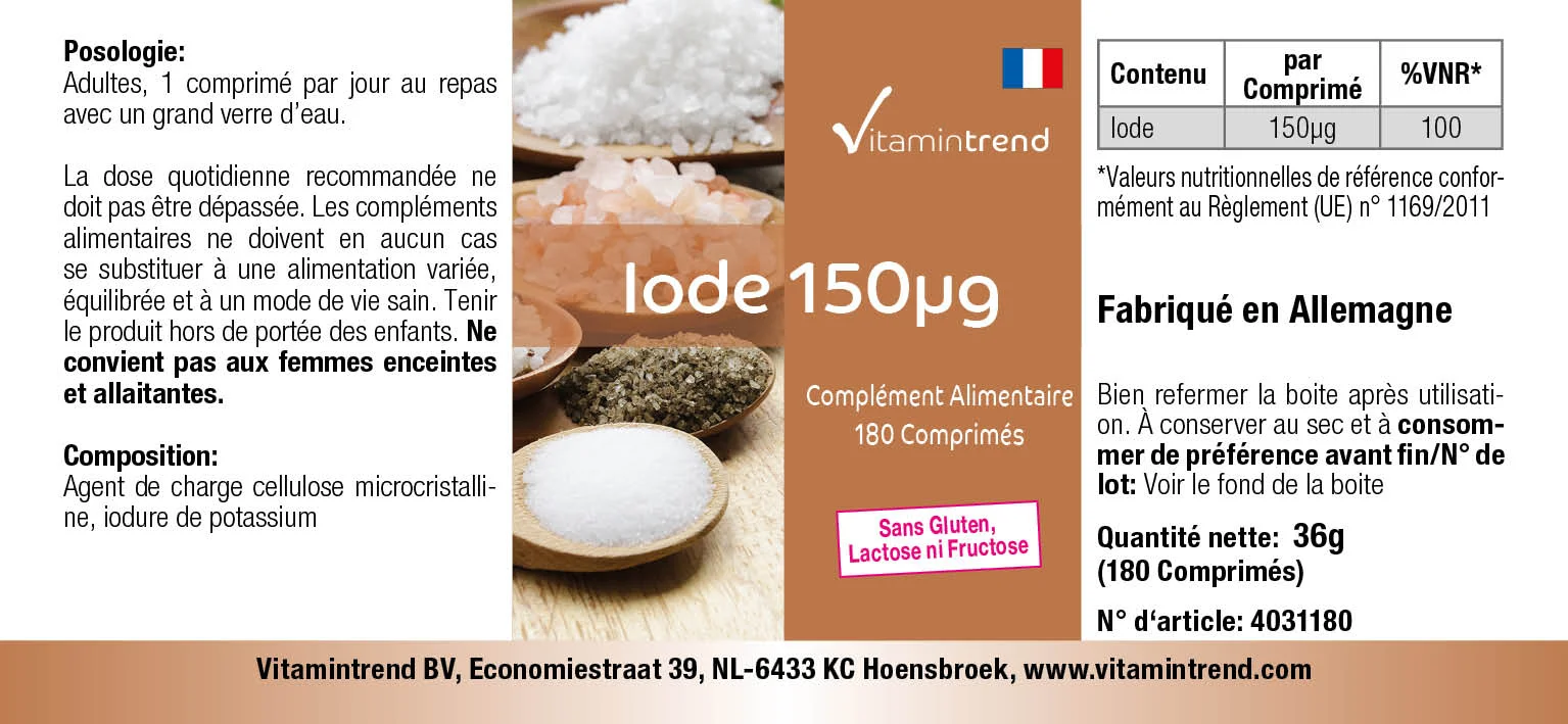 Jod 150µg - aus Kaliumjodid Iodine - 180 Tabletten - vegan | Vitamintrend