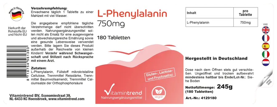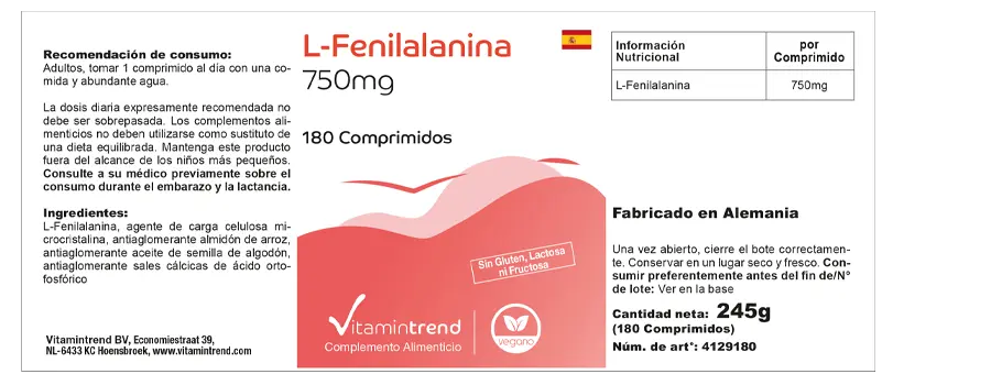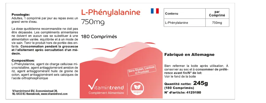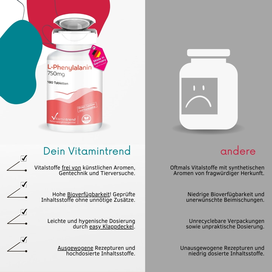 L-Phenylalanin 750mg - 180 Tabletten - hochdosiert | Vitamintrend