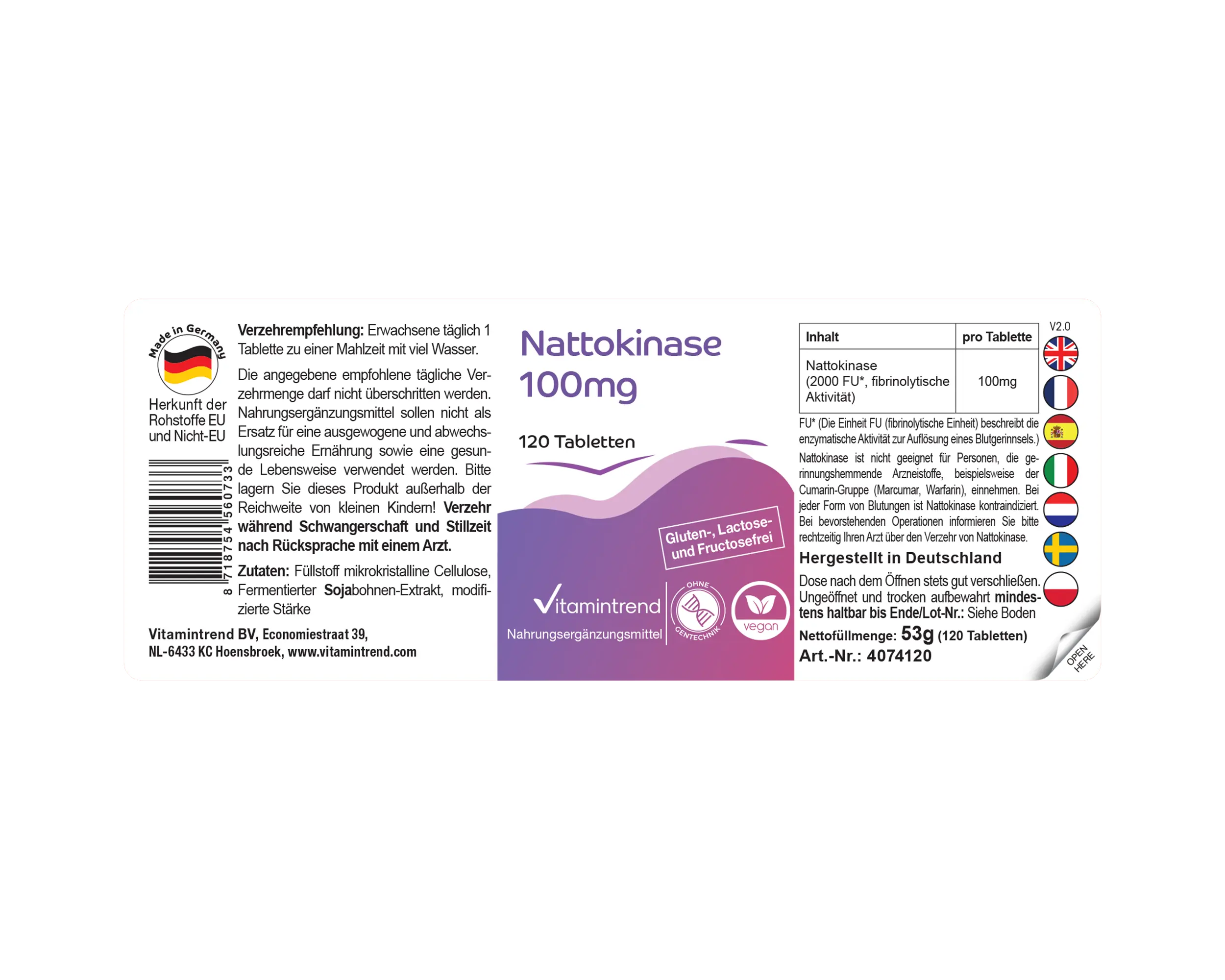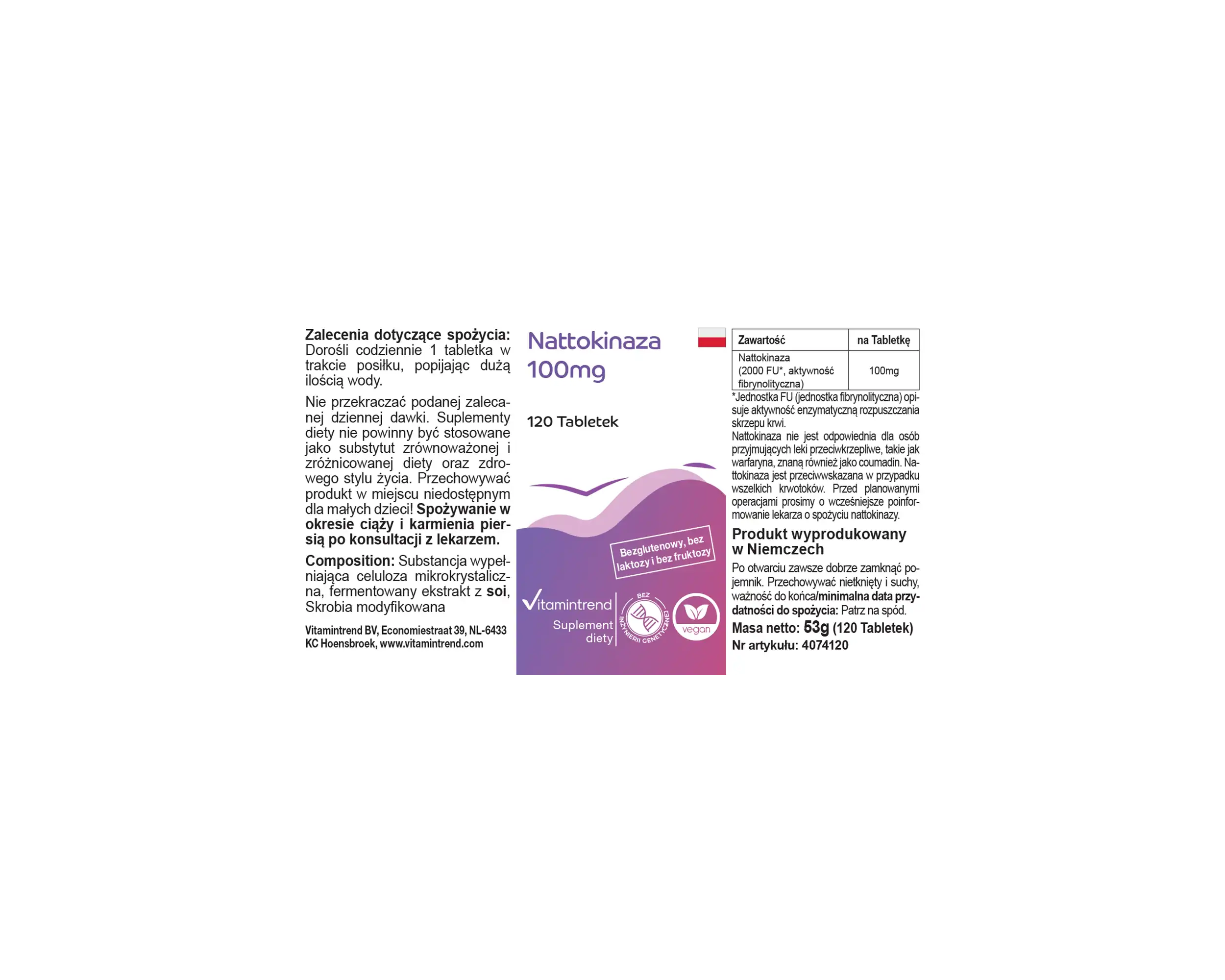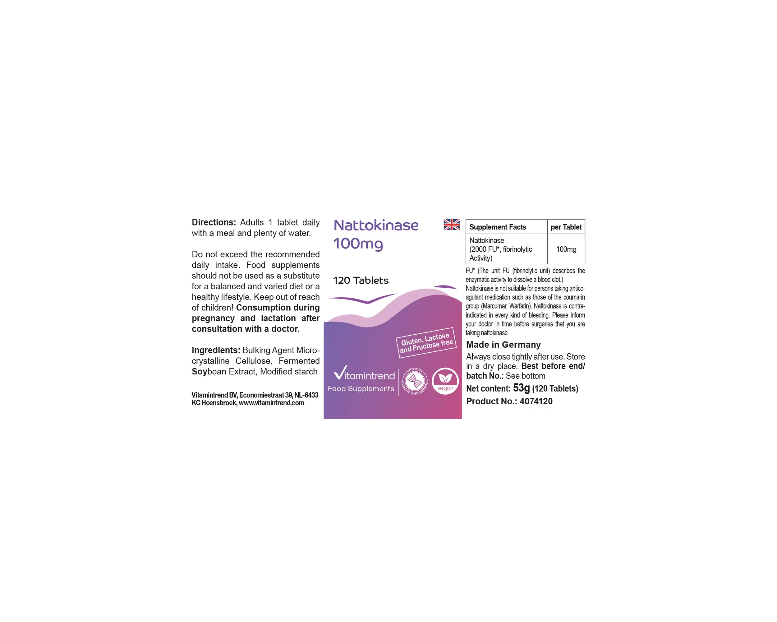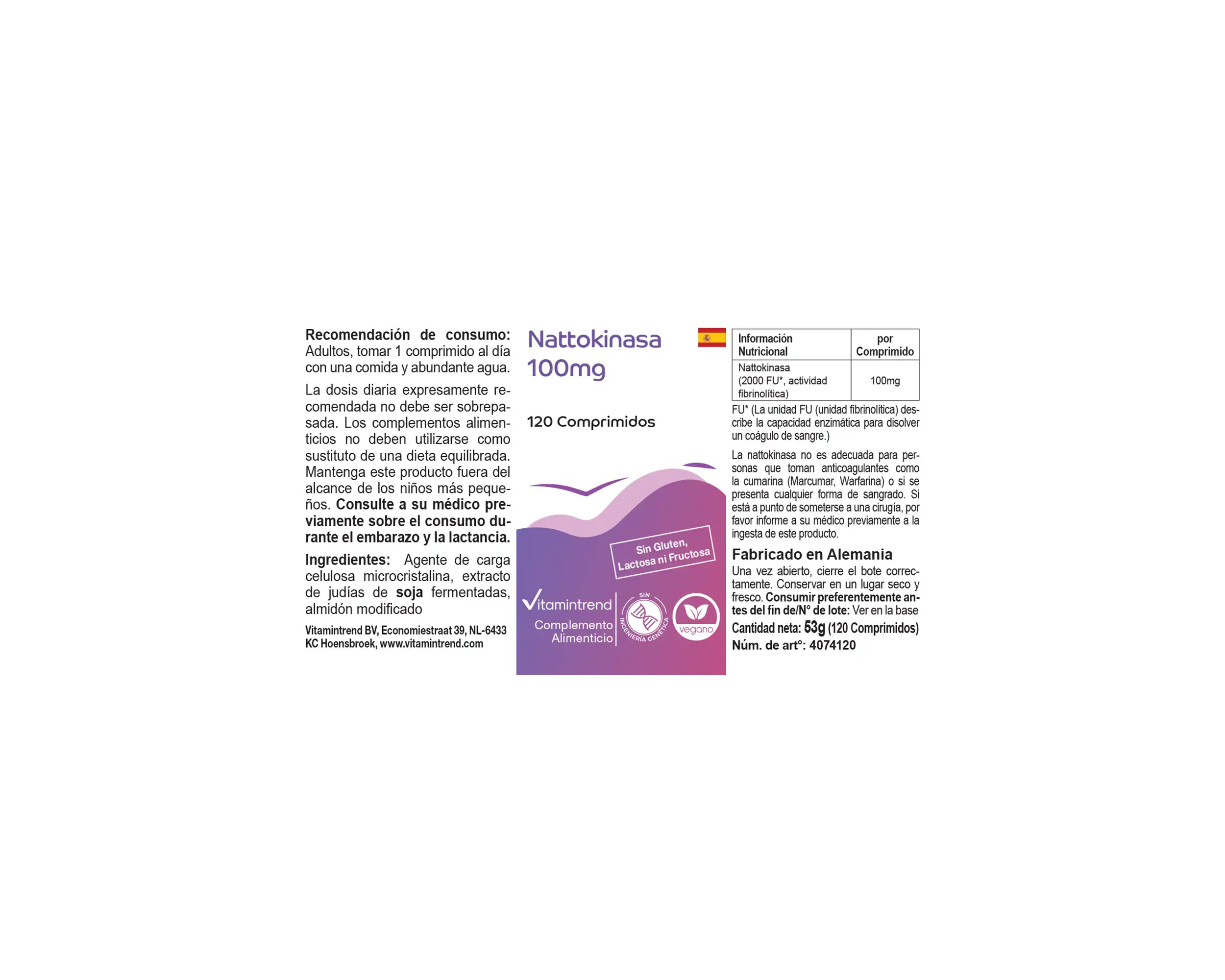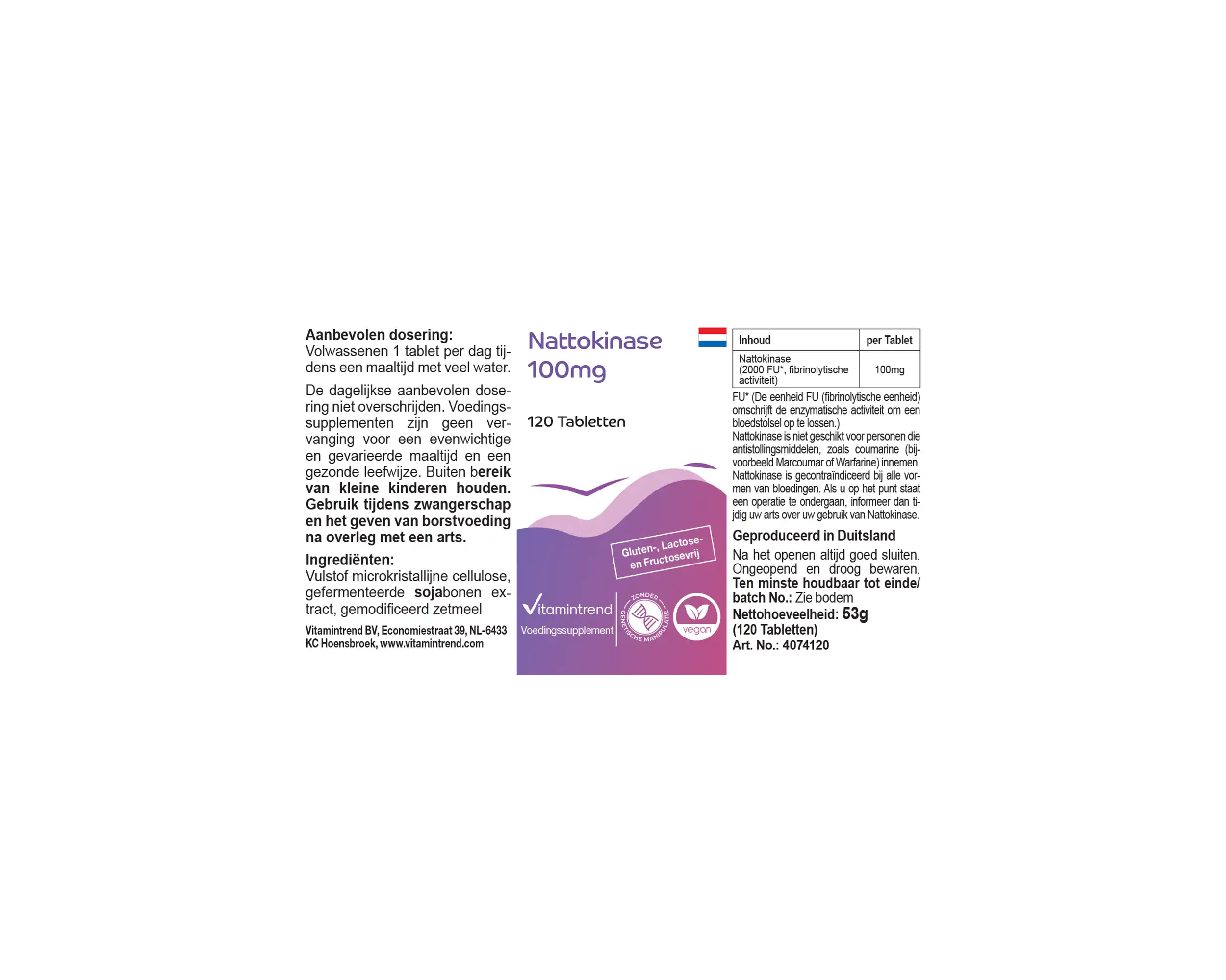 Produktinformationen "Nattokinase 100mg - 120 Tabletten 2000 FU Großpackung für 4 Monate - vegan | Vitamintrend"