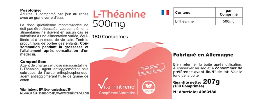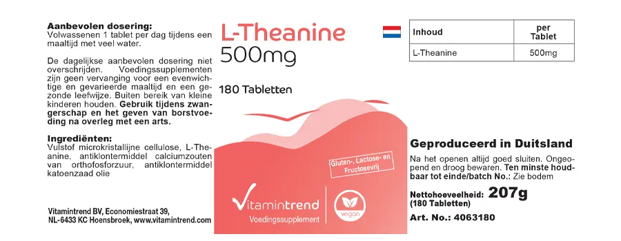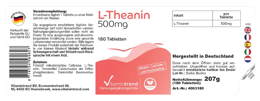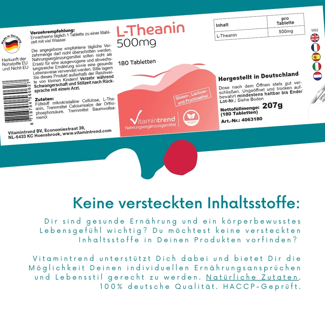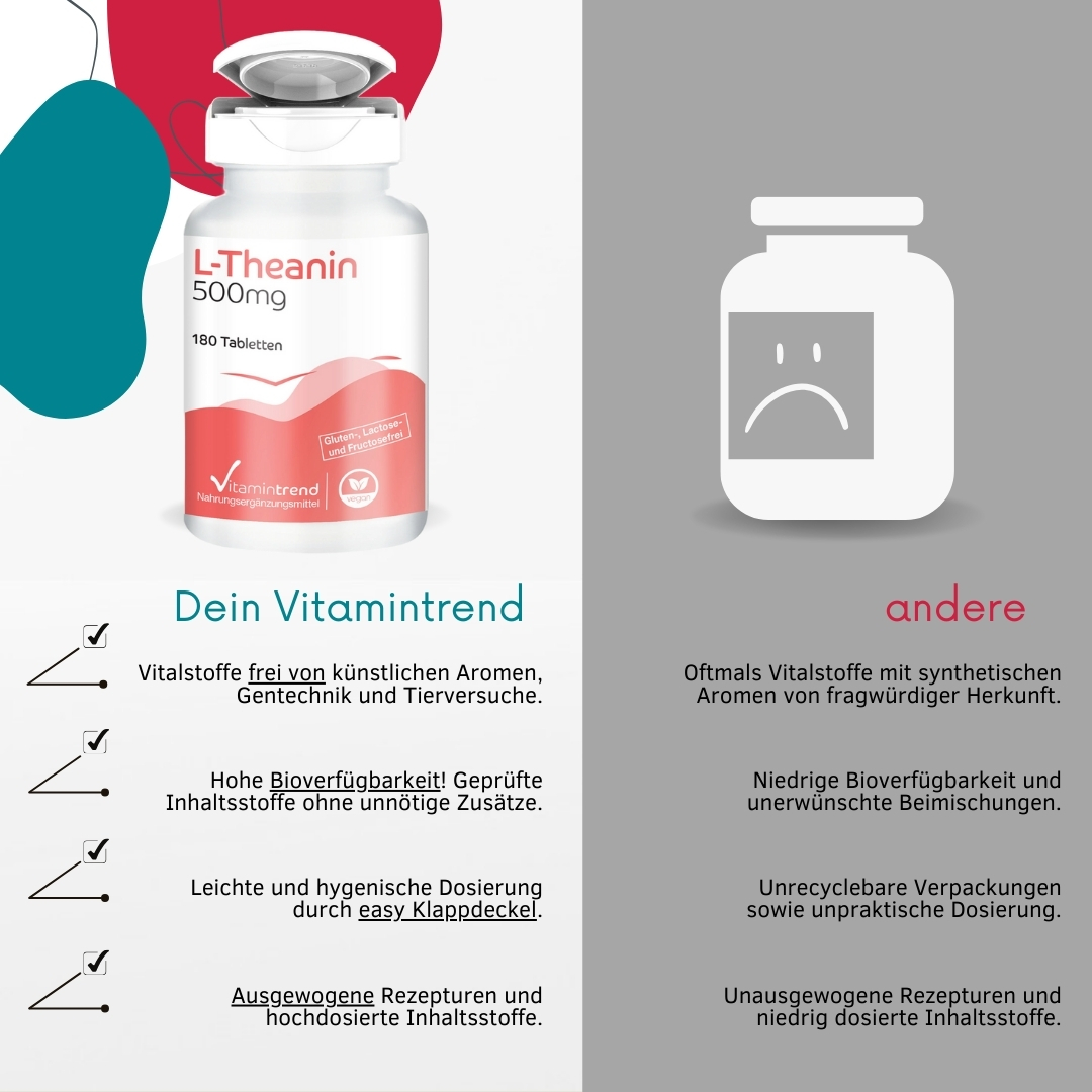 Die L-Theanin Tabletten von Vitamintrend sind eine hervorragende Ergänzung zu meiner täglichen Routine. Die Tabletten sind leicht einzunehmen und gut verträglich. Ich schätze die hohe Qualität und die Tatsache, dass sie ohne Magnesiumstearat und Siliciumdioxid auskommen. Die beruhigende Wirkung, ohne dabei Schläfrigkeit zu verursachen, ist ein großer Pluspunkt. Eine Packung hält sechs Monate, was ein gutes Preis-Leistungs-Verhältnis bietet.
