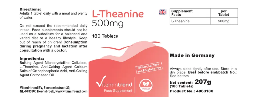 Ich nehme die L-Theanin Tabletten von Vitamintrend seit einigen Wochen und bin sehr zufrieden mit dem Ergebnis. Die entspannende Wirkung ist spürbar, ohne dass ich mich müde fühle. Besonders gefällt mir, dass die Tabletten vegan sowie gluten-, lactose- und fructosefrei sind. Eine Packung reicht für ein halbes Jahr, was sehr praktisch ist. Klare Kaufempfehlung!