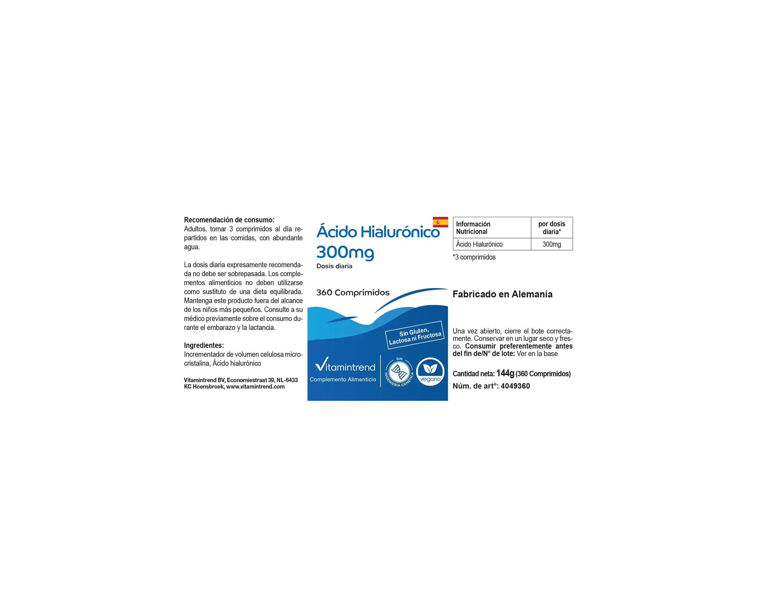 Informazioni sul prodotto "Acido ialuronico 100mg 360 compresse confezione grande, vegan"