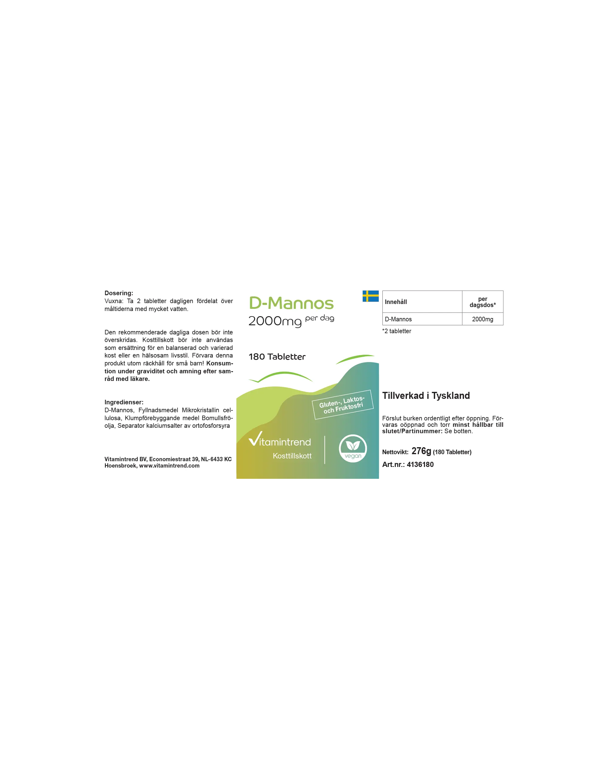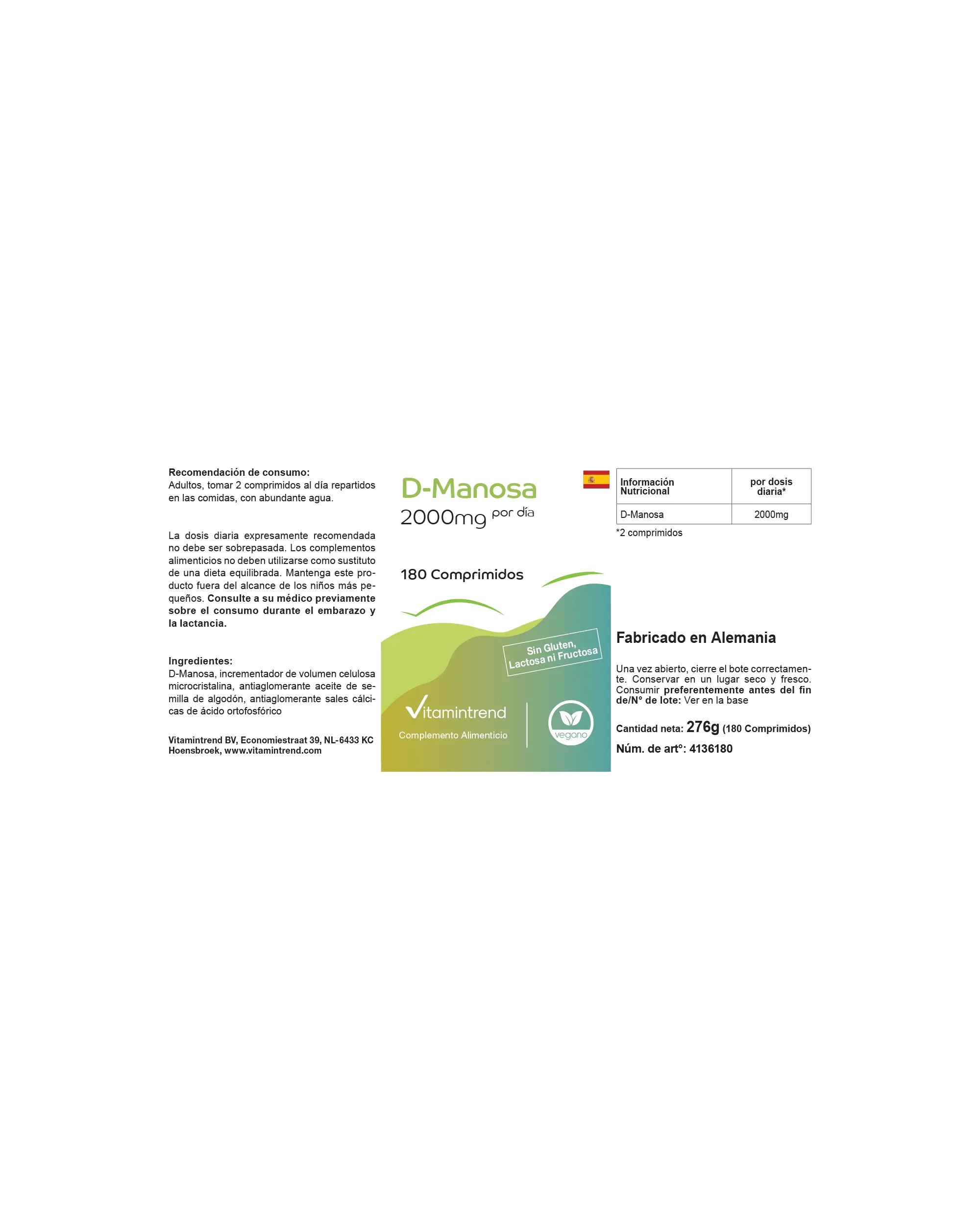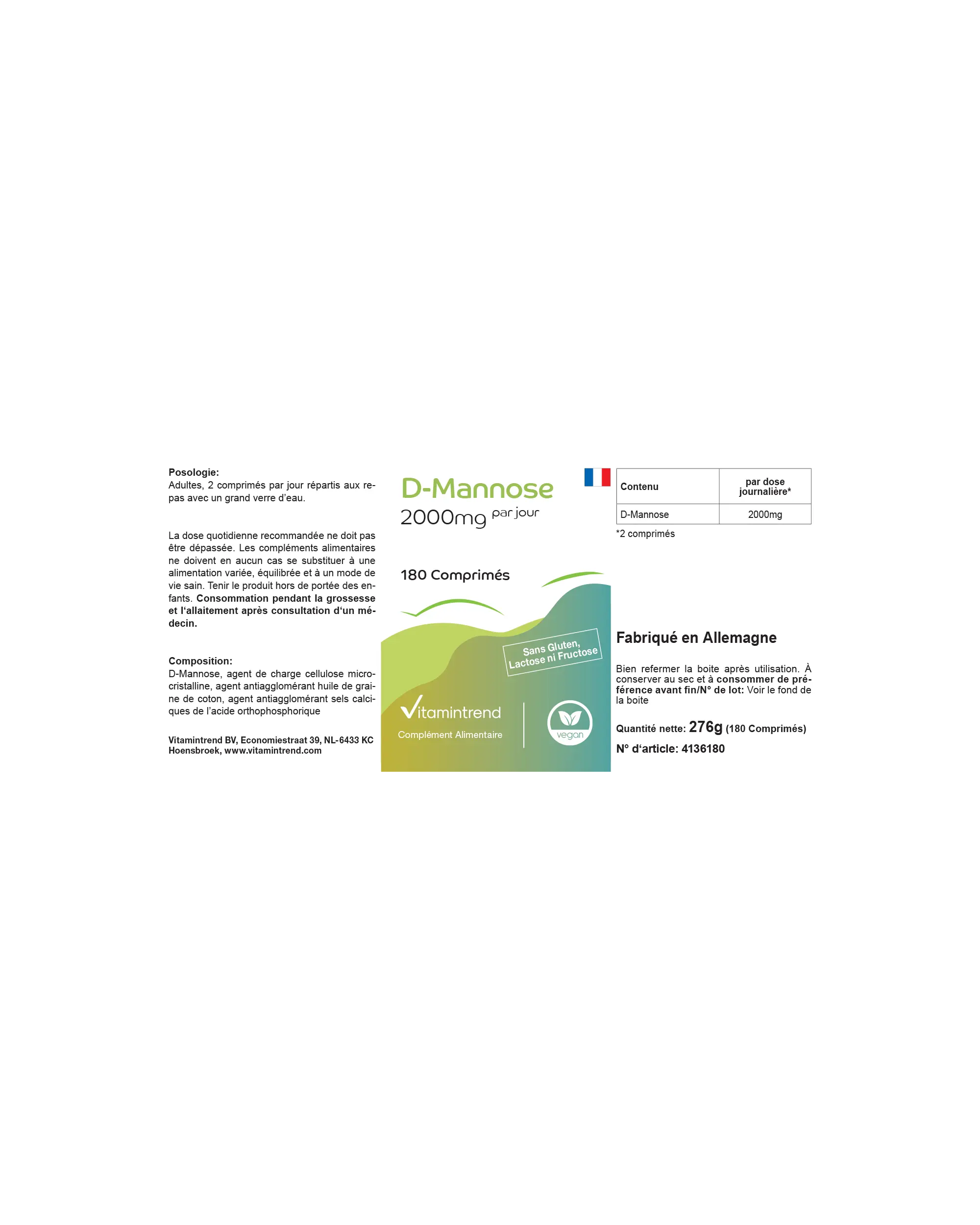 Informazioni sul prodotto "D-Mannosio 2000mg - vegano - 180 compresse - confezione bulk"