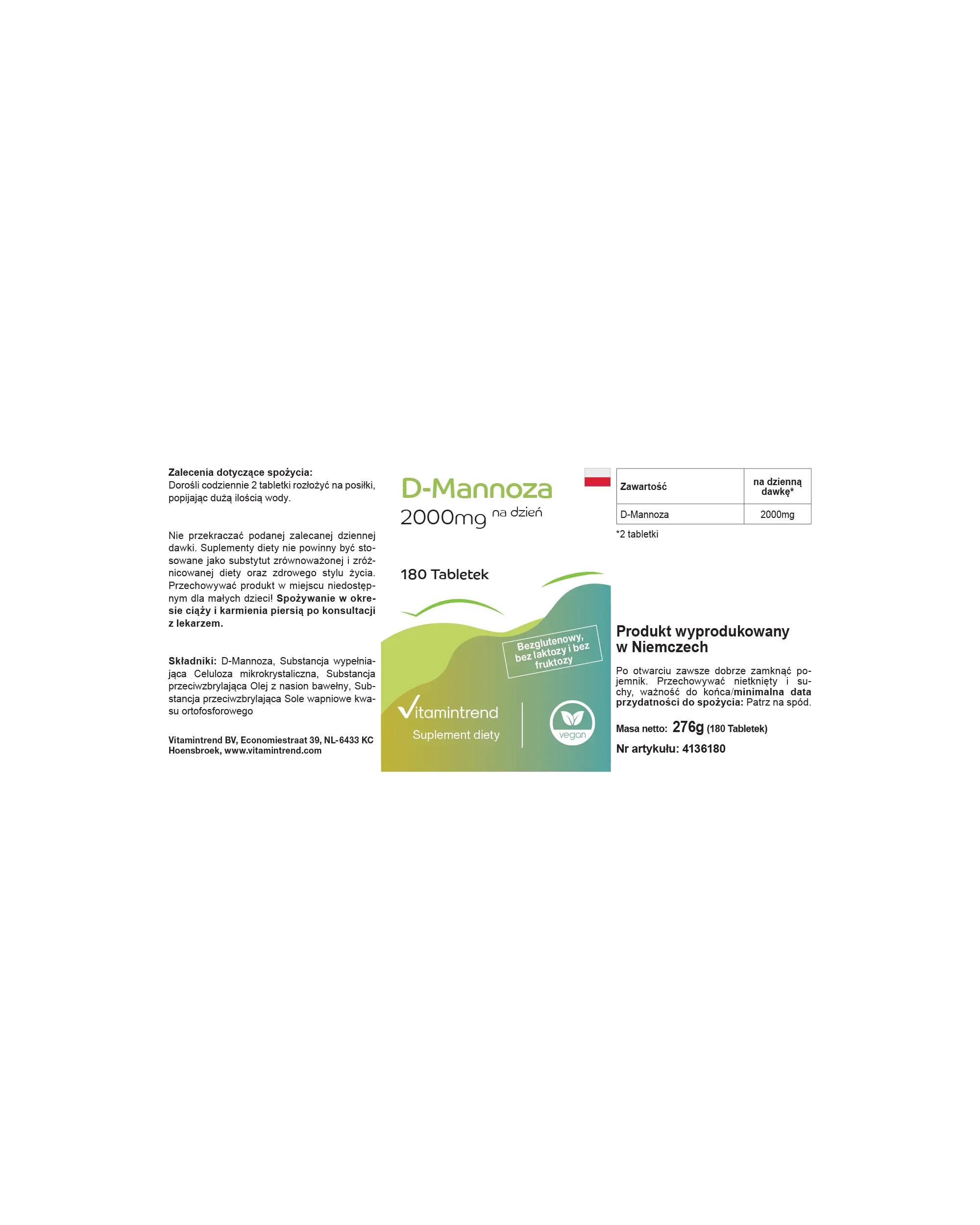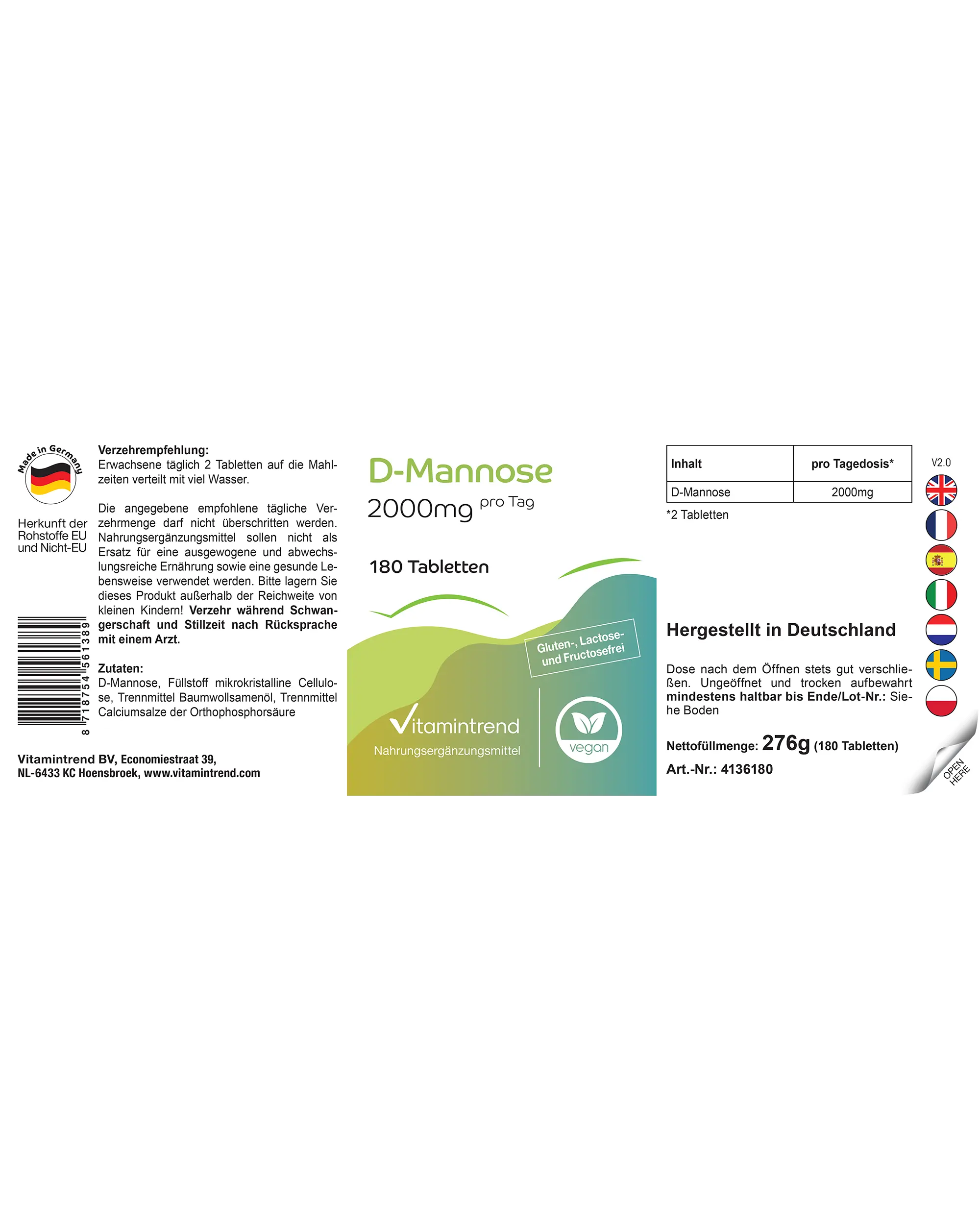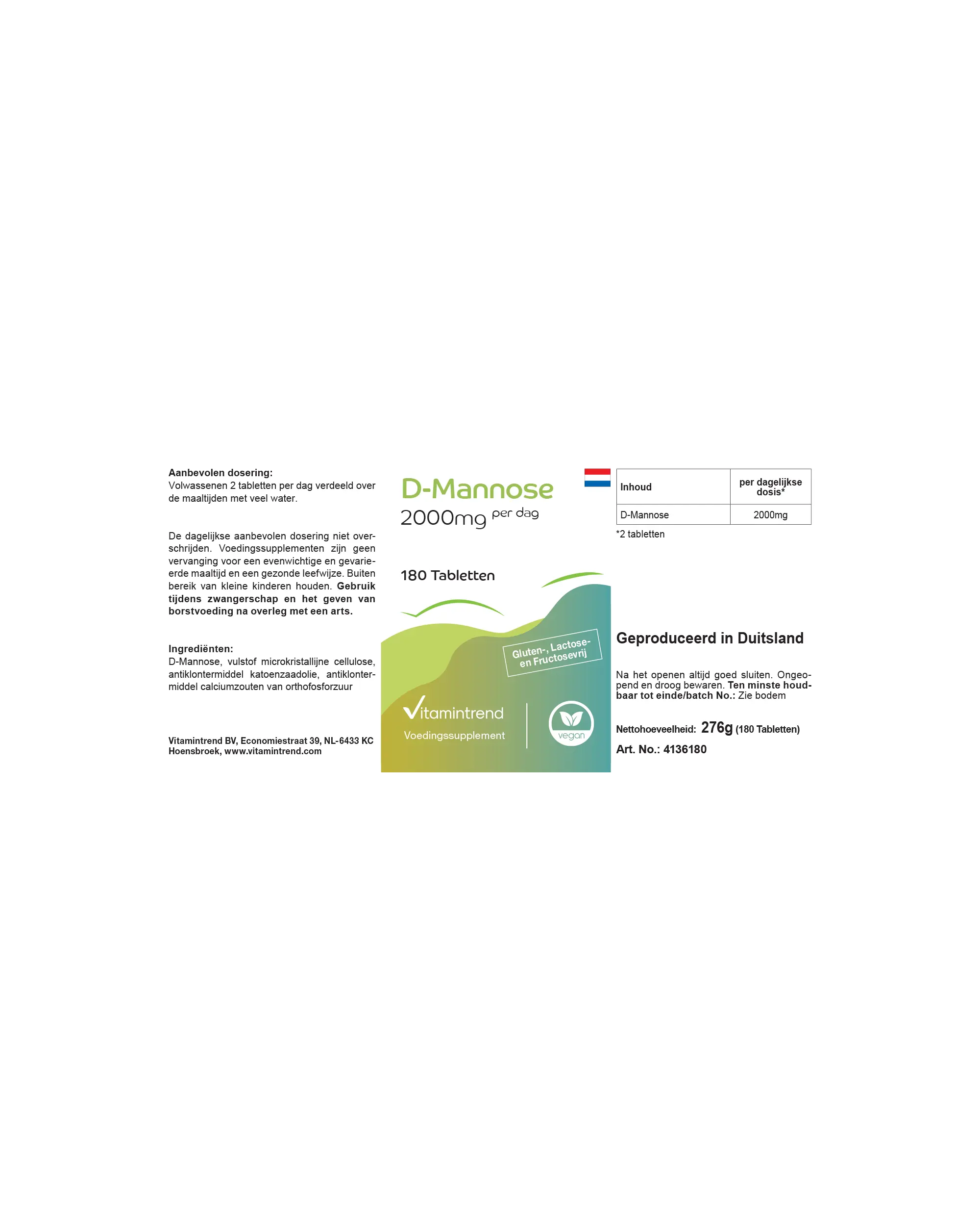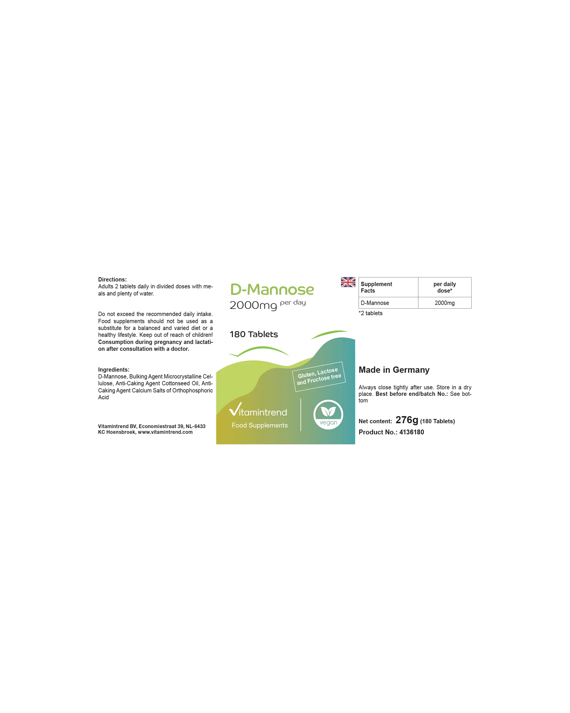 Informazioni sul prodotto "D-Mannosio 2000mg - vegano - 180 compresse - confezione bulk"