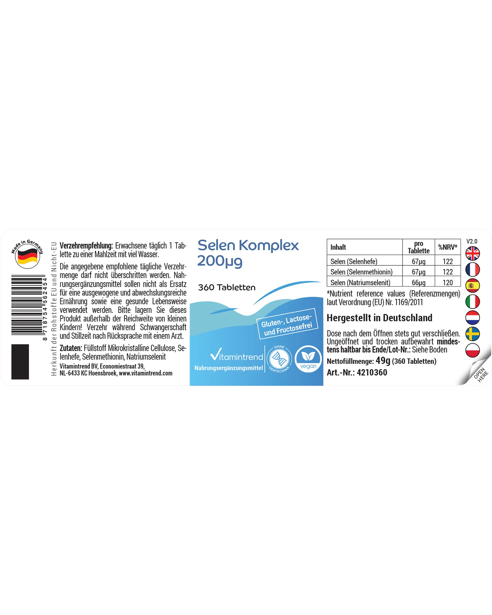 Informazioni sul prodotto "Selenio Complesso 200 µg – 3 Forme di Selenio – 360 Compresse | Vitamintrend"