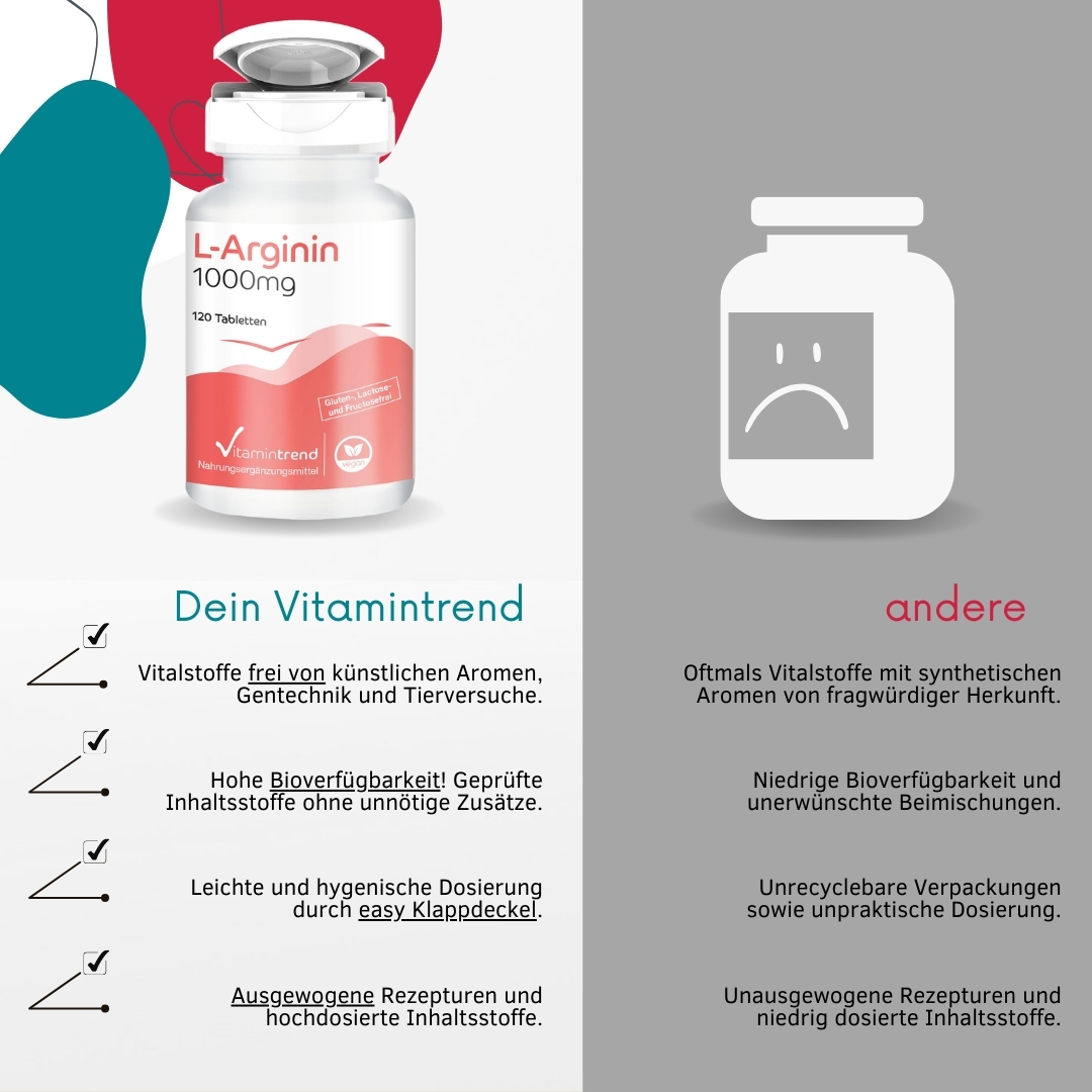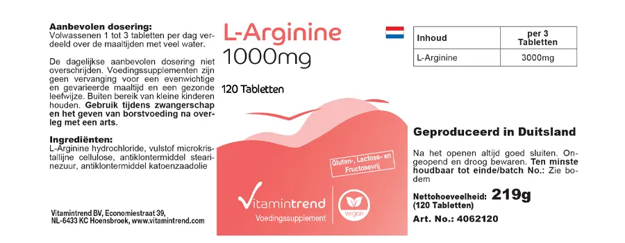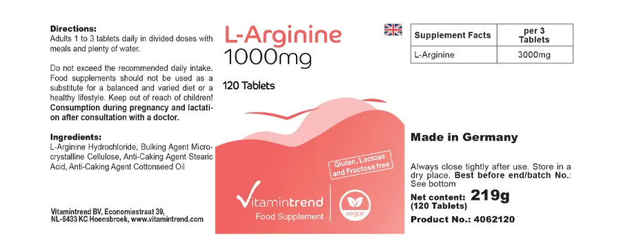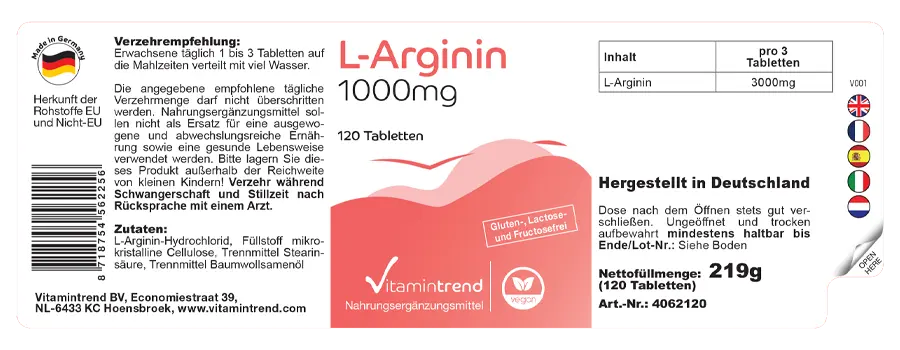 Le compresse di L-arginina Vitamintrend sono prodotte secondo rigorosi standard di qualità e non contengono additivi inutili.