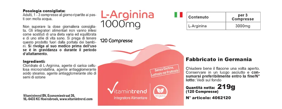 Acquistare L-Arginina 100 mg da Vitamintrend