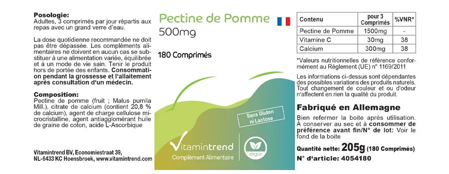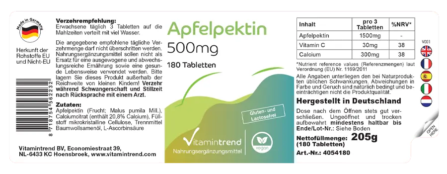 La pectina di mela è una fibra solubile presente nelle pareti cellulari delle piante, in particolare nelle mele, nei pompelmi, nelle arance e nelle albicocche. È apprezzata come componente naturale di una dieta equilibrata.
