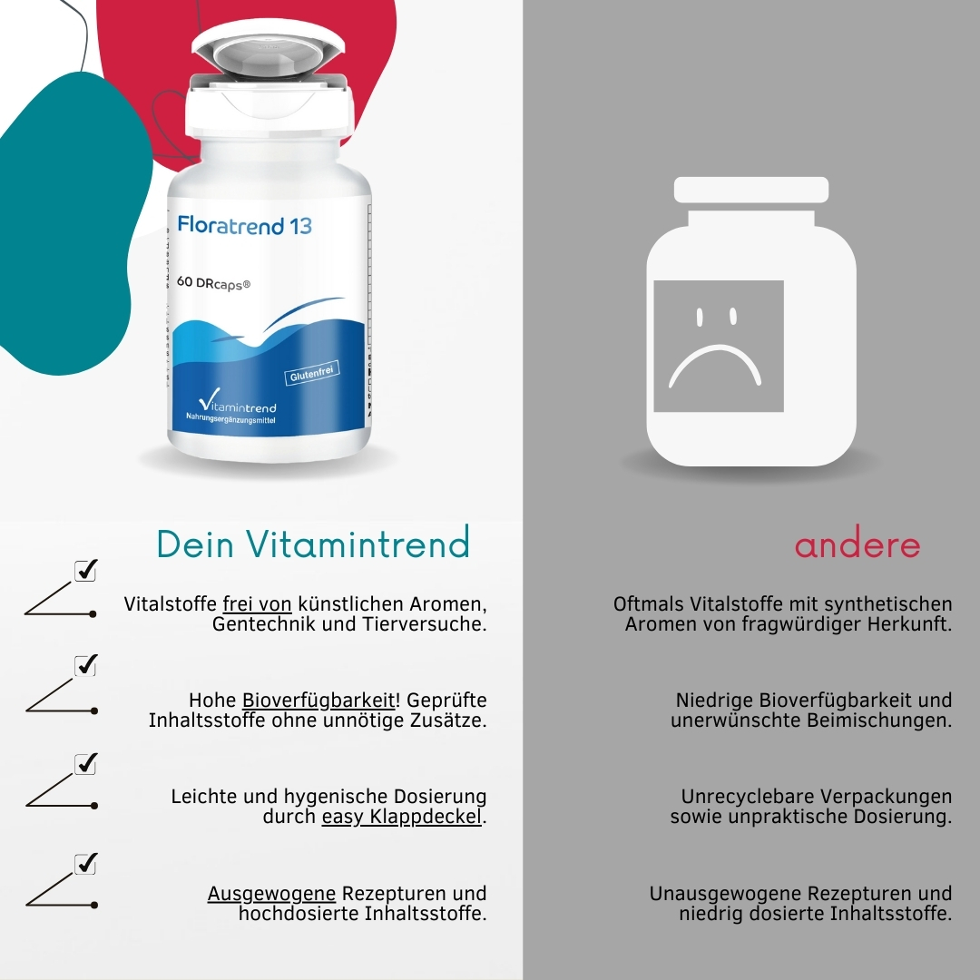 Buoni motivi per scegliere il probiotico Floratrend 13 di Vitamintrend: