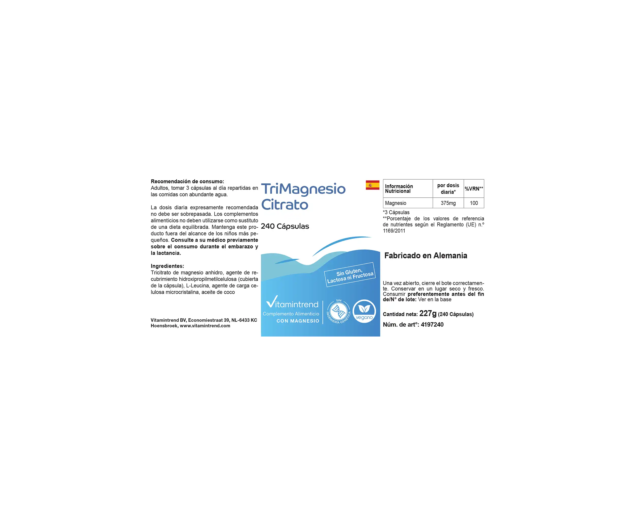 Informazioni sul prodotto "TriMagnesio Citrato - 240 Capsule"