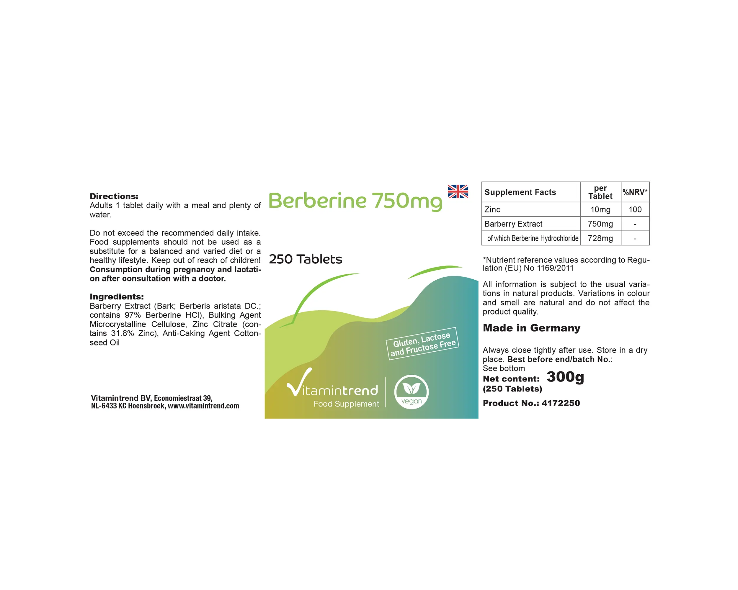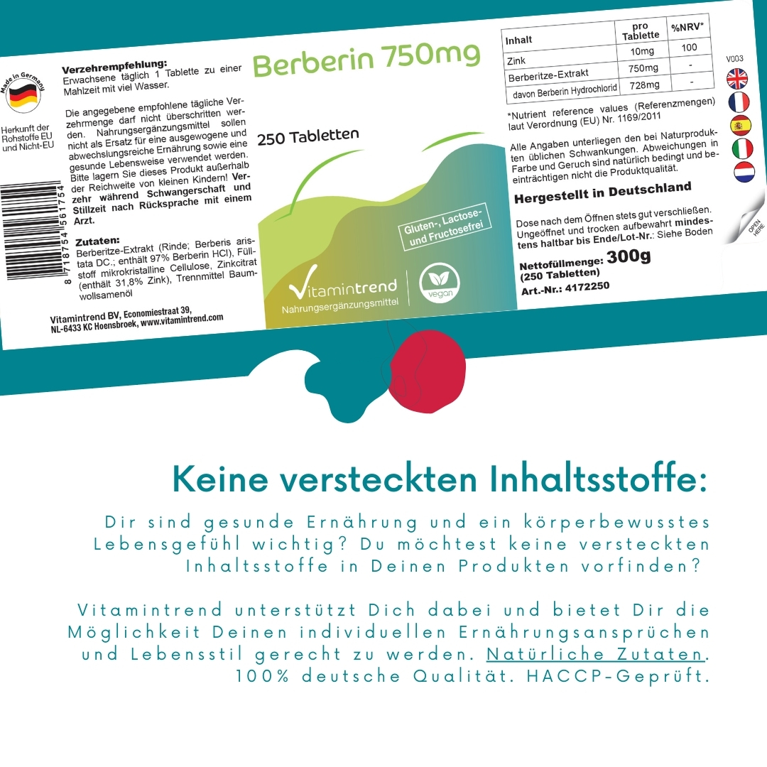 Informazioni sul prodotto "Berberina 750mg - 250 compresse - altamente dosata - vegana"