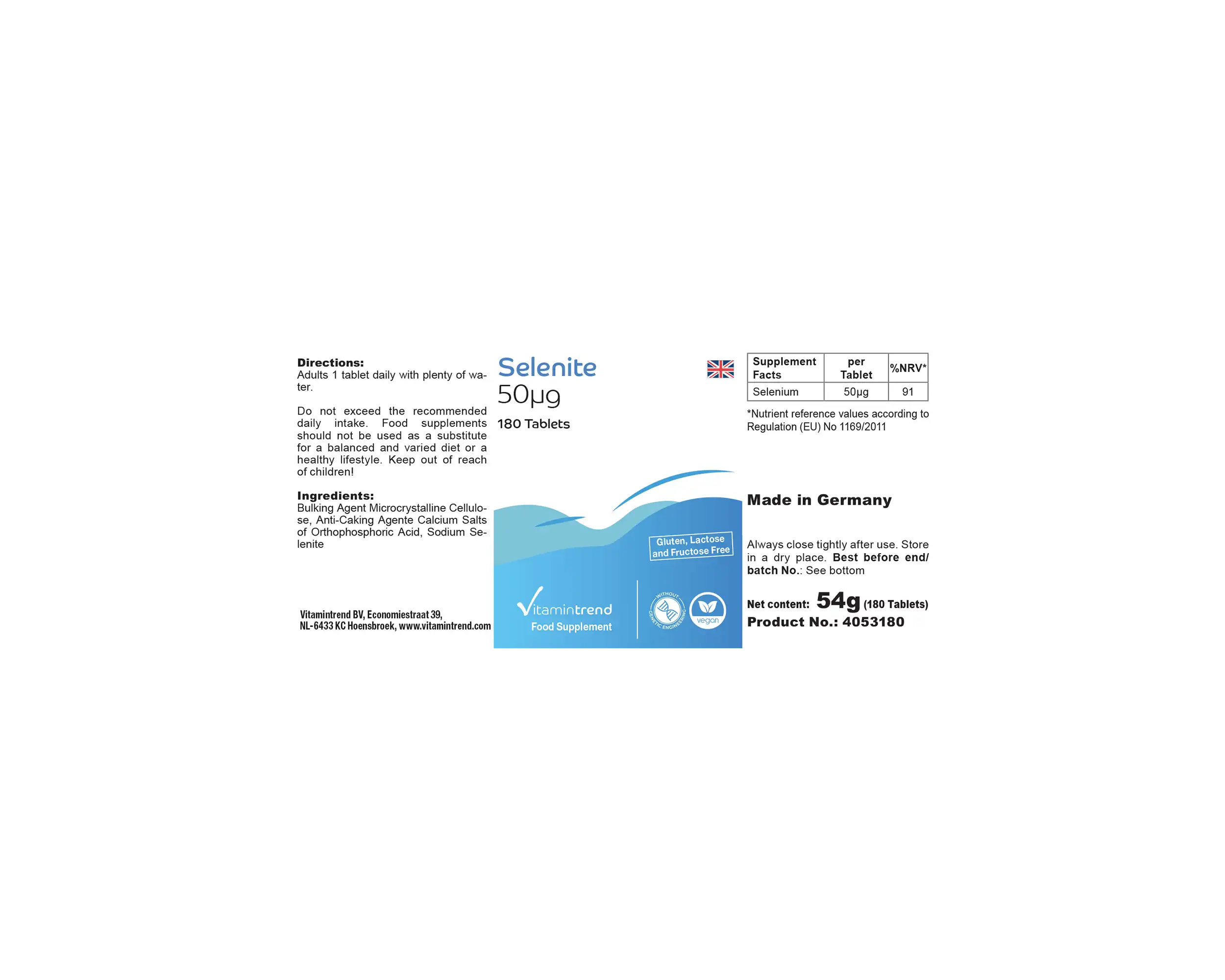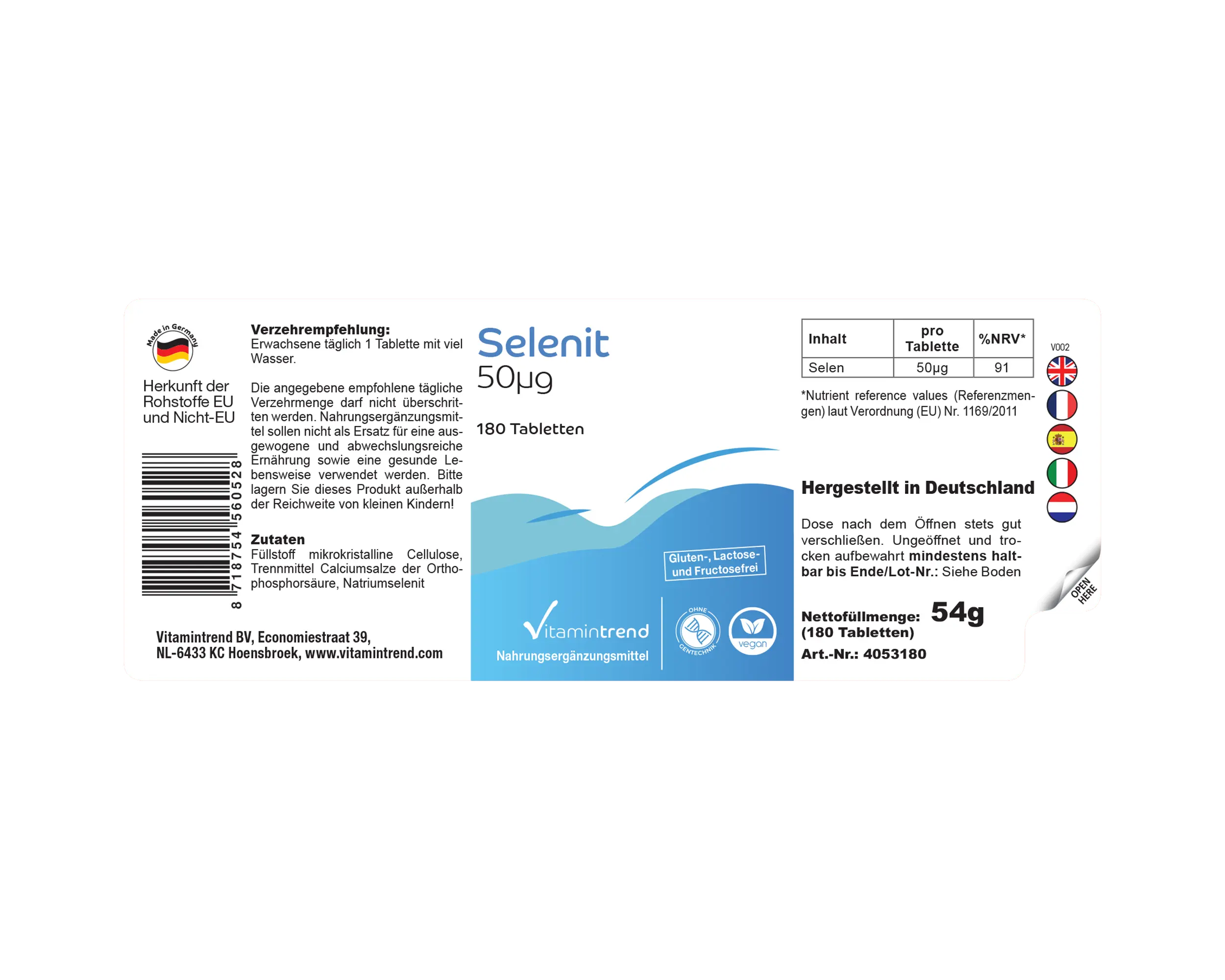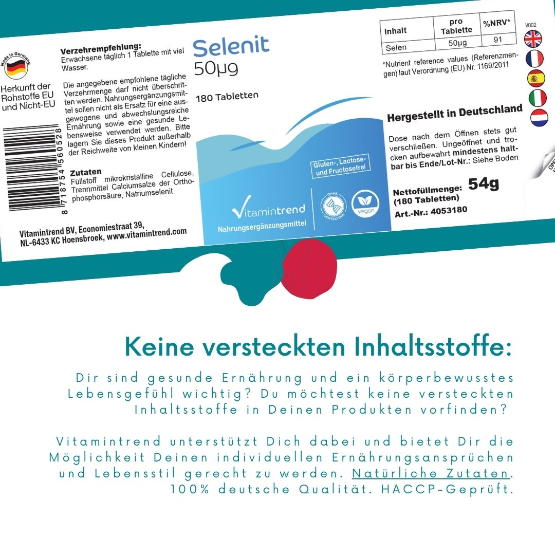 Informazioni sul prodotto "Selenito 50µg 180 compresse, vegan"