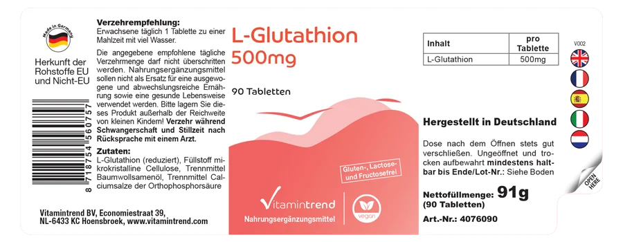 | L-Glutathion / L-Gluthatione / L-Glutatión / L-Glutatione | 500mg |