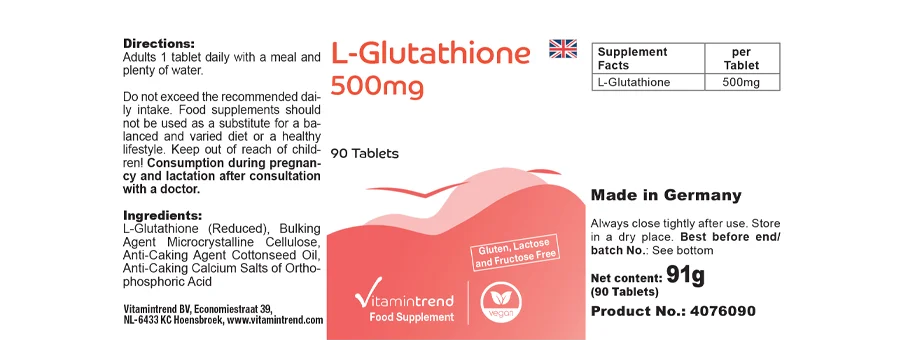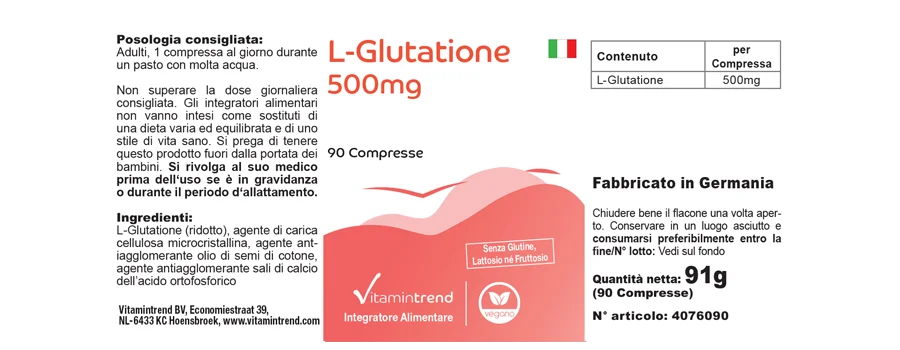Informazioni sul prodotto "L-Glutatione 500mg 90 compresse, vegan, alto dosaggio, forma ridotta, per 3 mesi"