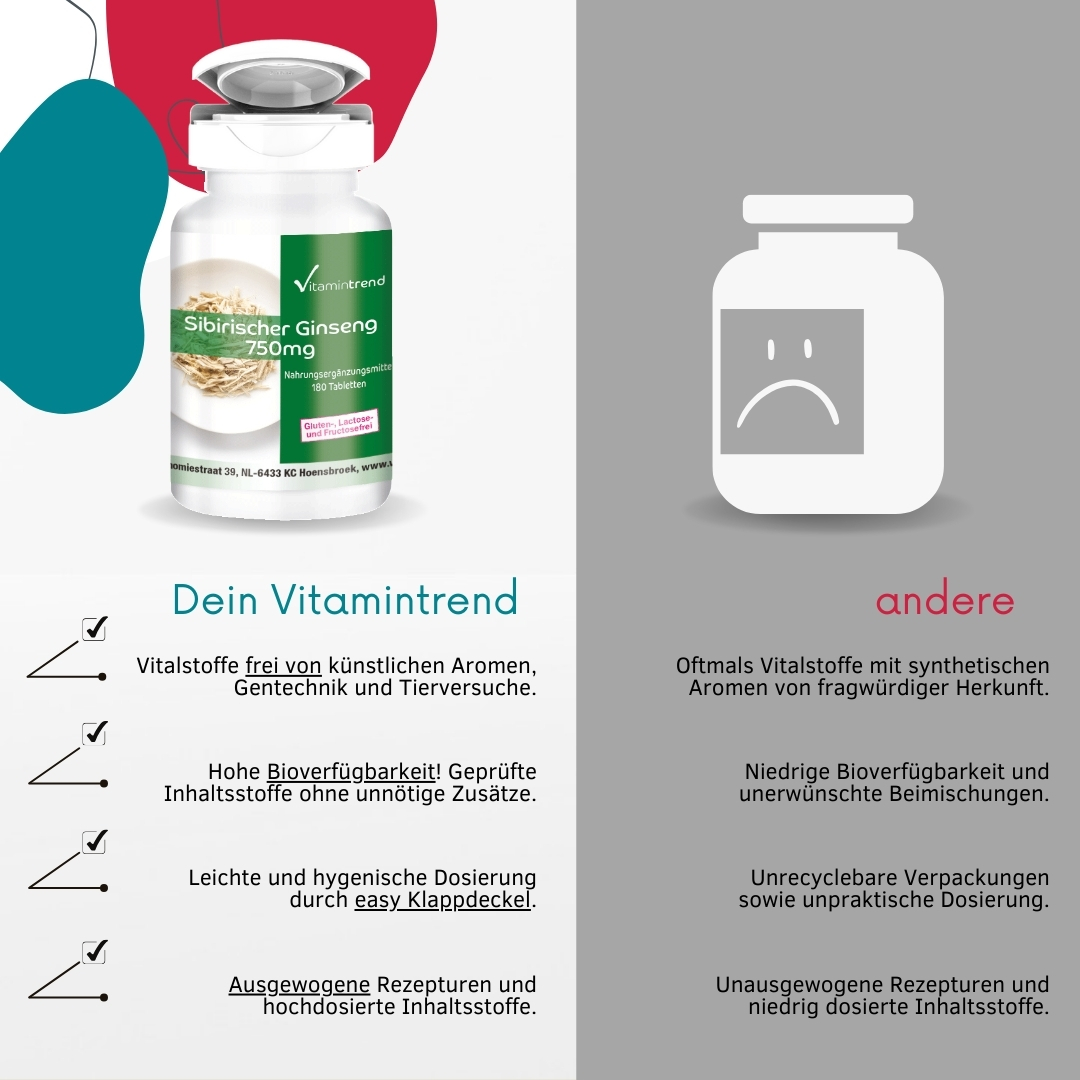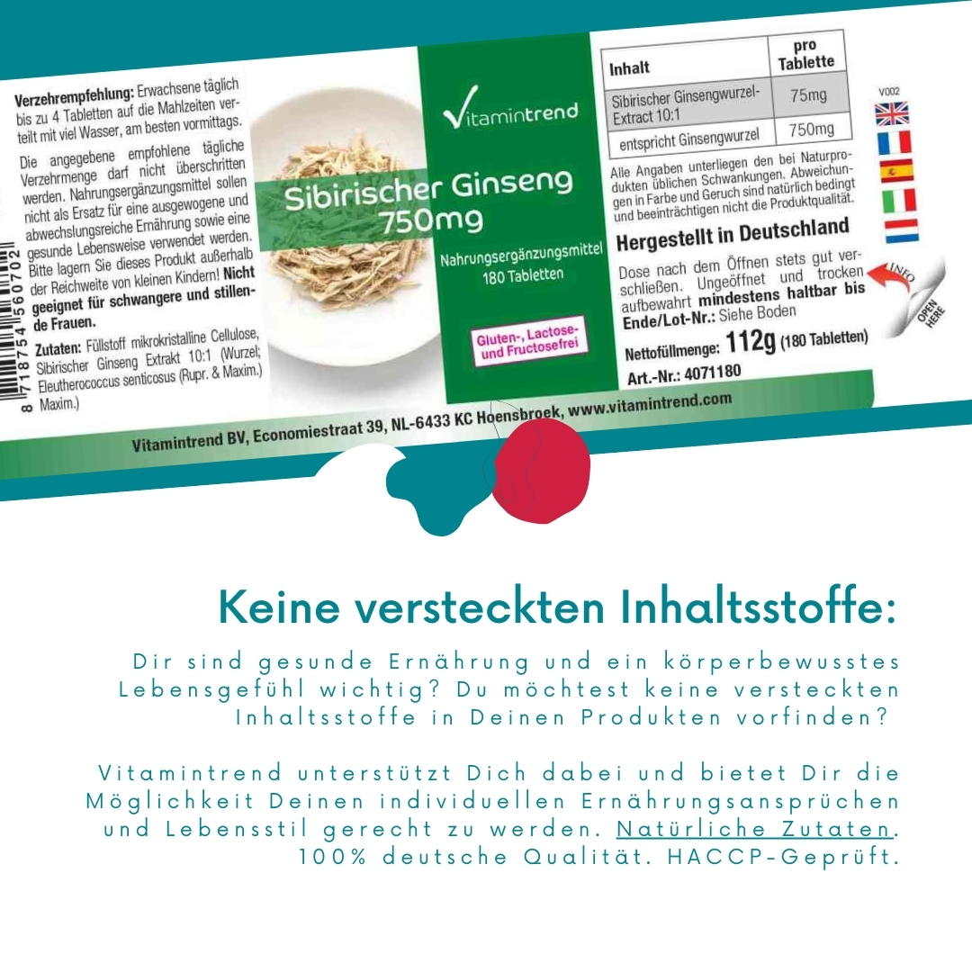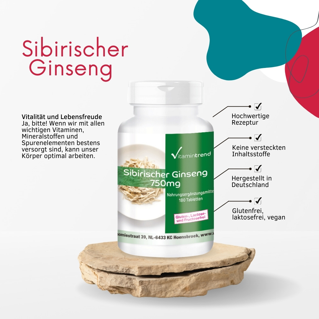 Informazioni sul prodotto "Ginseng siberiano 750mg 180 Compresse radice Taiga, Eleutherococcus senticosus, vegan"