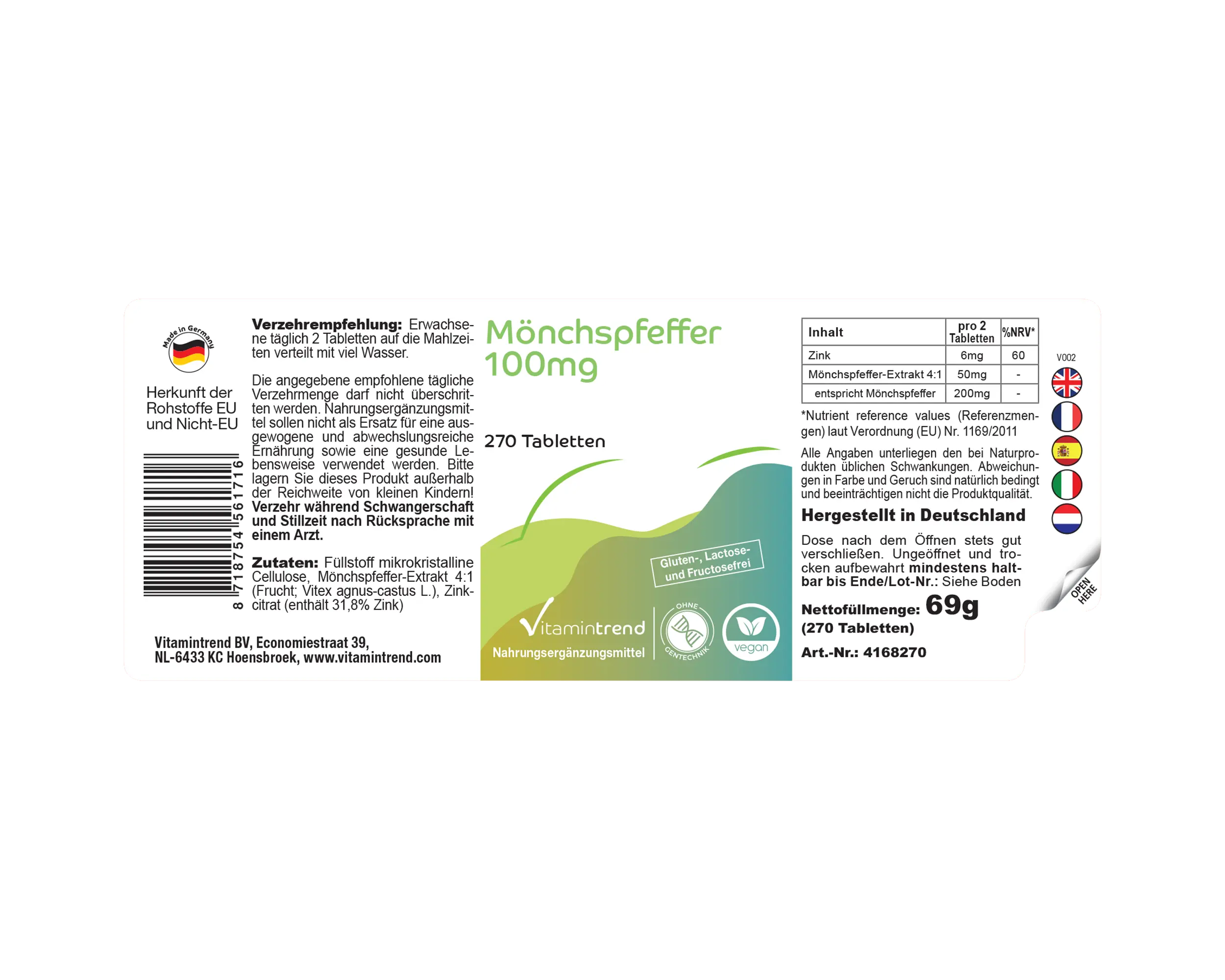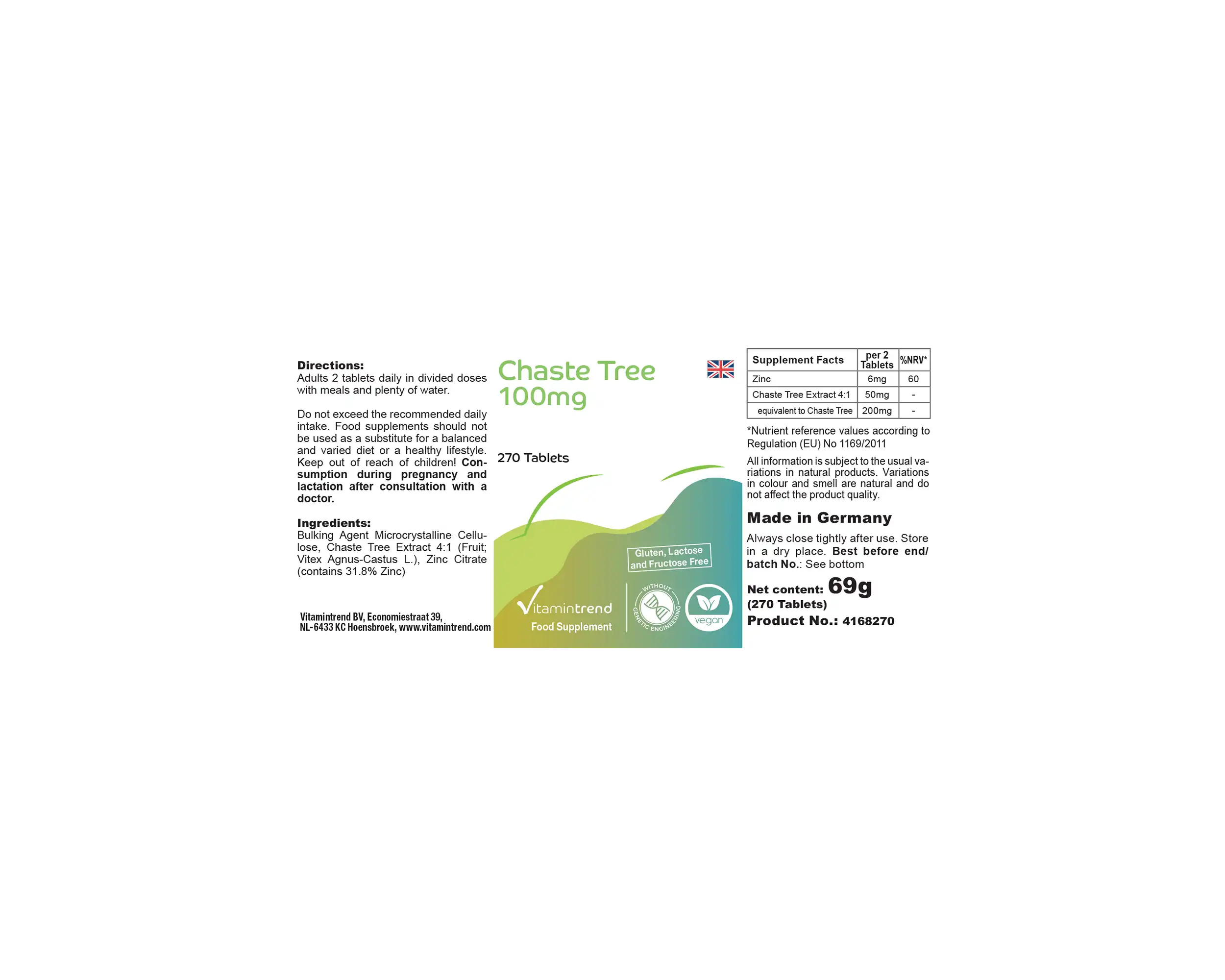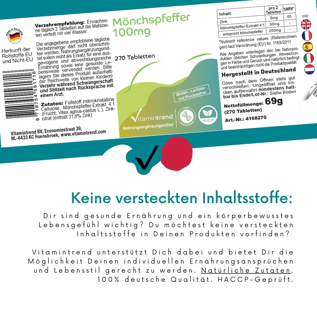 | entspricht Mönchspfeffer / equivalent to Chaste Tree / correspond à Poivre des Moines / corresponde a Sauzgatillo / corrisponde ad Agnocasto / komt overeen met Monnikspepper | 200mg | - |