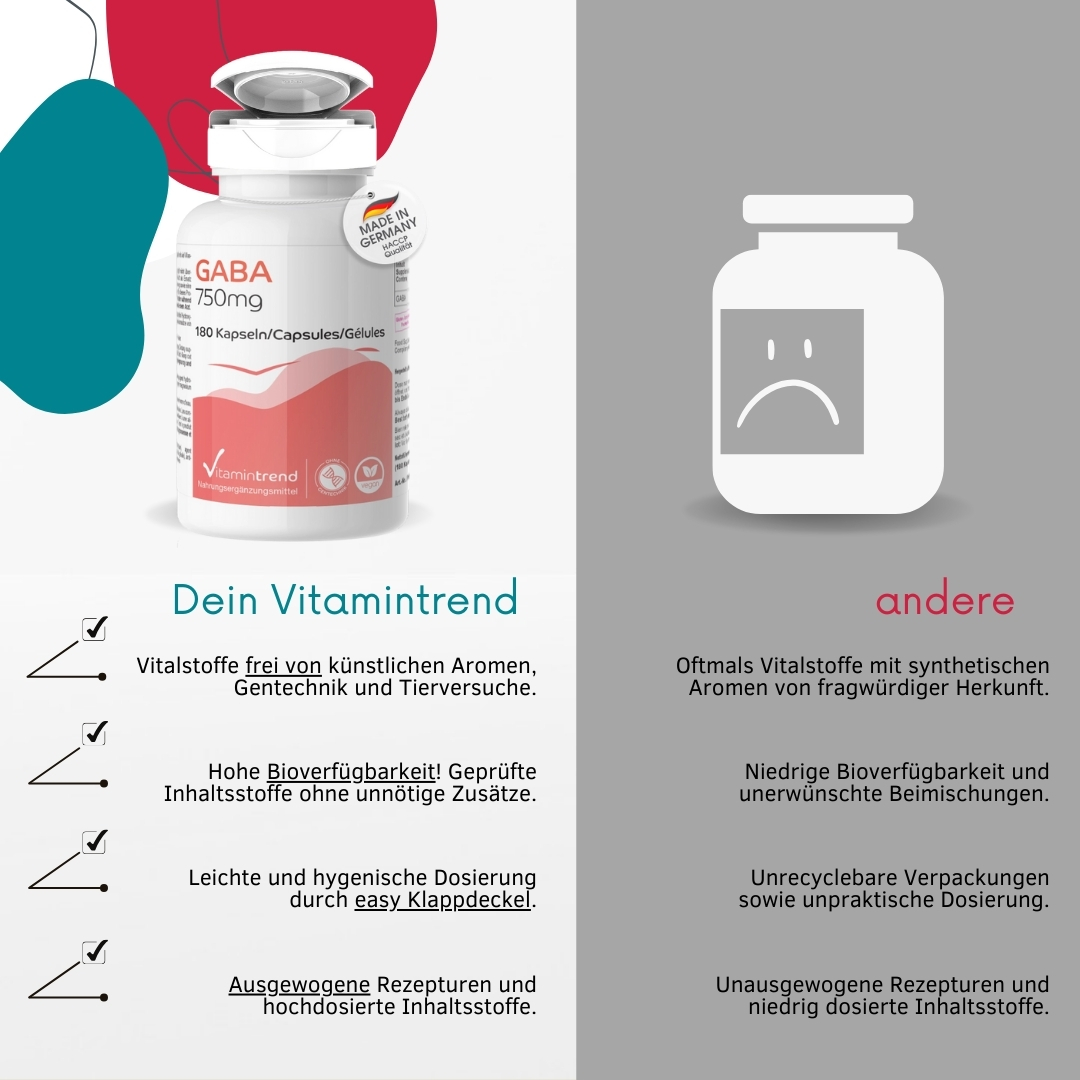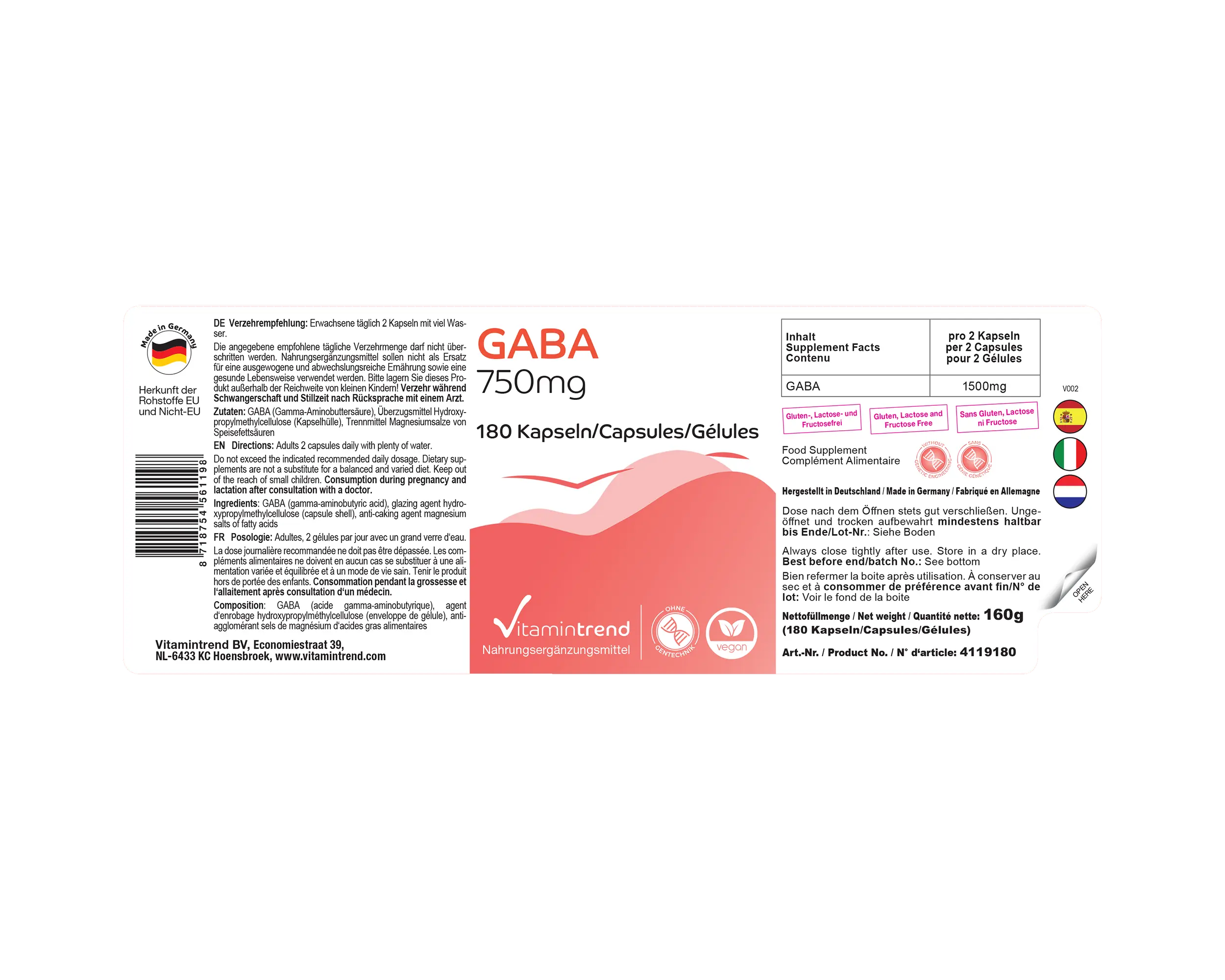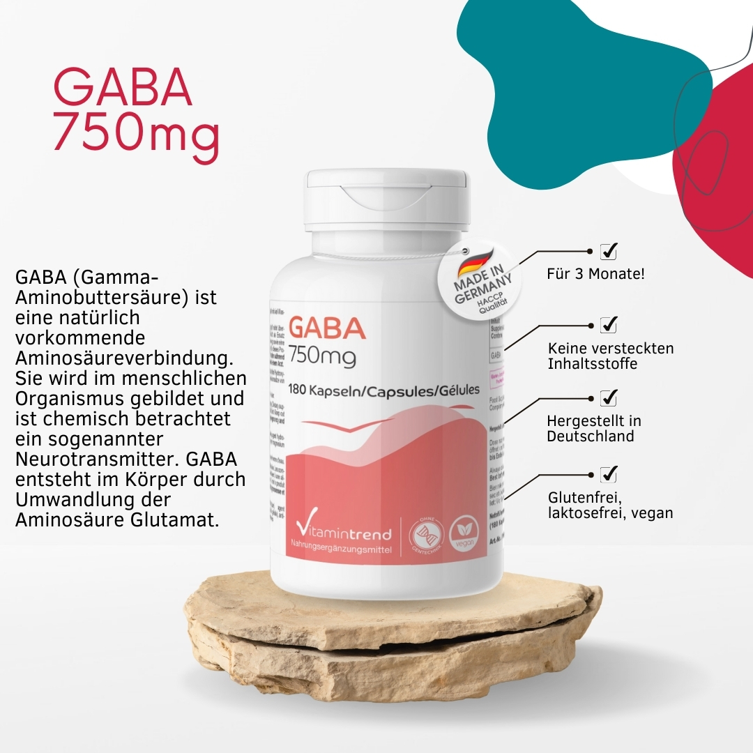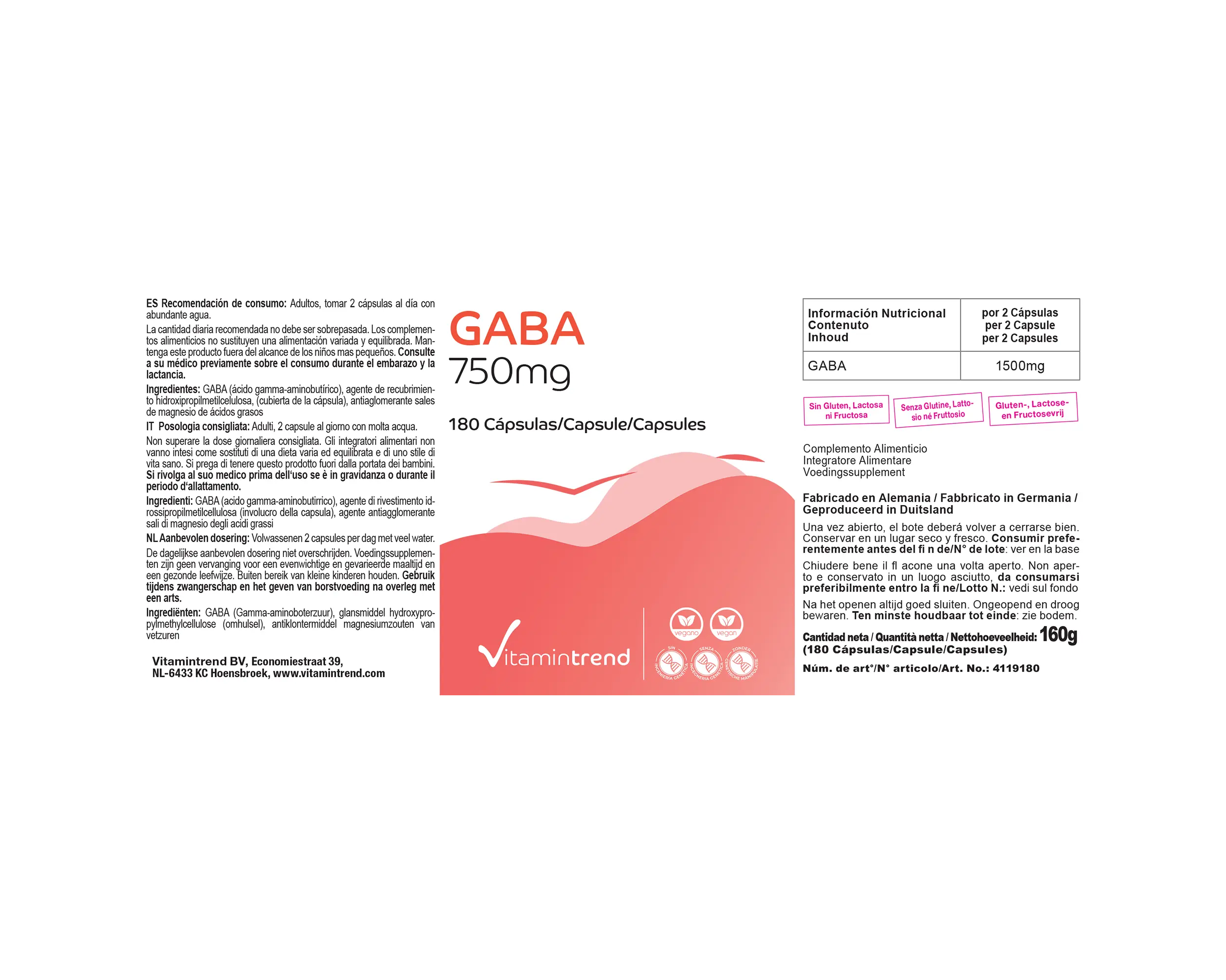 Informazioni sul prodotto "GABA 750mg - Alto dosaggio - Vegan - 180 Capsule"