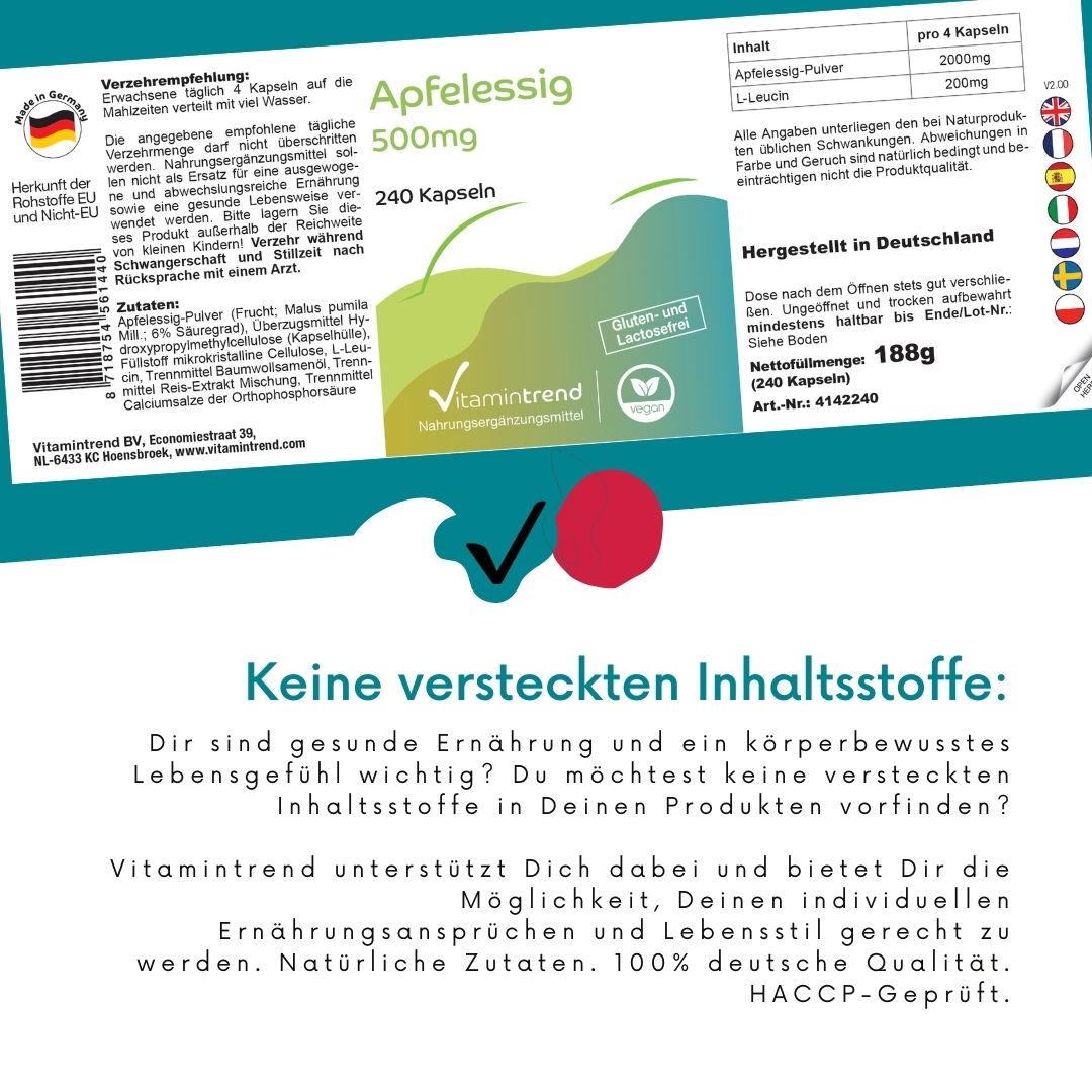Apfelessig-Pulver / Apple Cider Vinegar Powder / Vinaigre de Cidre en Poudre / Vinagre de Manzana en Polvo / Aceto di Mele in Polvere / Appelazijn Poeder 2000mg