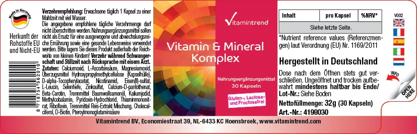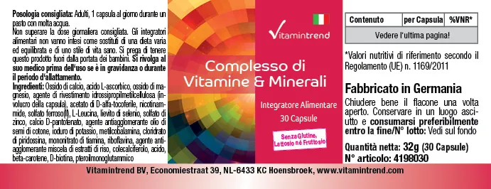 Informazioni sul prodotto "Complesso vitaminico e minerale - 30 capsule"