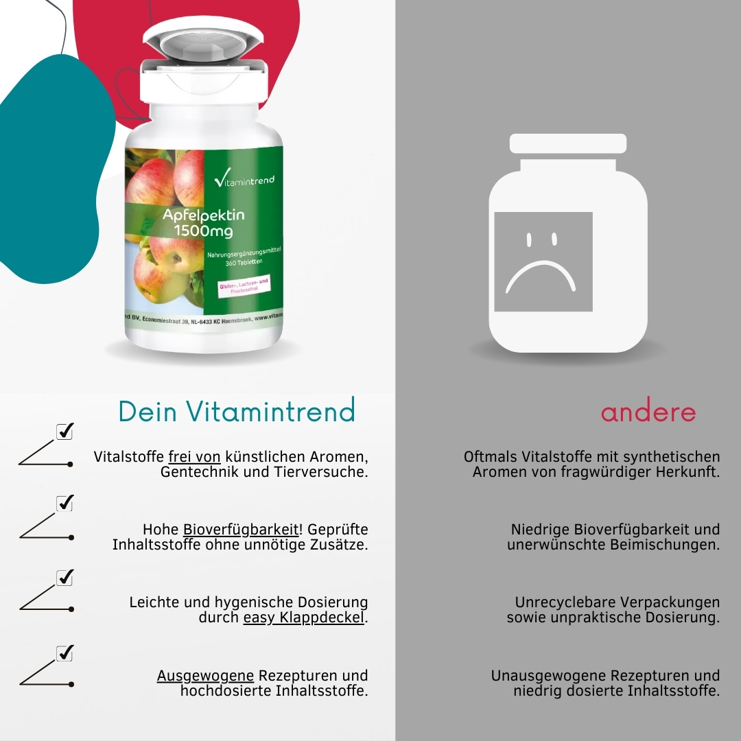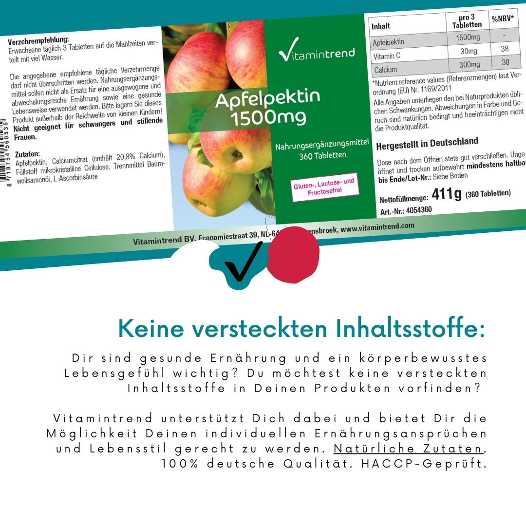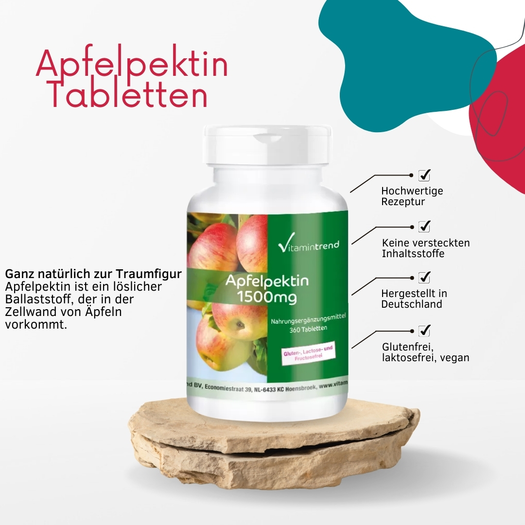 Informazioni sul prodotto "Pectina di mele 1500mg al giorno, confezione da 360 compresse alla rinfusa, fibra solubile, gonfiore, saturazione"