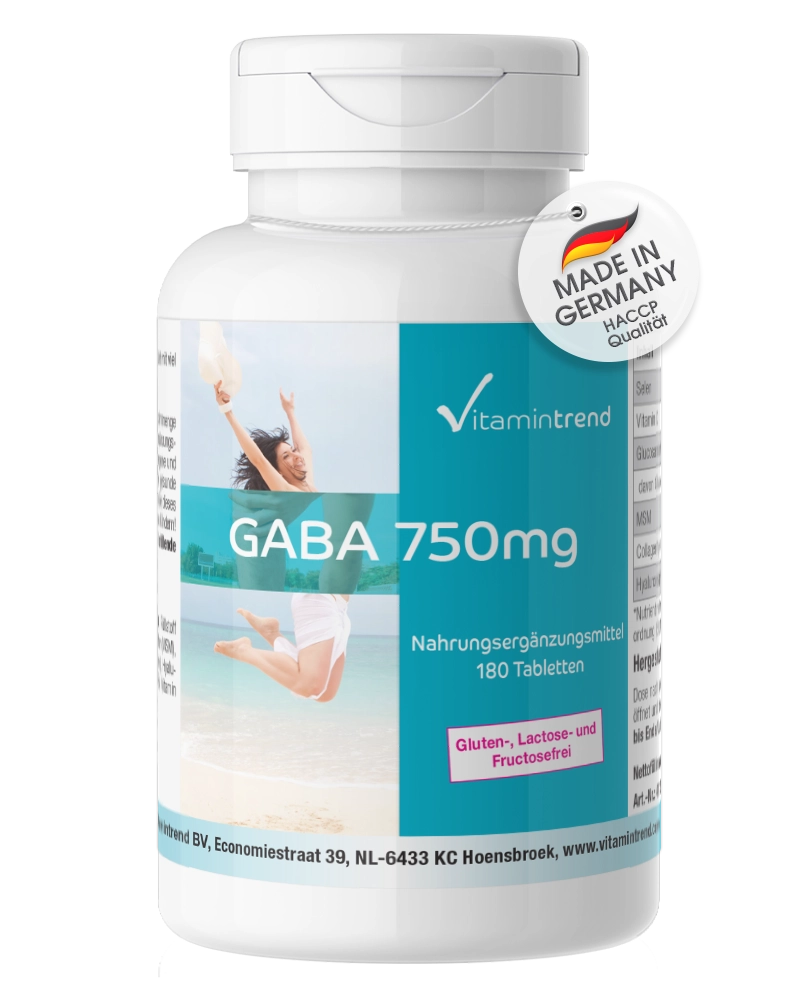 Die GABA-Kapseln von Vitamintrend enthalten 750 mg Gamma-Aminobuttersäure (GABA) pro Kapsel in reiner, hochdosierter Qualität. Die vegane Rezeptur ist gut verträglich und vollständig frei von Farb- und Zusatzstoffen. Mit 180 Kapseln bietet die Großpackung eine langfristige Versorgung bei täglicher Anwendung. GABA von Vitamintrend – Made in Germany ✔ 750 mg GABA pro Kapsel ✔ Hochdosiert und gut verträglich ✔ Ohne Zusatz- und Farbstoffe ✔ Hergestellt in Deutschland ✔ Produziert nach Qualitäts- und Hygienestandards HACCP Vitalstoffe von Vitamintrend – Made in Germany ✔ Reinsubstanz ✔ 100 % Vegan ✔ Ohne Zusatz- und Farbstoffe ✔ Hochwertige Nahrungsergänzungsmittel ✔ Hergestellt in Deutschland ✔ Produziert nach Qualitäts- und Hygienestandards HACCP Hinweis: Aufgrund rechtlicher Bestimmungen dürfen wir als Hersteller von Nahrungsergänzungsmitteln keine Aussagen zur Wirkung bestimmter Substanzen machen. Für weiterführende Informationen empfehlen wir dir, dich auf spezialisierten Websites oder in naturkundlicher Fachliteratur zu informieren, bevor du eine Bestellung bei uns aufgibst.