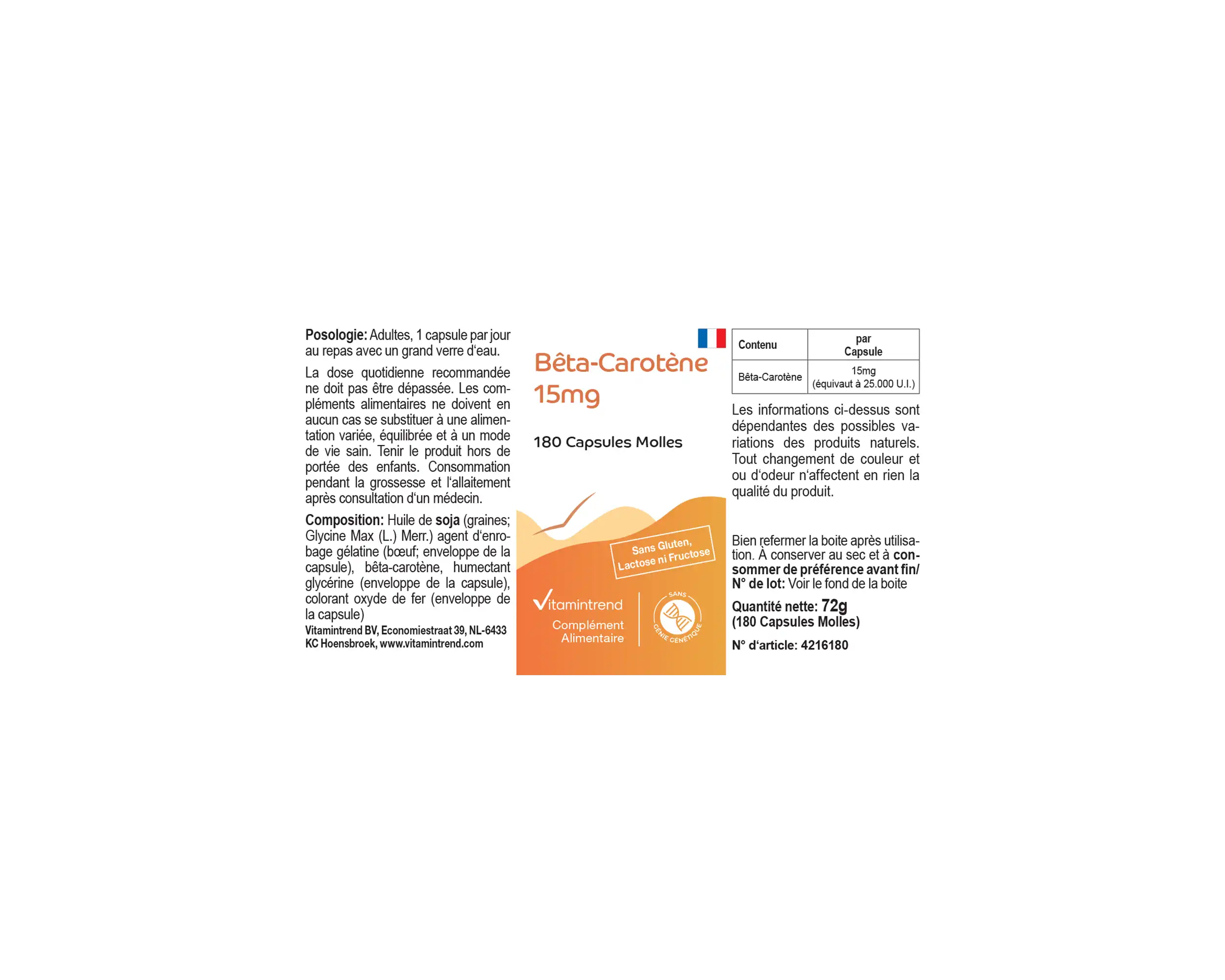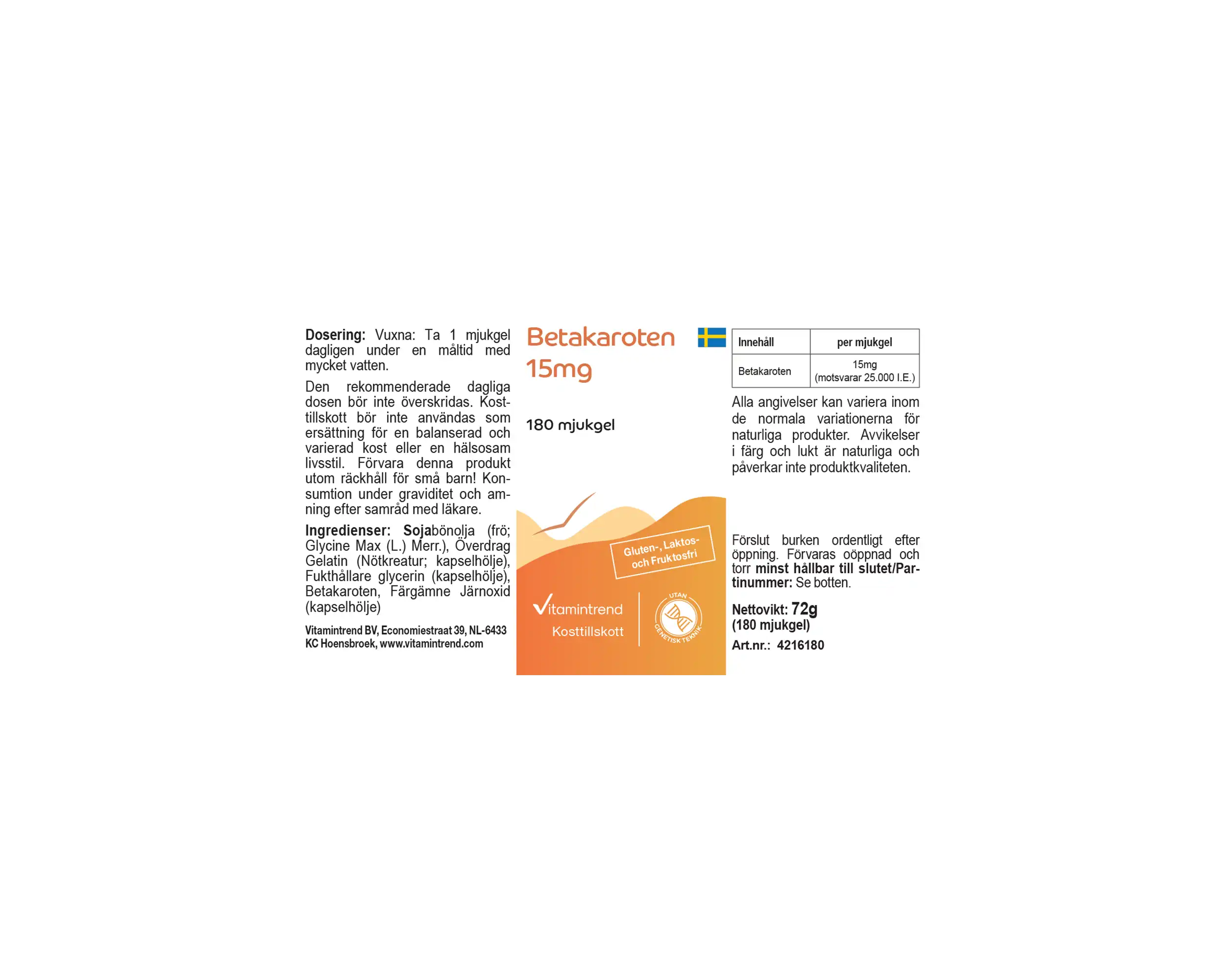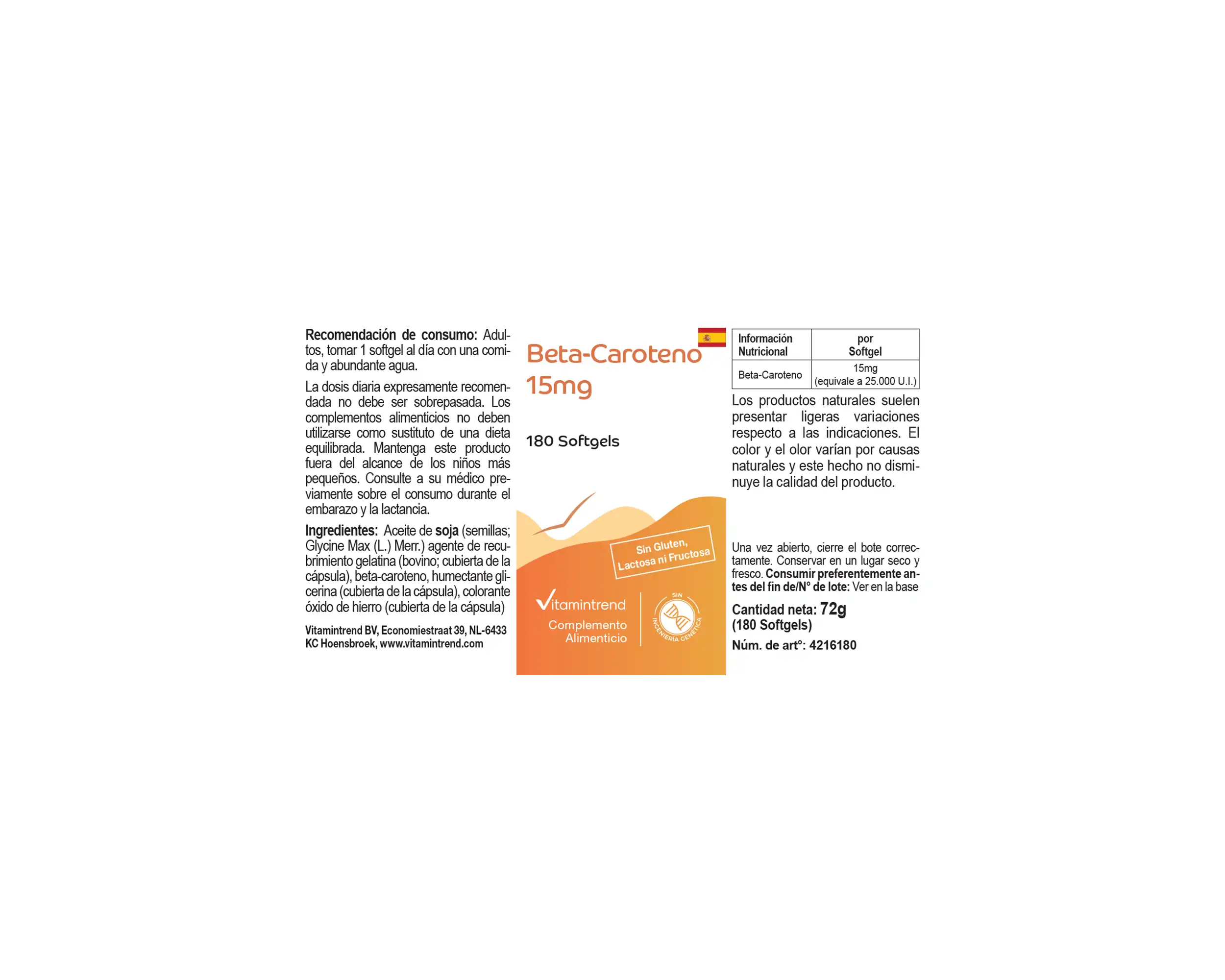 Beta-Carotin 15mg - 180 Softgels | Vitamintrend