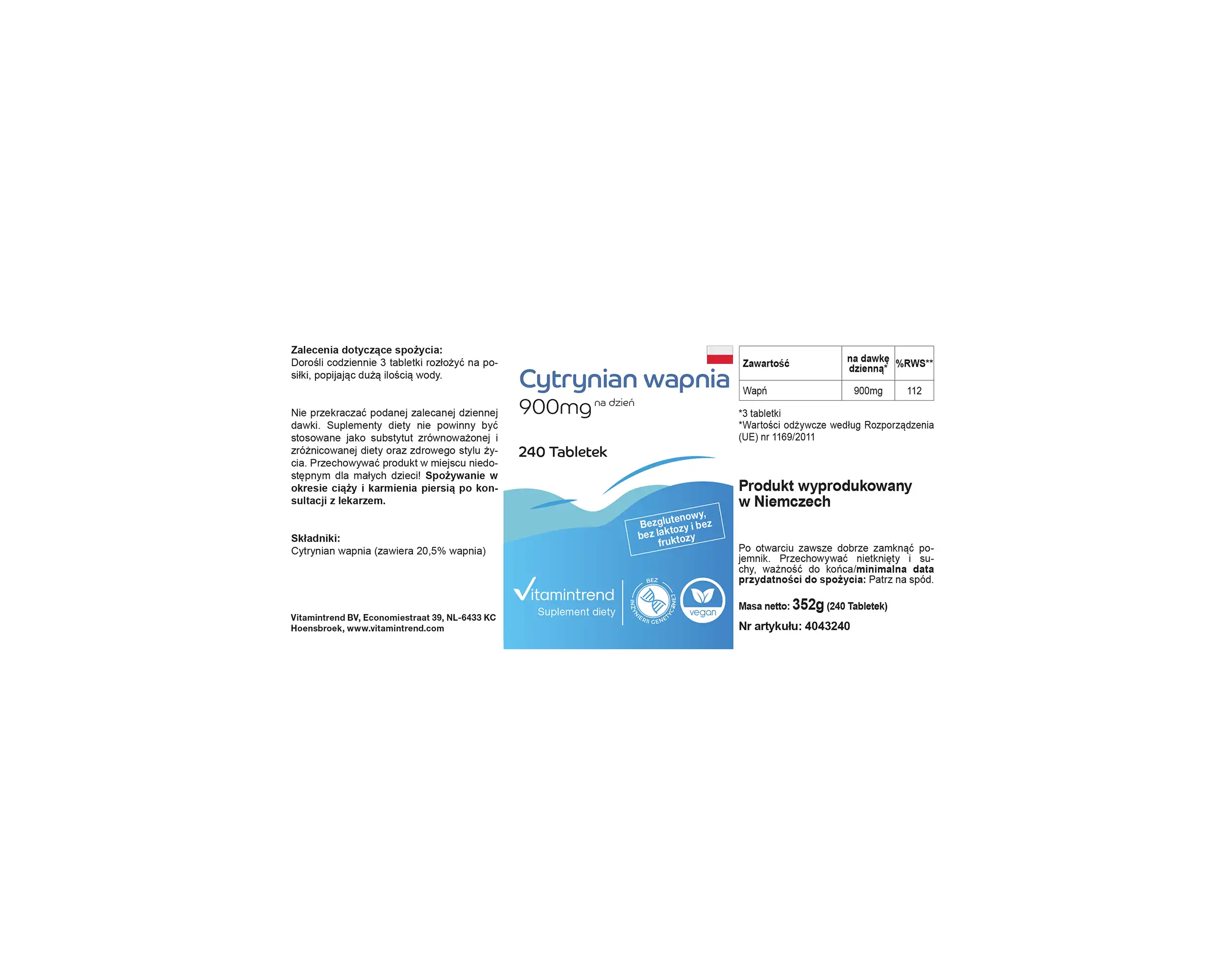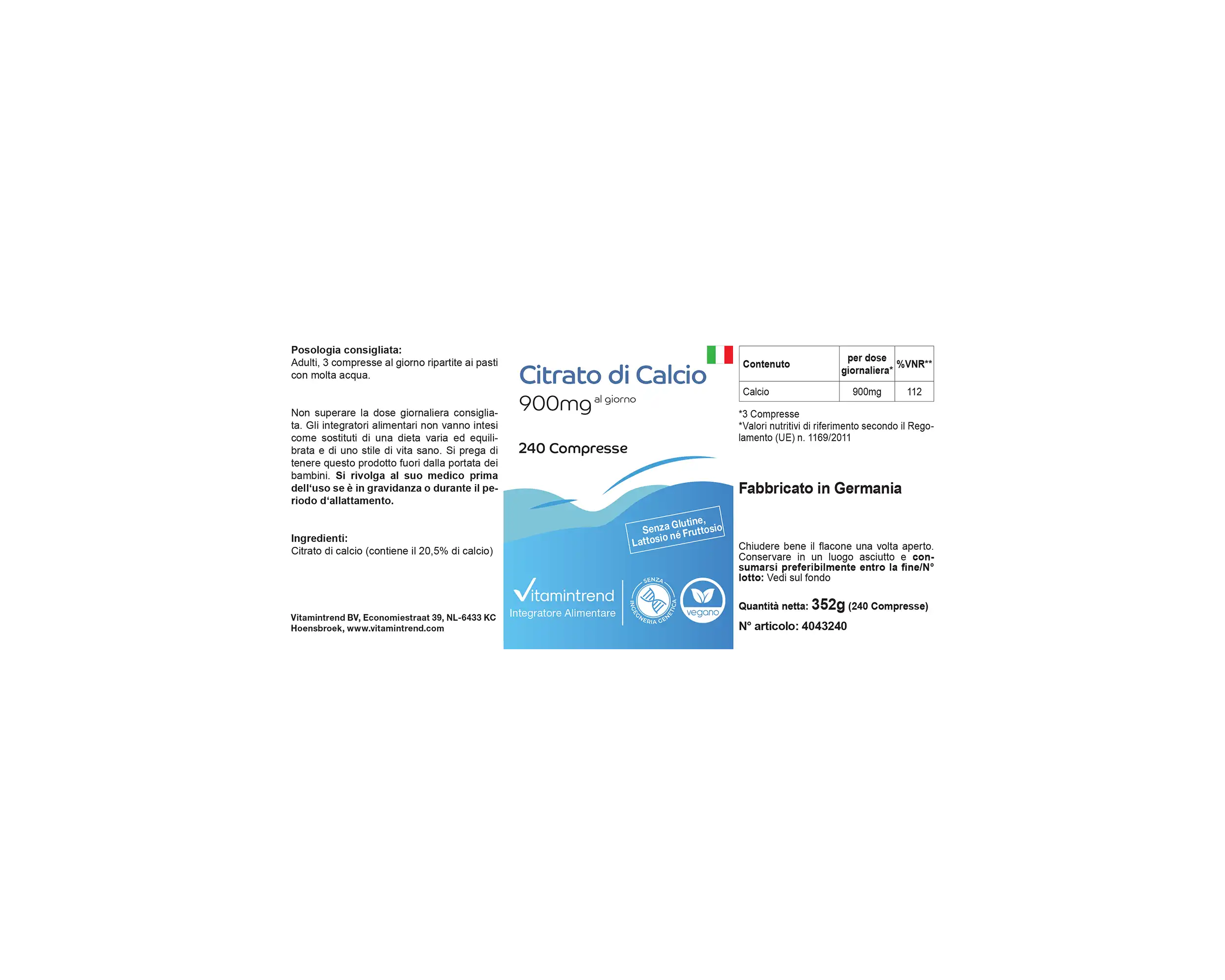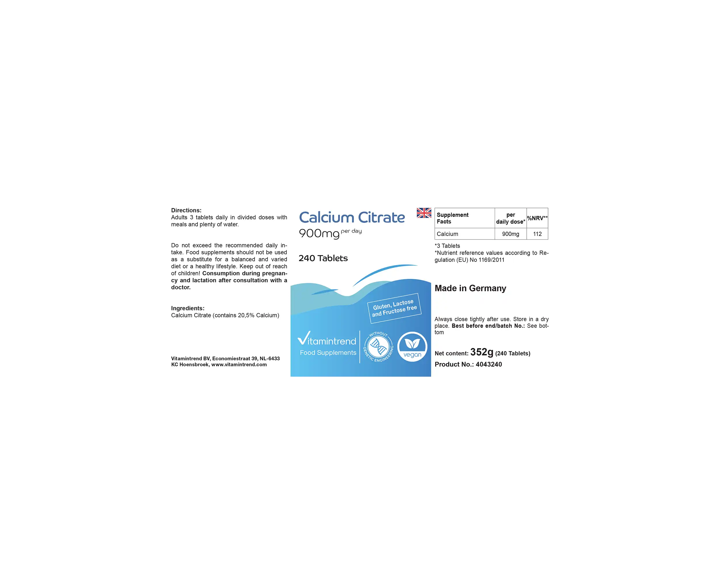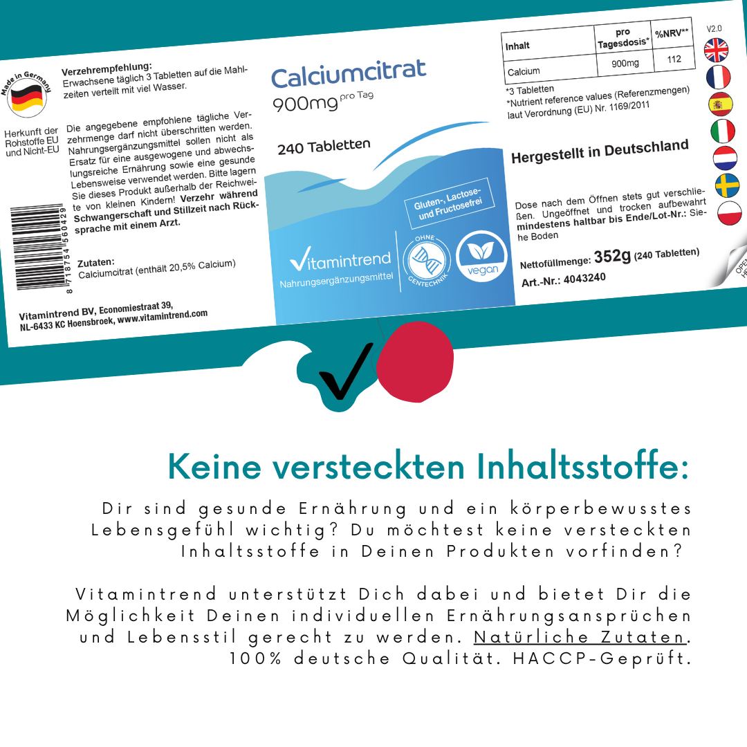 Produktinformationen "Calciumcitrat 900mg - 240 Tabletten - organisch - Reinsubstanz - vegan | Vitamintrend"