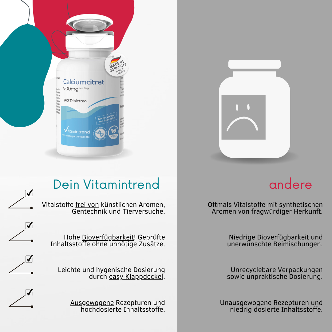 Calciumcitrat 900mg - 240 Tabletten - organisch - Reinsubstanz - vegan | Vitamintrend