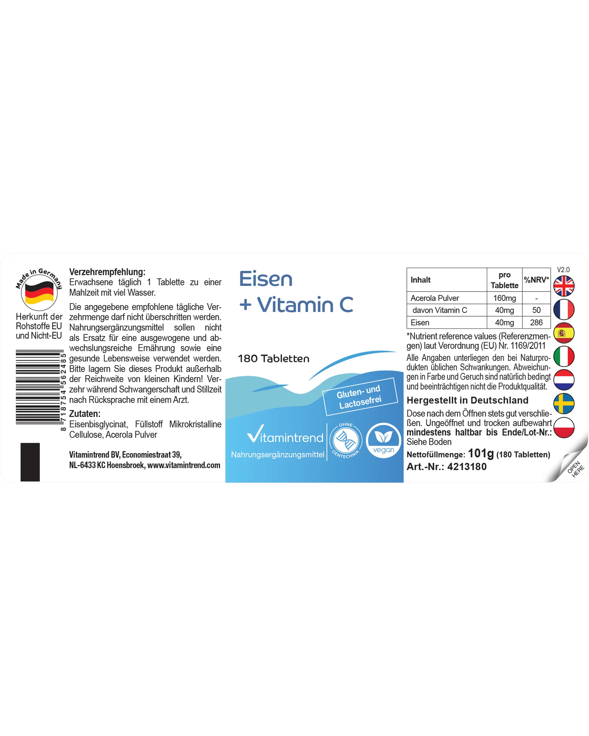Produktinformationen "Eisen + Vitamin C - 180 Tabletten - schluckfreundlich | Vitamintrend"