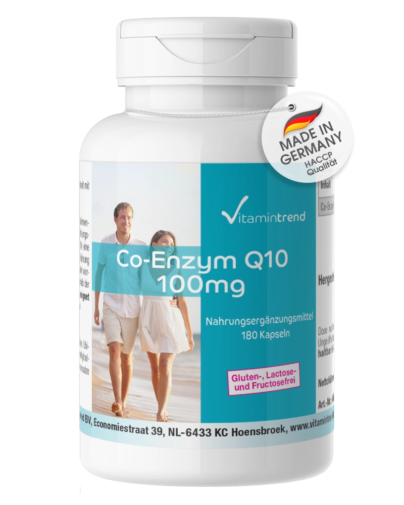 Die Coenzym Q10 Kapseln von Vitamintrend enthalten pro Tagesverzehr 200 mg Coenzym Q10 in Reinsubstanzqualität. Mit 180 Kapseln bietet die Großpackung eine praktische 6-Monats-Versorgung. Die Rezeptur ist hochdosiert, vegan und frei von Farb- und Zusatzstoffen. Coenzym Q10 von Vitamintrend – Made in Germany ✔ 200 mg Coenzym Q10 pro Tagesverzehr ✔ In hochwertiger Reinsubstanzqualität ✔ Ohne Zusatz- und Farbstoffe ✔ Hergestellt in Deutschland ✔ Produziert nach Qualitäts- und Hygienestandards HACCP Vitalstoffe von Vitamintrend ohne Zusatz – Made in Germany ✔ Hochdosiert ✔ 100 % Vegan ✔ Ohne Zusatz- und Farbstoffe ✔ Hochwertige Nahrungsergänzungsmittel ✔ Hergestellt in Deutschland ✔ Produziert nach Qualitäts- und Hygienestandards HACCP Hinweis: Aufgrund rechtlicher Bestimmungen dürfen wir als Hersteller von Nahrungsergänzungsmitteln keine Aussagen zur Wirkung von Pflanzenextrakten machen. Für weiterführende Informationen empfehlen wir dir, dich auf spezialisierten Websites oder in naturkundlicher Fachliteratur zu informieren, bevor du eine Bestellung bei uns aufgibst.