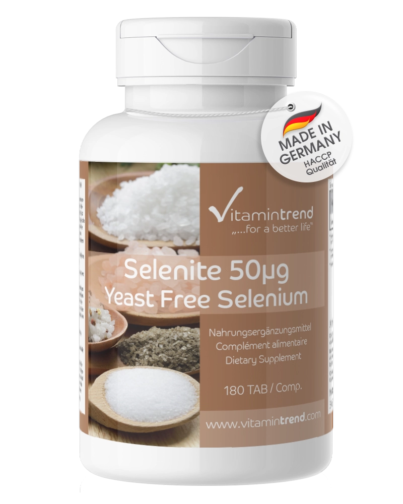 Die Selen-Tabletten von Vitamintrend enthalten 50 µg Selen pro Tablette in Form von Natriumselenit – einer anorganischen, sofort verfügbaren Selenverbindung. Die Rezeptur ist vegan und frei von Farb- und Zusatzstoffen. Mit 180 Tabletten bietet die Packung eine zuverlässige 6-monatige Versorgung bei täglicher Anwendung. Selen trägt bei zu: ✔ normalem Immunsystem ✔ gesunden Haaren ✔ gesunden Nägeln ✔ normaler Spermabildung ✔ normaler Schilddrüsenfunktion ✔ Schutz der Zellen vor oxidativem Stress Selenit von Vitamintrend ohne Zusatz – Made in Germany ✔ Ohne Zusatz- und Farbstoffe ✔ Hochwertige Nahrungsergänzungsmittel ✔ Hergestellt in Deutschland ✔ Produziert nach Qualitäts- und Hygienestandards HACCP Vitalstoffe von Vitamintrend ohne Zusatz – Made in Germany ✔ Hochdosiert ✔ 100 % Vegan ✔ Ohne Zusatz- und Farbstoffe ✔ Hochwertige Nahrungsergänzungsmittel ✔ Hergestellt in Deutschland ✔ Produziert nach Qualitäts- und Hygienestandards HACCP Hinweis: Aufgrund rechtlicher Bestimmungen dürfen wir als Hersteller von Nahrungsergänzungsmitteln keine Aussagen zur Wirkung von Vitalstoffen machen. Für weiterführende Informationen empfehlen wir dir, dich auf spezialisierten Websites oder in naturkundlicher Fachliteratur zu informieren, bevor du eine Bestellung bei uns aufgibst.