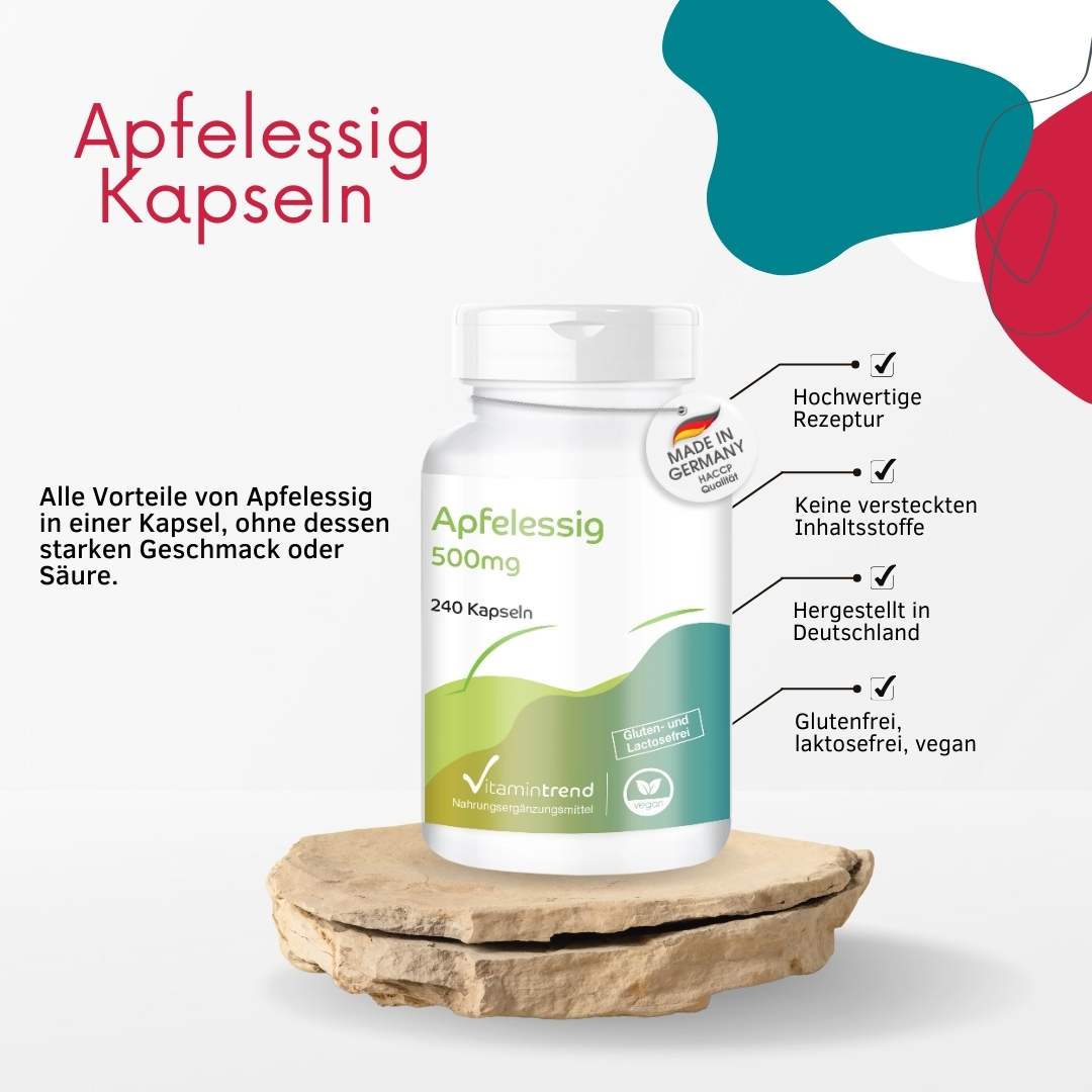 Product information "Apple cider vinegar 500mg - high-dose - vegan - 240 Capsules - bulk pack"